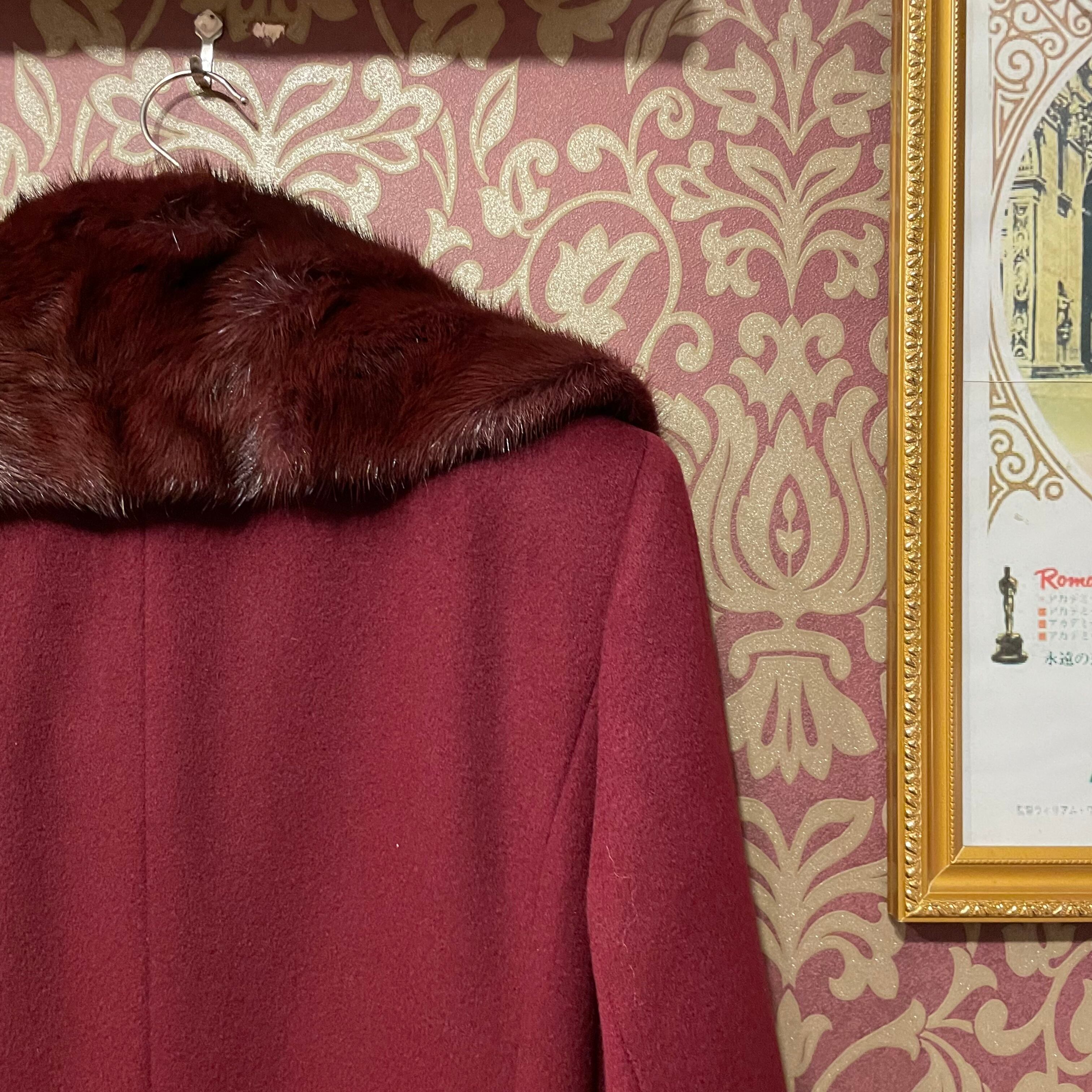 本体はカシミヤ100%で作られていて、大きめの襟はミンクで作られています。