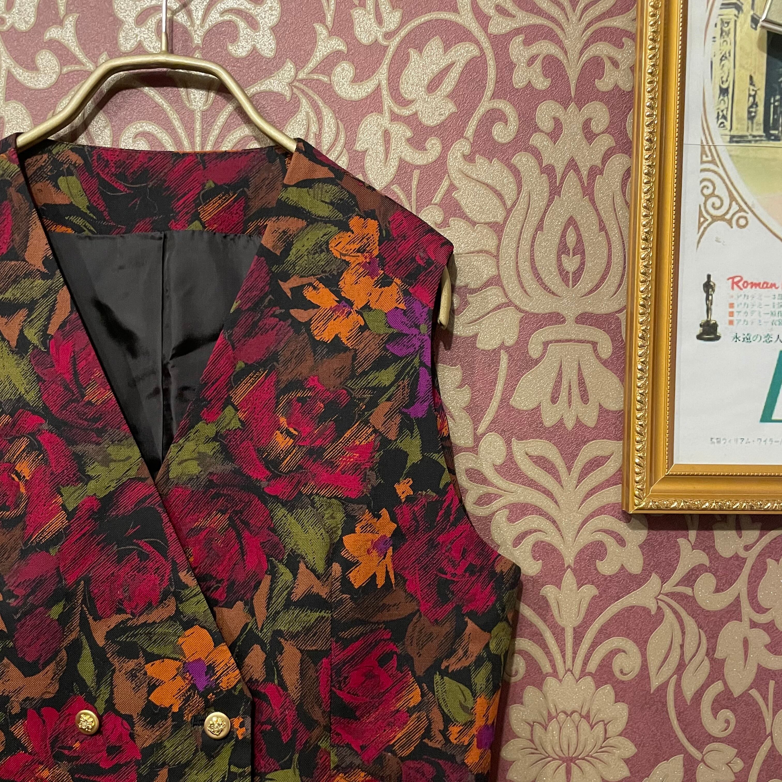 ベストはレトロなゴールドのダブルボタンで裾の尖ったメンズライクなデザインです。