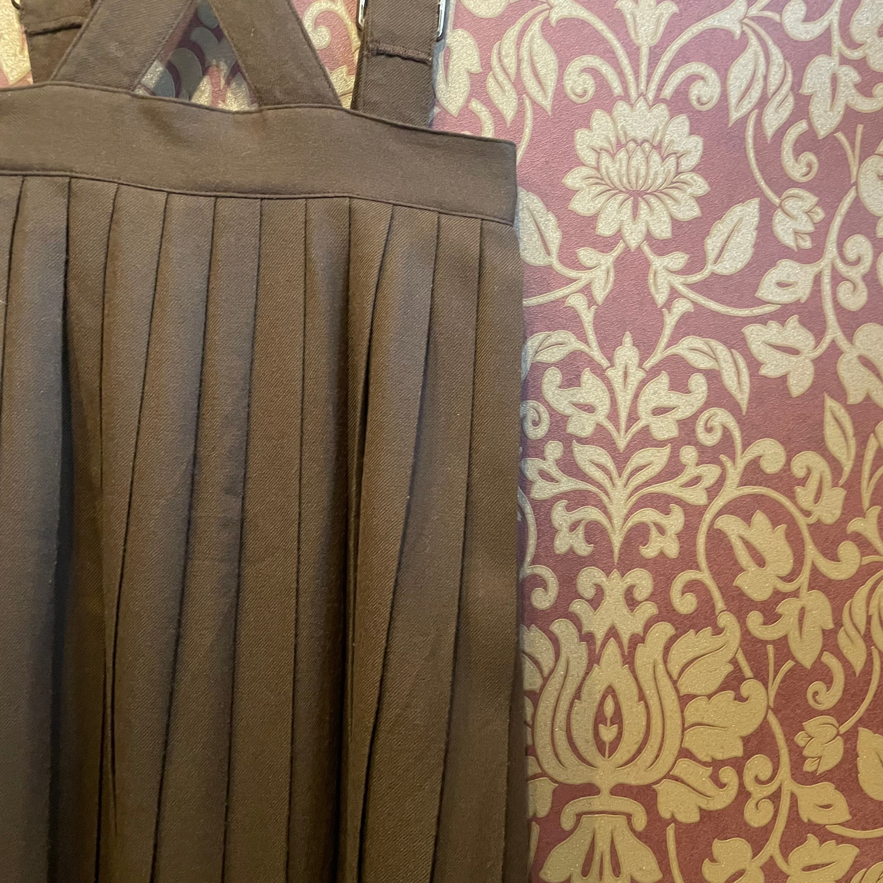 長さ調節可能なサスペンダーが付いているプリーツスカートです。