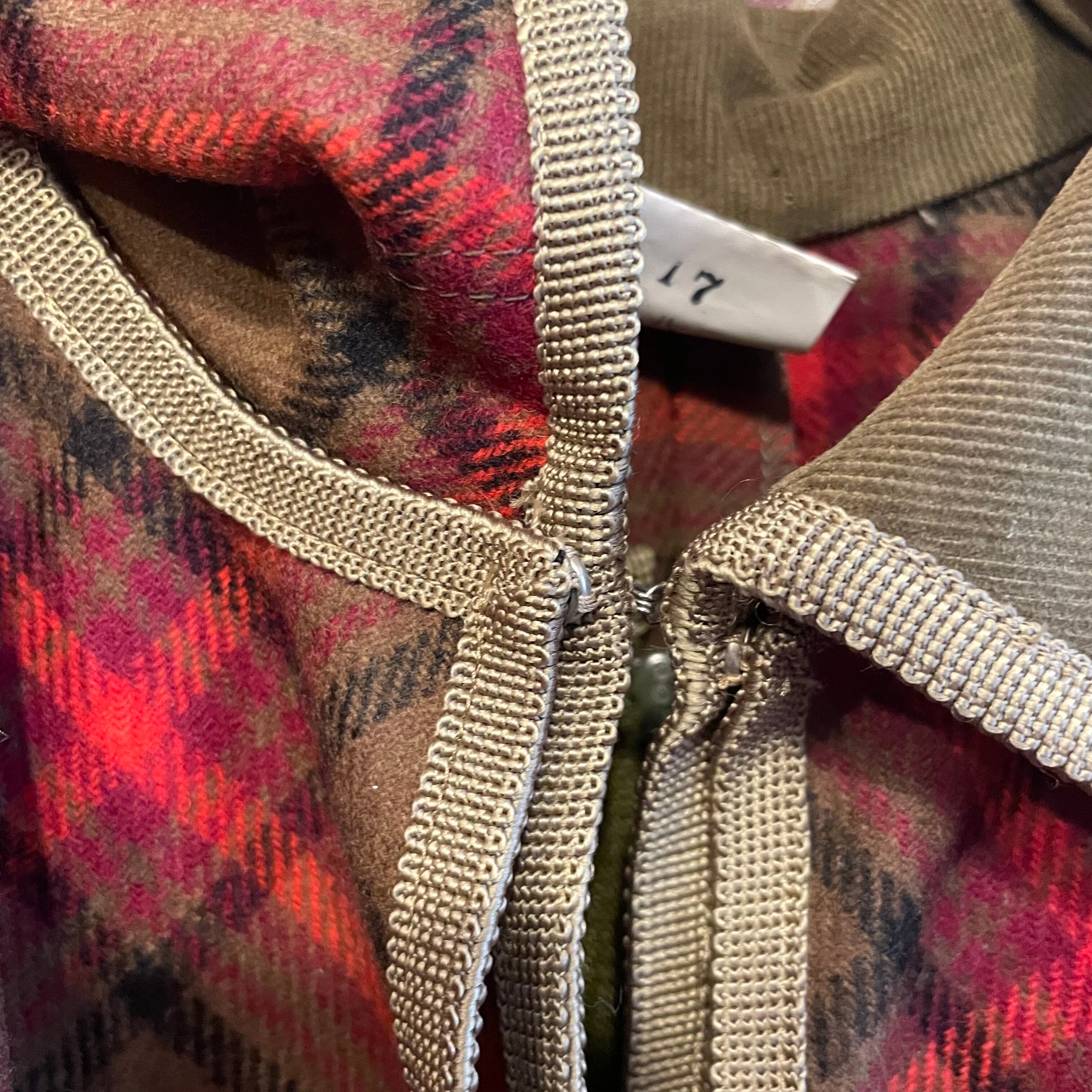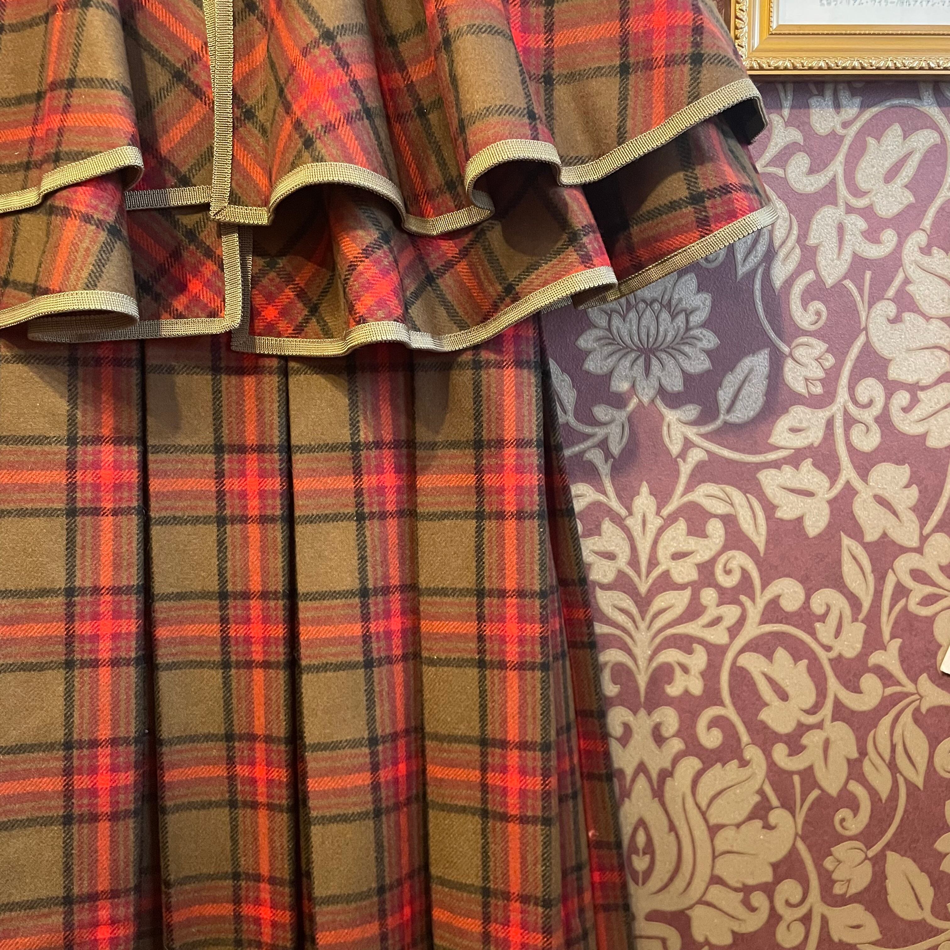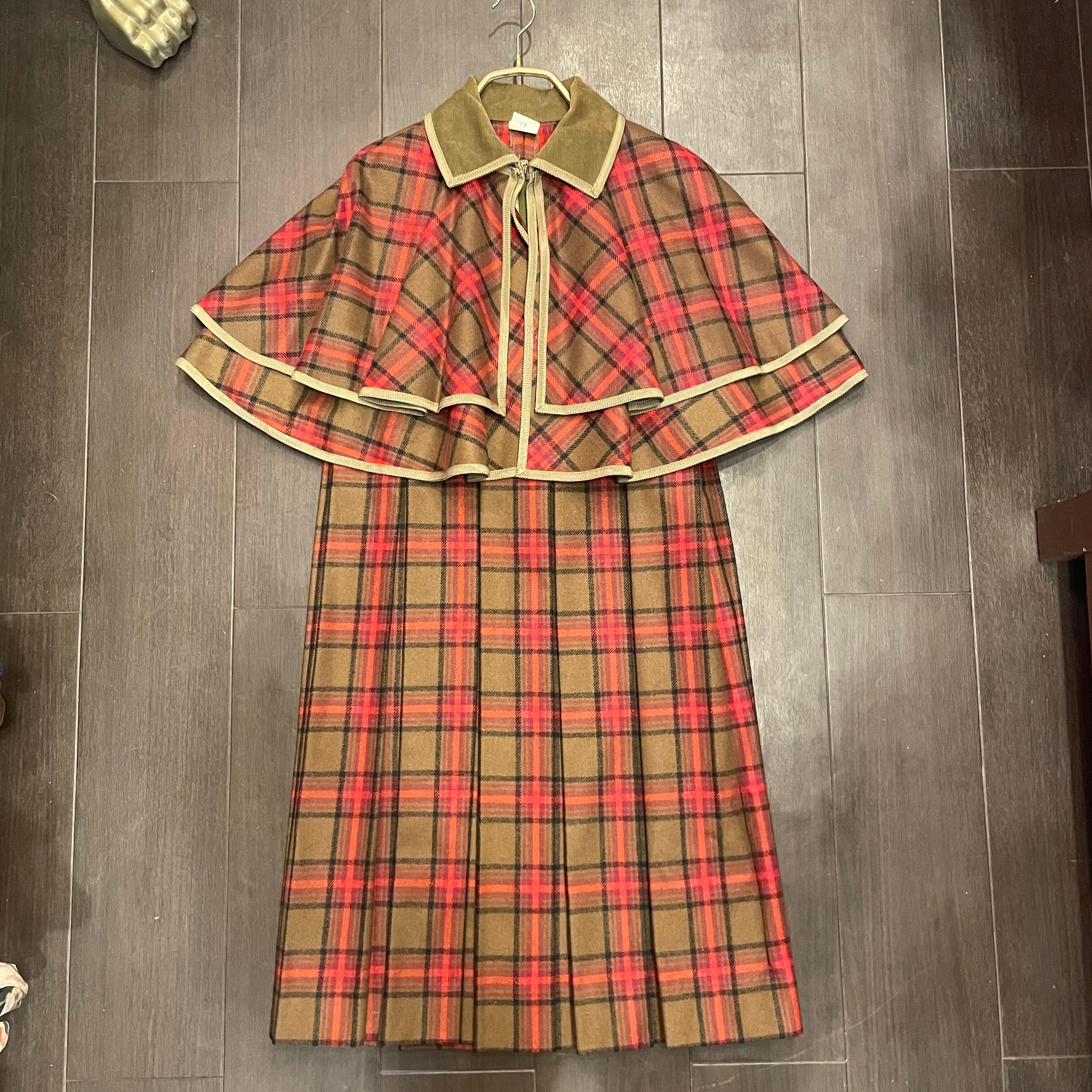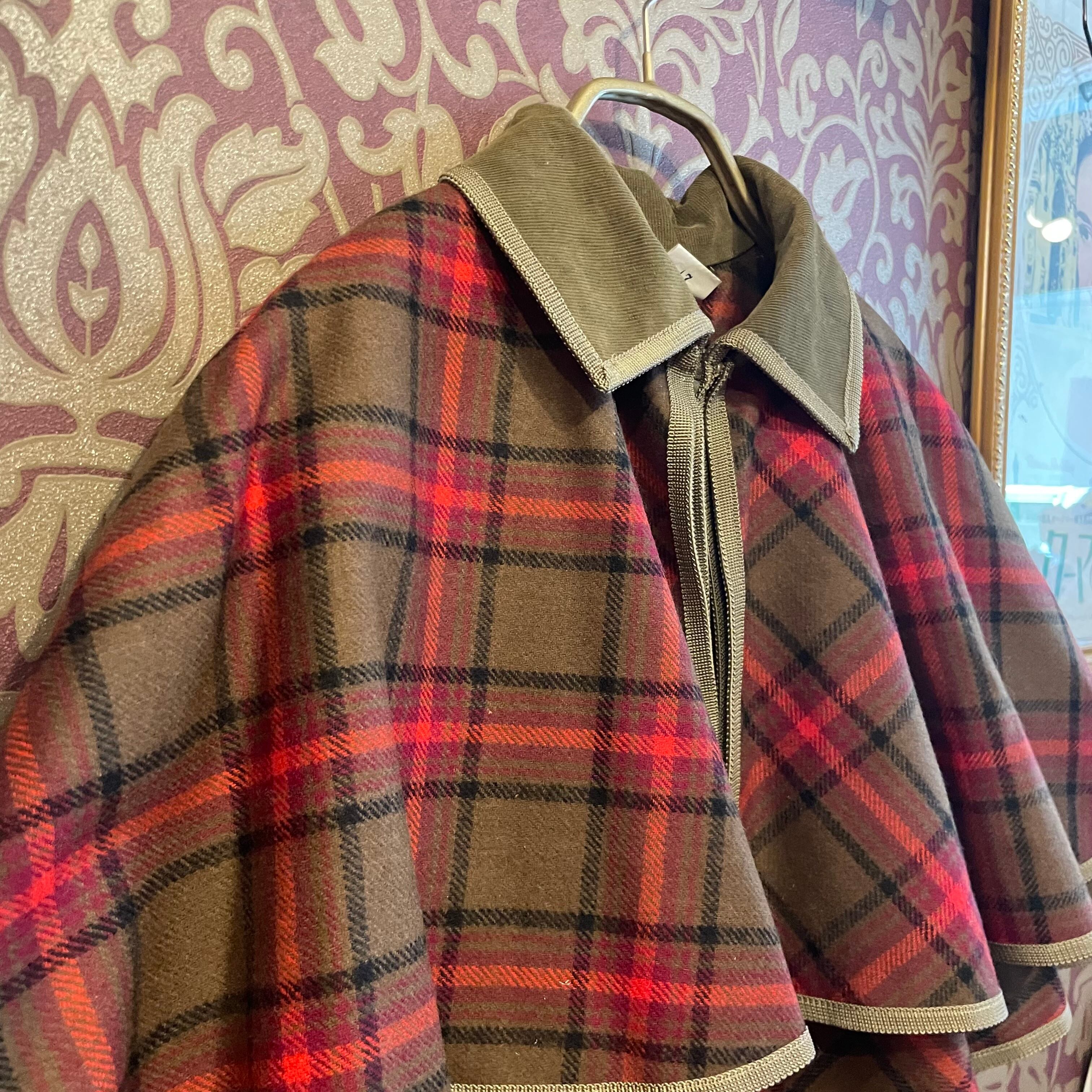 ケープは襟がコーデュロイで本体はチェック柄の二重です。