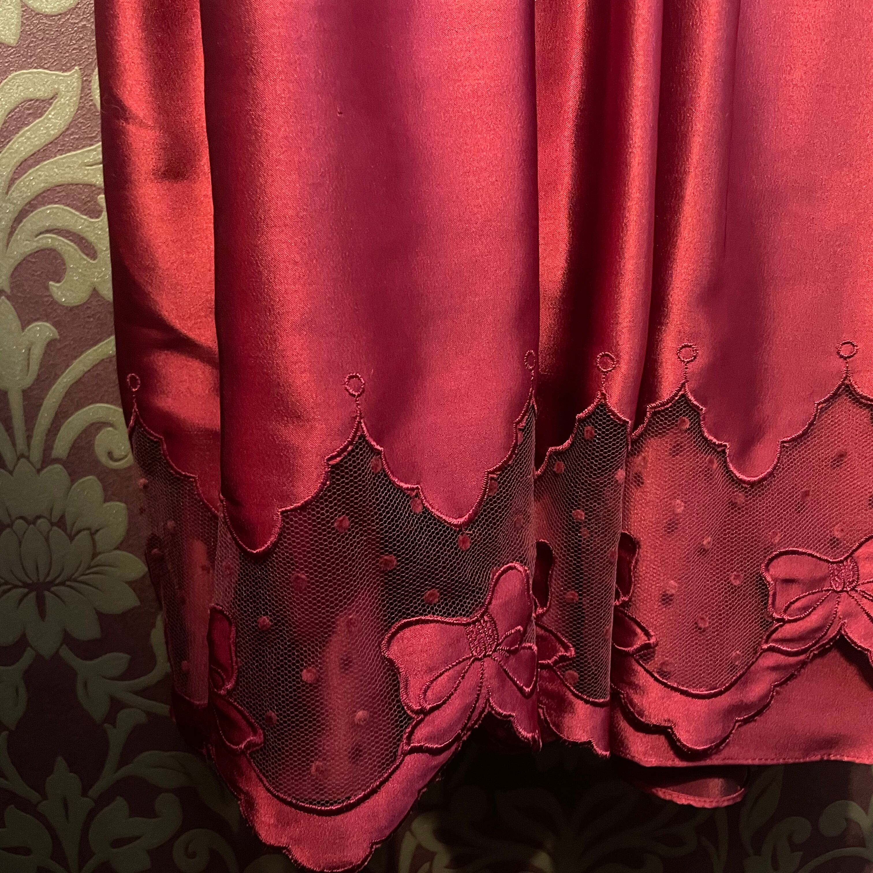 裾にはデコルテと同じドット柄のチュールレースが使われていてリボンの刺繍も施されています。
