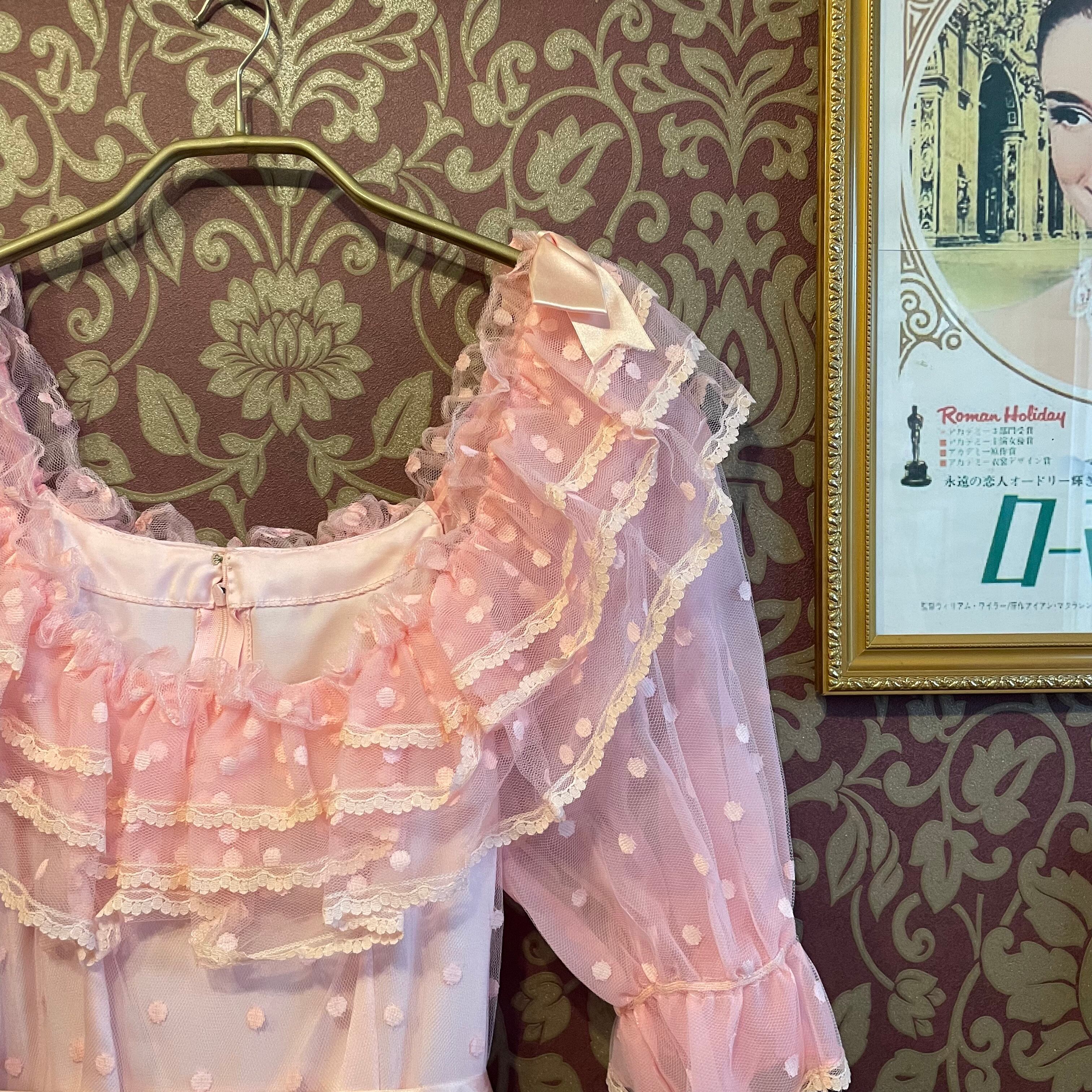 お色はベビーピンクでドット柄のチュールがたくさん使われています。