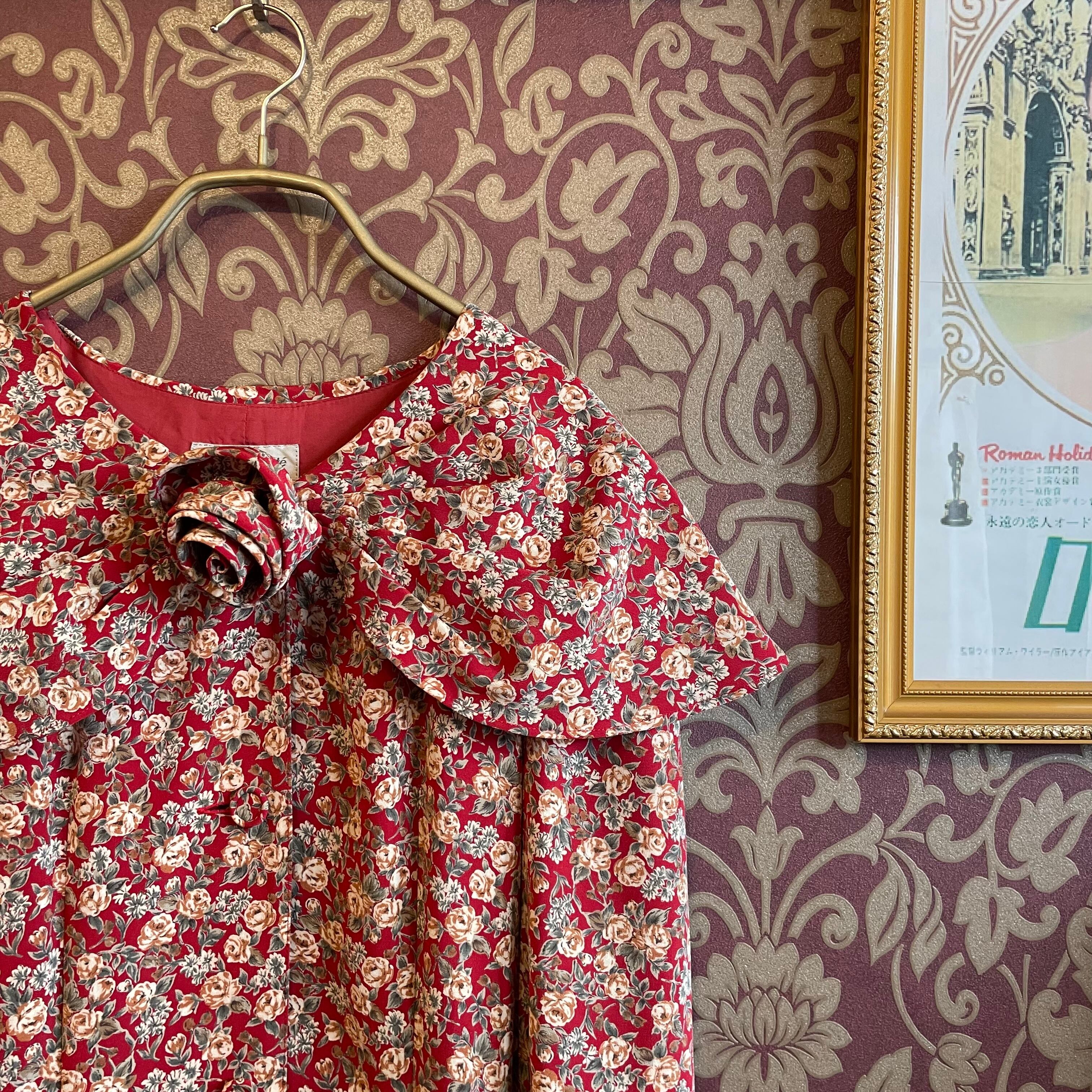 ゆったりとしたケープのような襟が特徴的なレトロワンピースです。