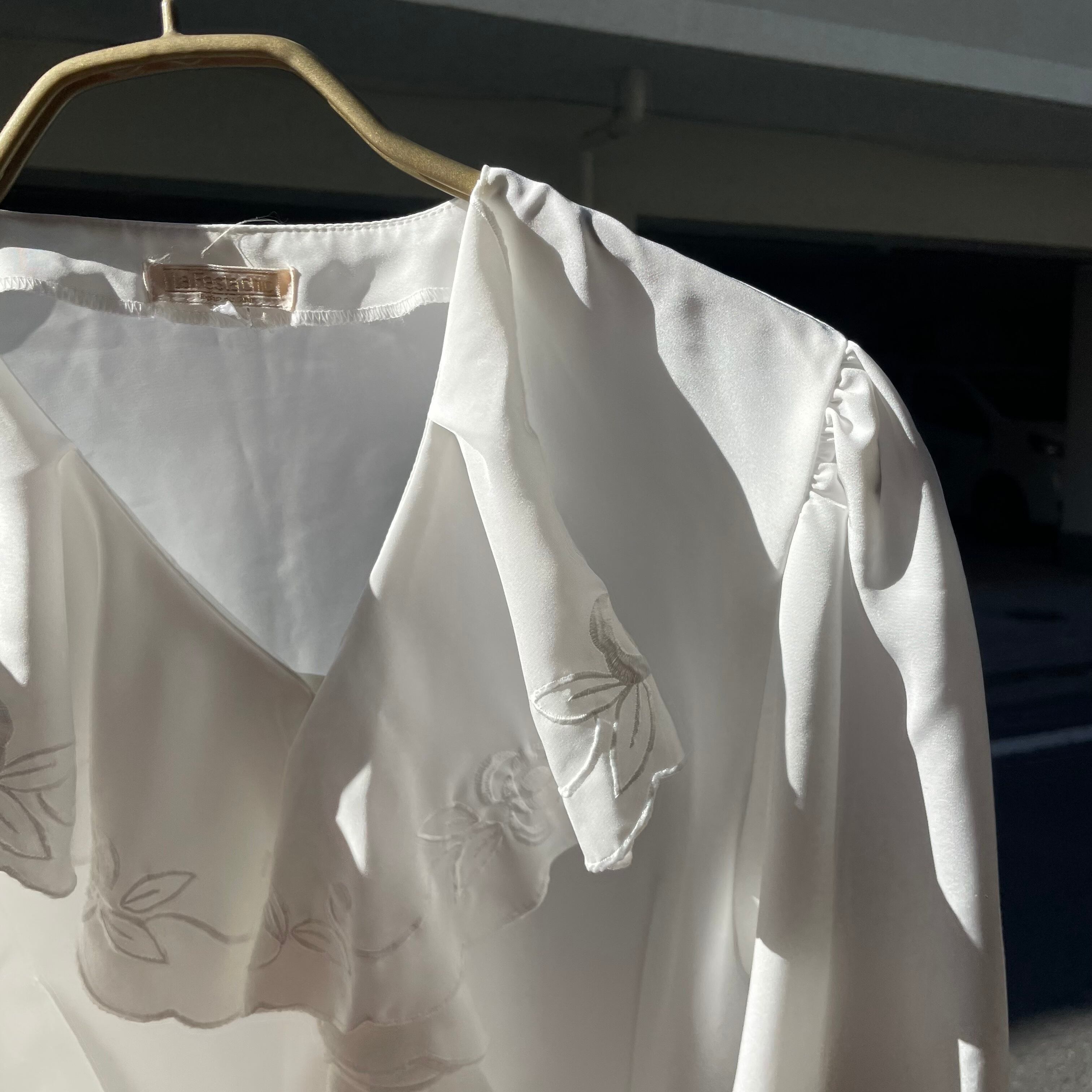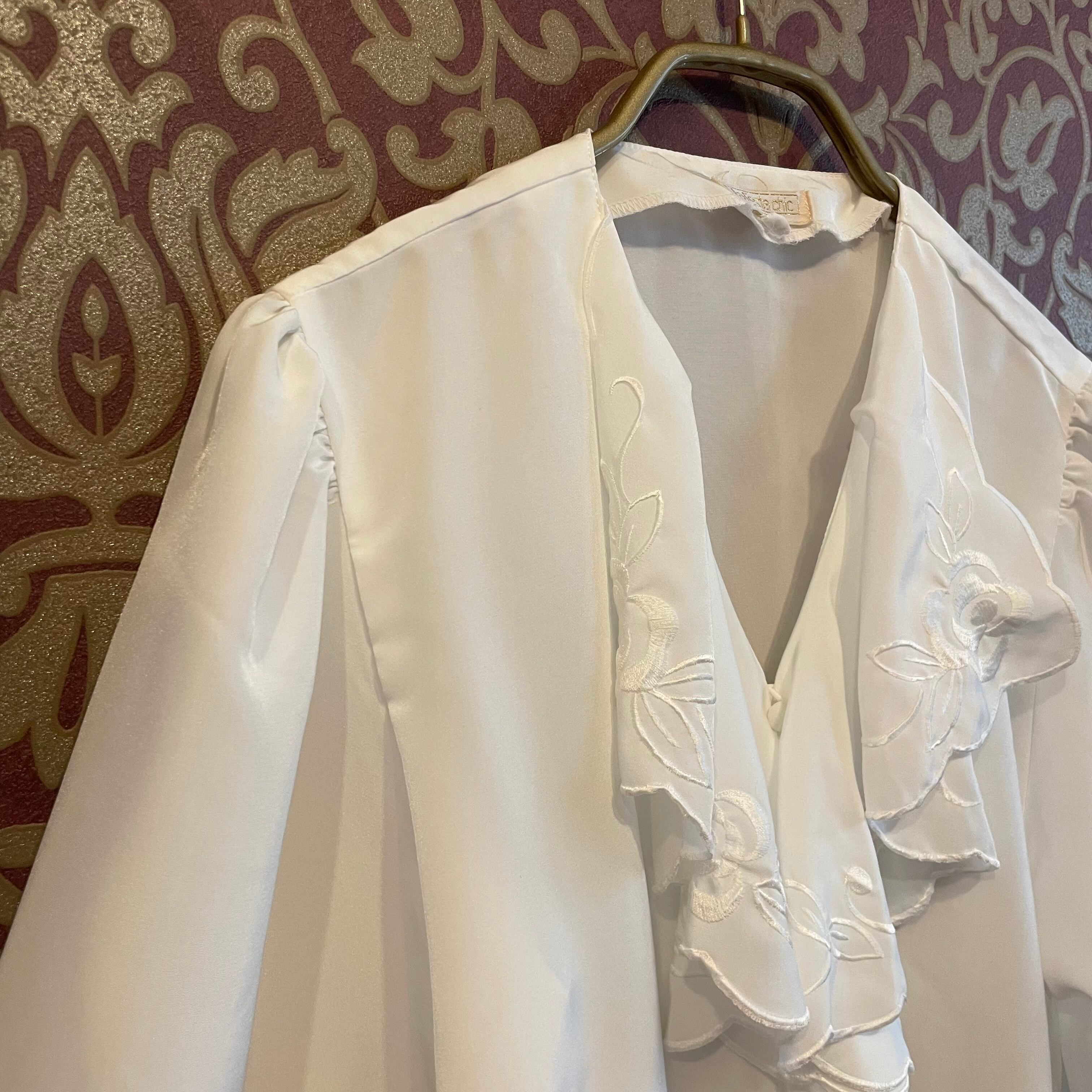 襟からジャボが繋がったようなデザインでデコルテから胸元にボリュームのあるデザインです。