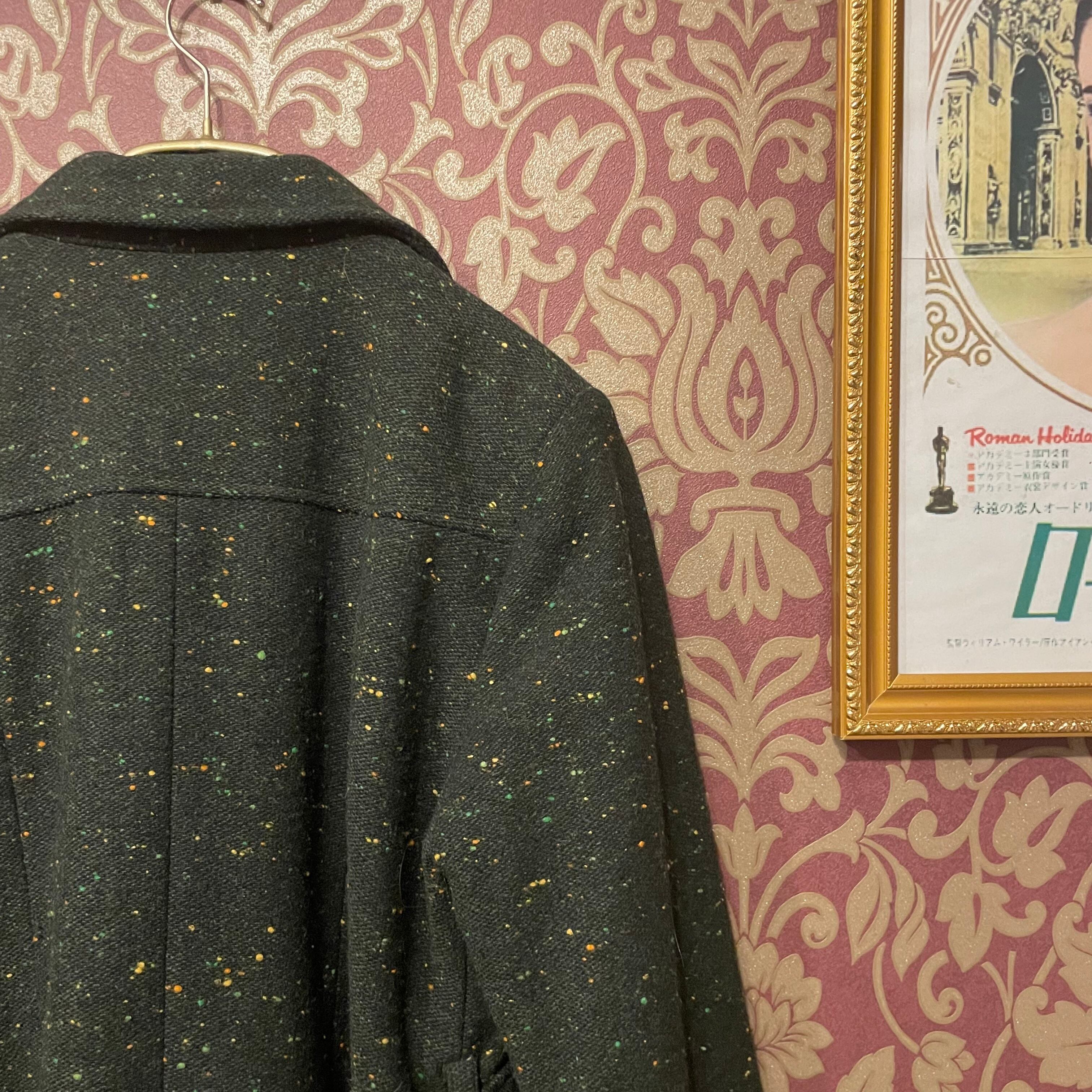 お色は深緑でポコポコとしたカラフルな糸が織り込まれているツイードで作られています。