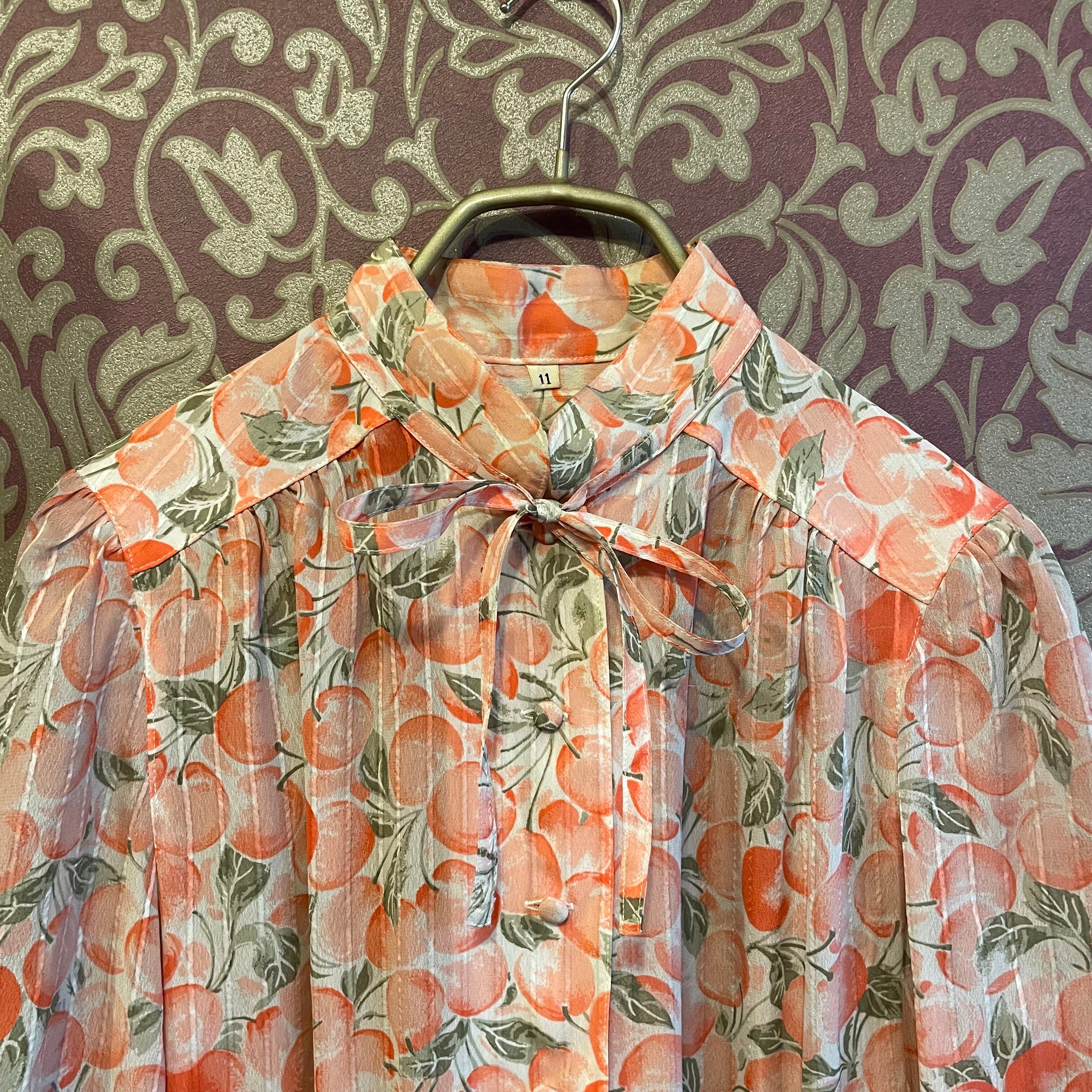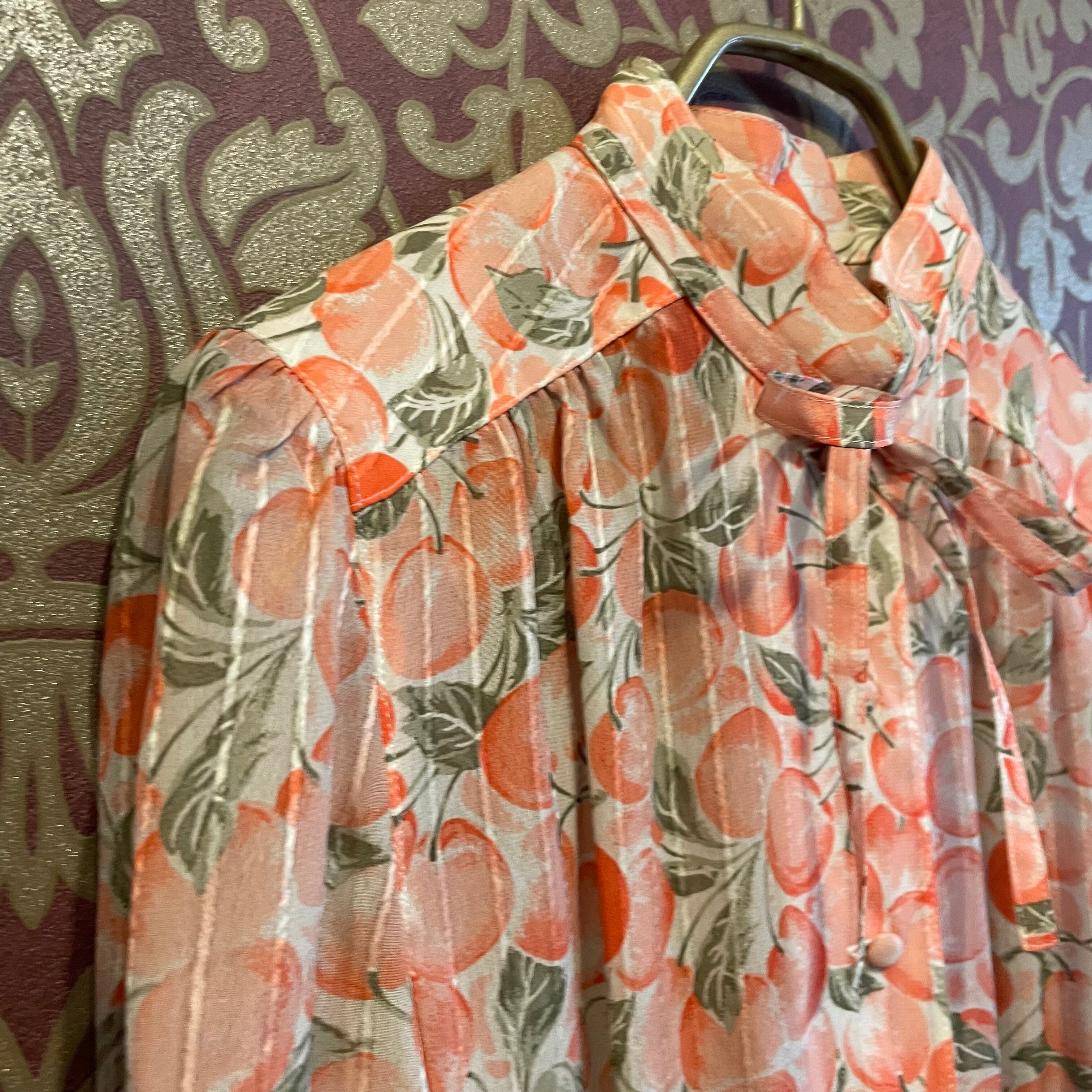 さくらんぼ柄というとポップで鮮やかな印象ですが、こちらはアプリコットのようなオレンジのような柔らかい色味で着やすさも◎