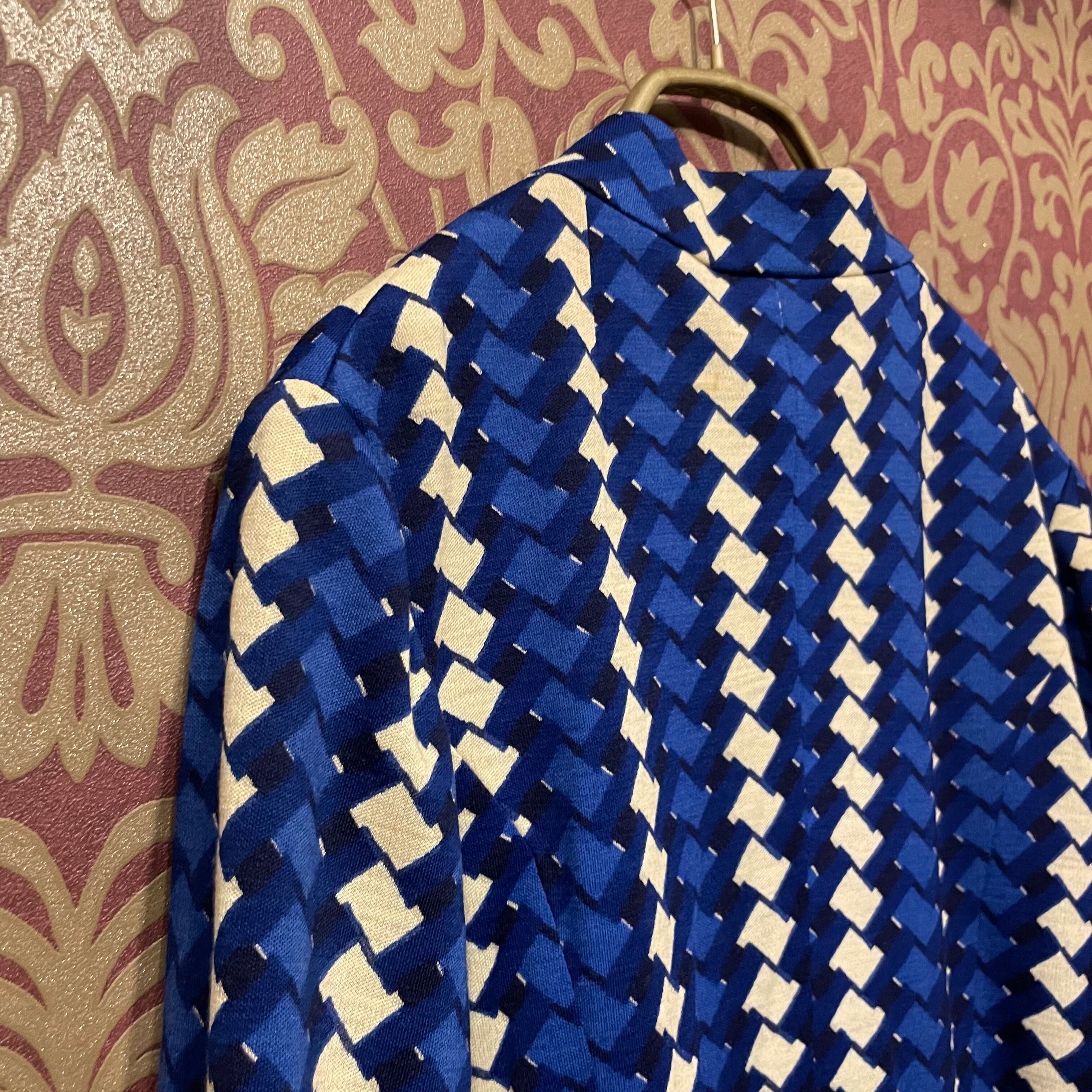 青を基調とした色でまとめられた幾何学模様です。