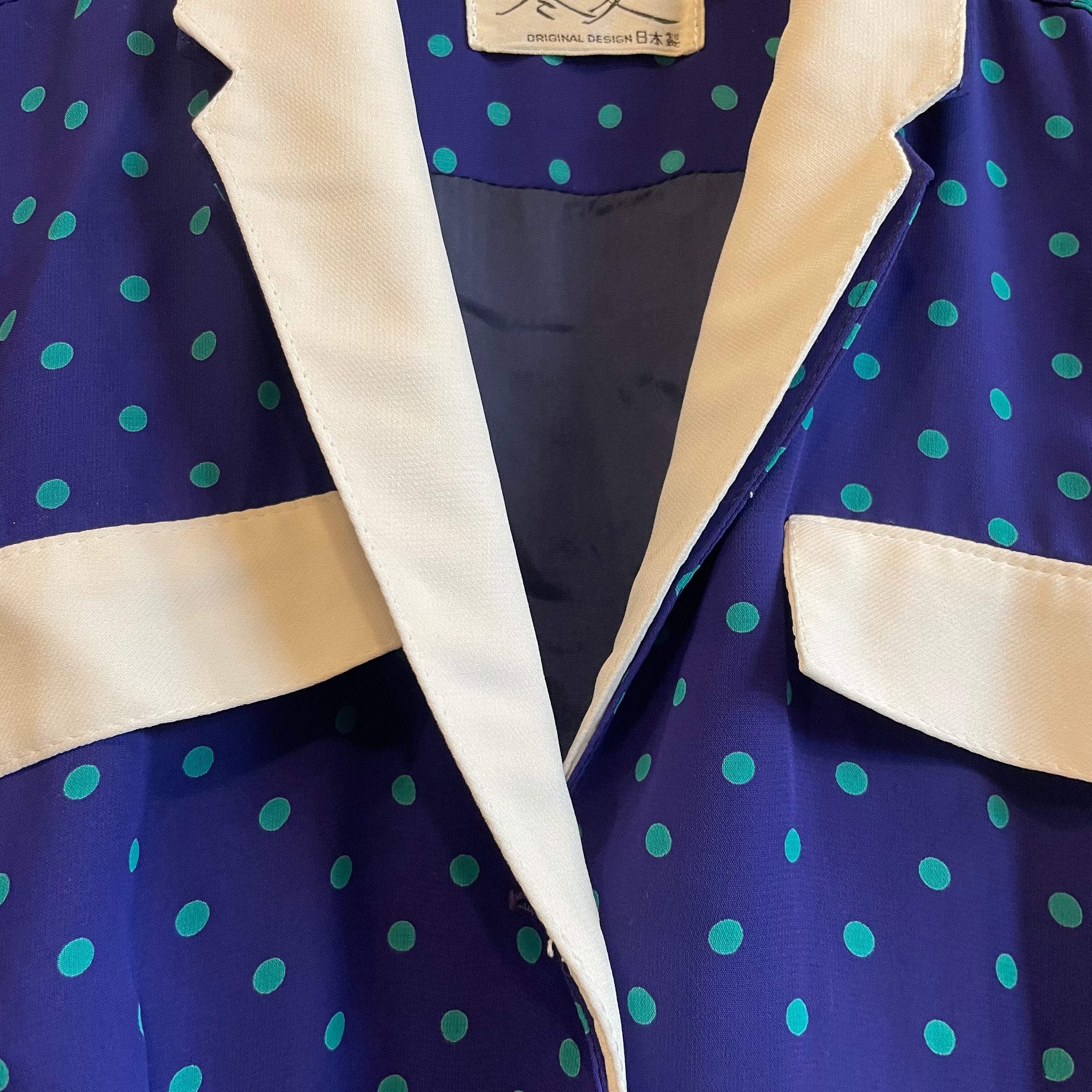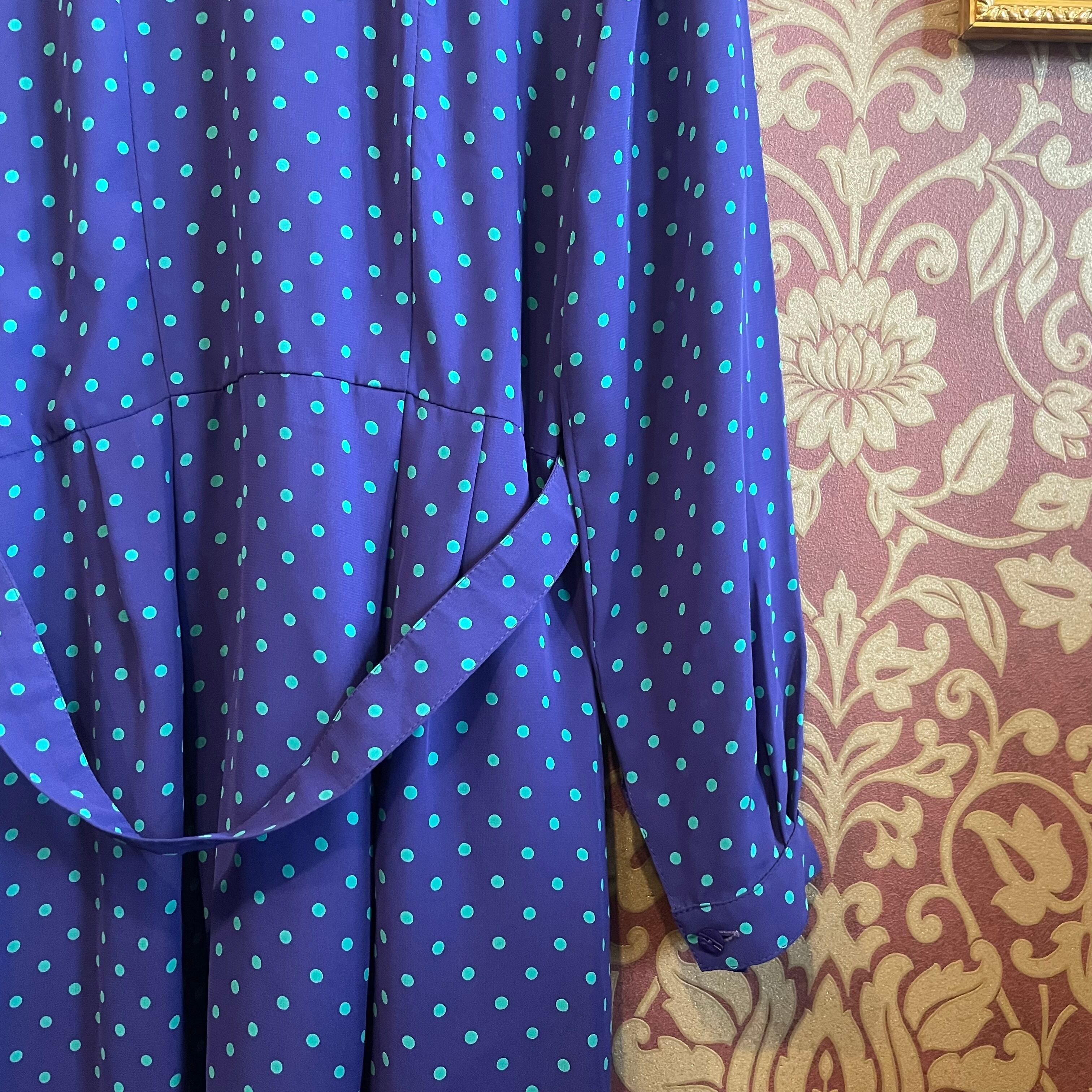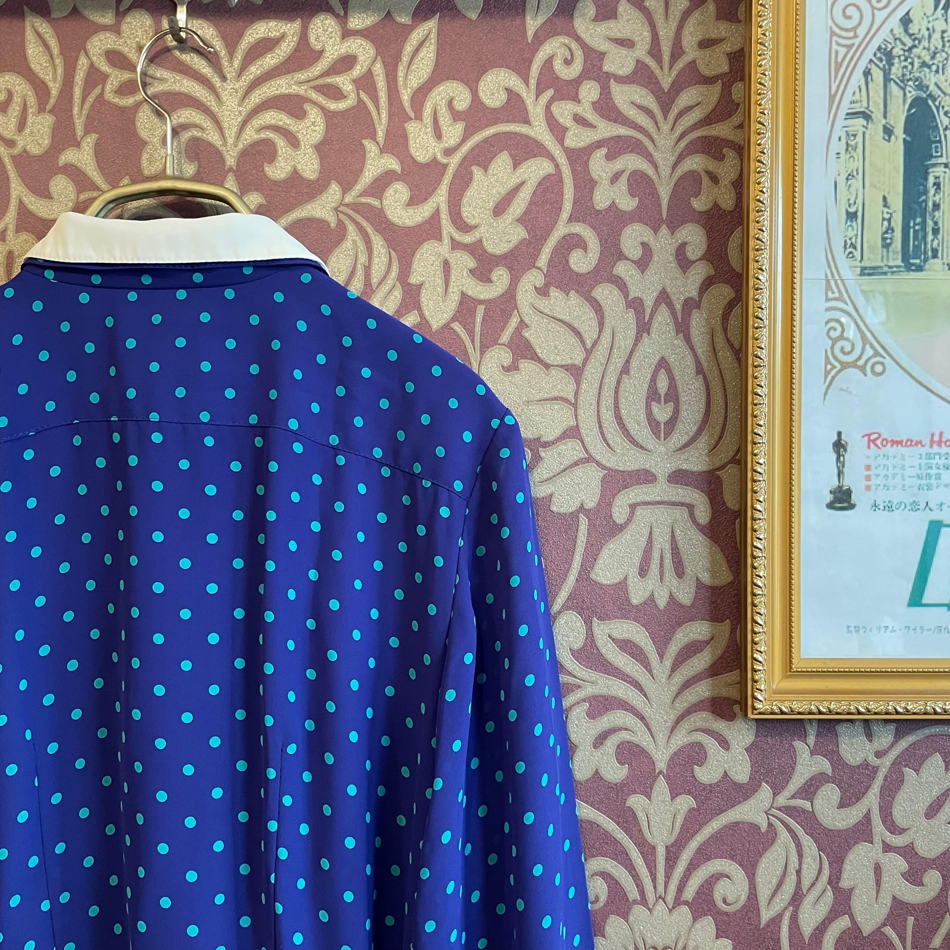 ブルーベリーのような青紫に、青緑のドット柄のヴィンテージワンピースです。