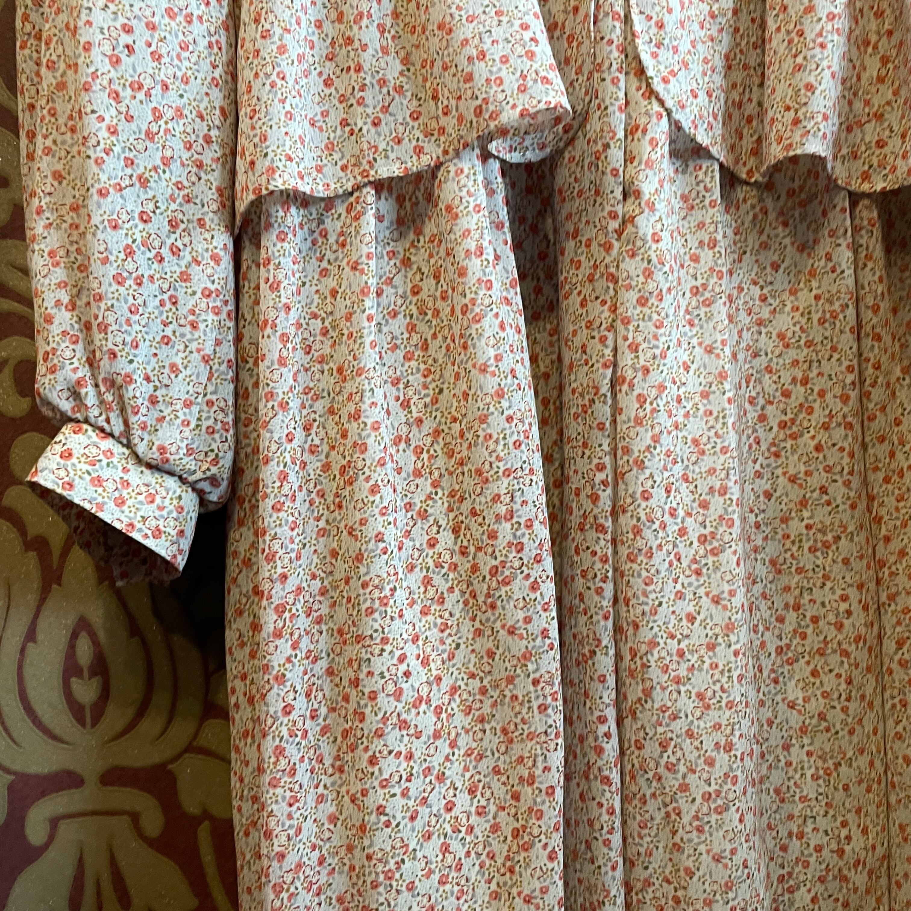 ベージュ地にオレンジの花柄のレトロワンピースです。
