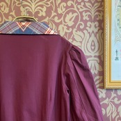襟と袖口は紺ベースのチェック柄で、小豆色との対比が美しいです。