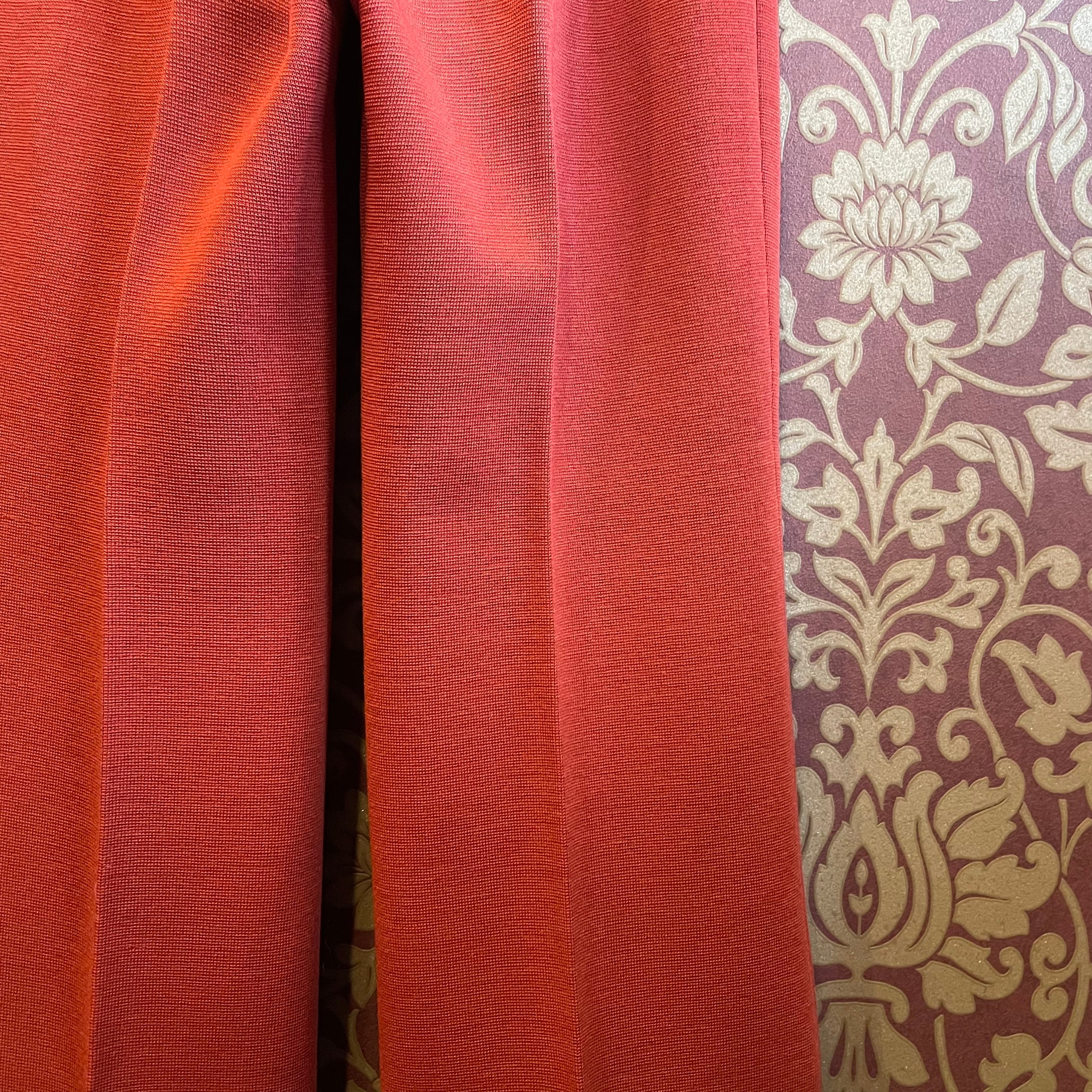 赤とオレンジ、茶色を混ぜたような独特なテラコッタ風のセットアップです。