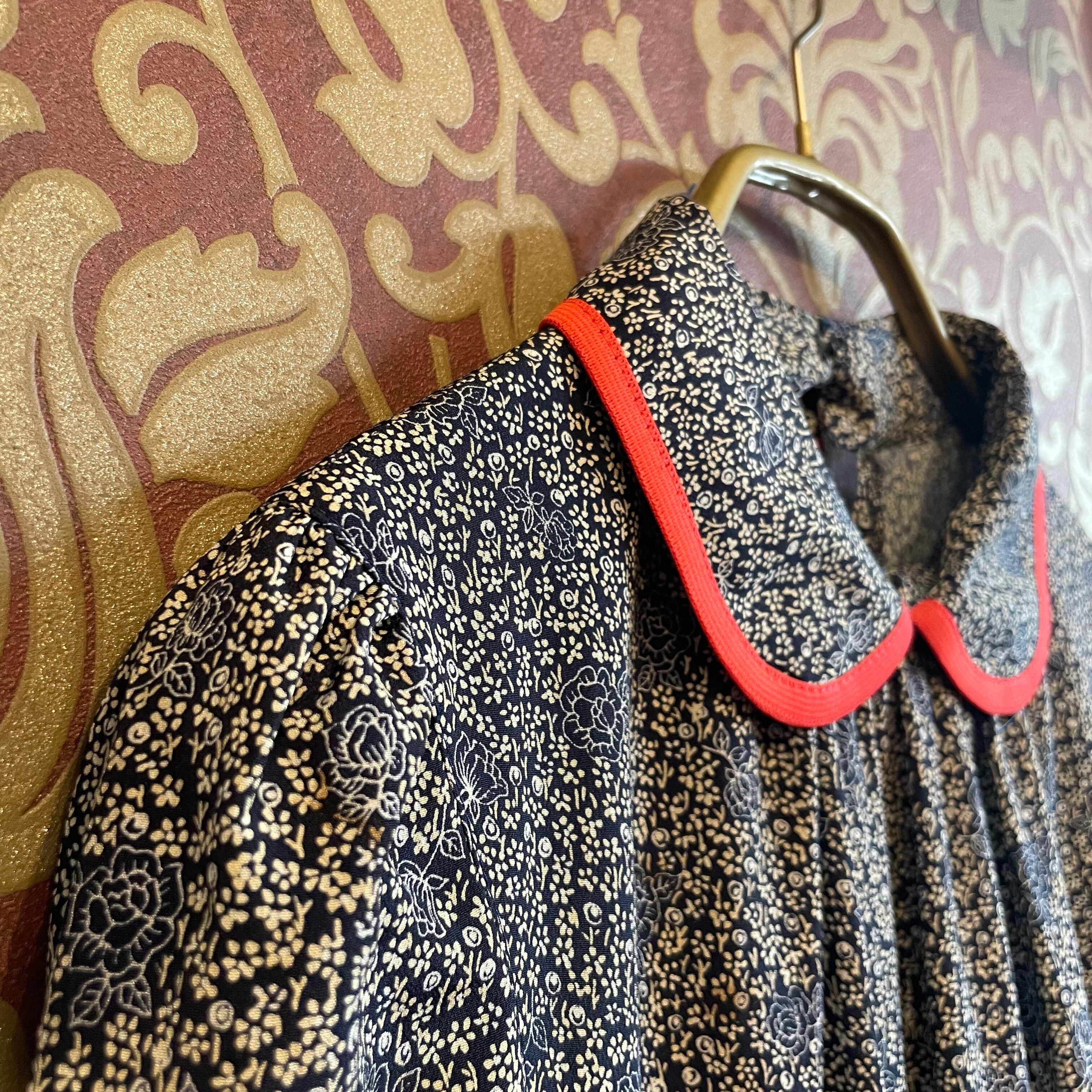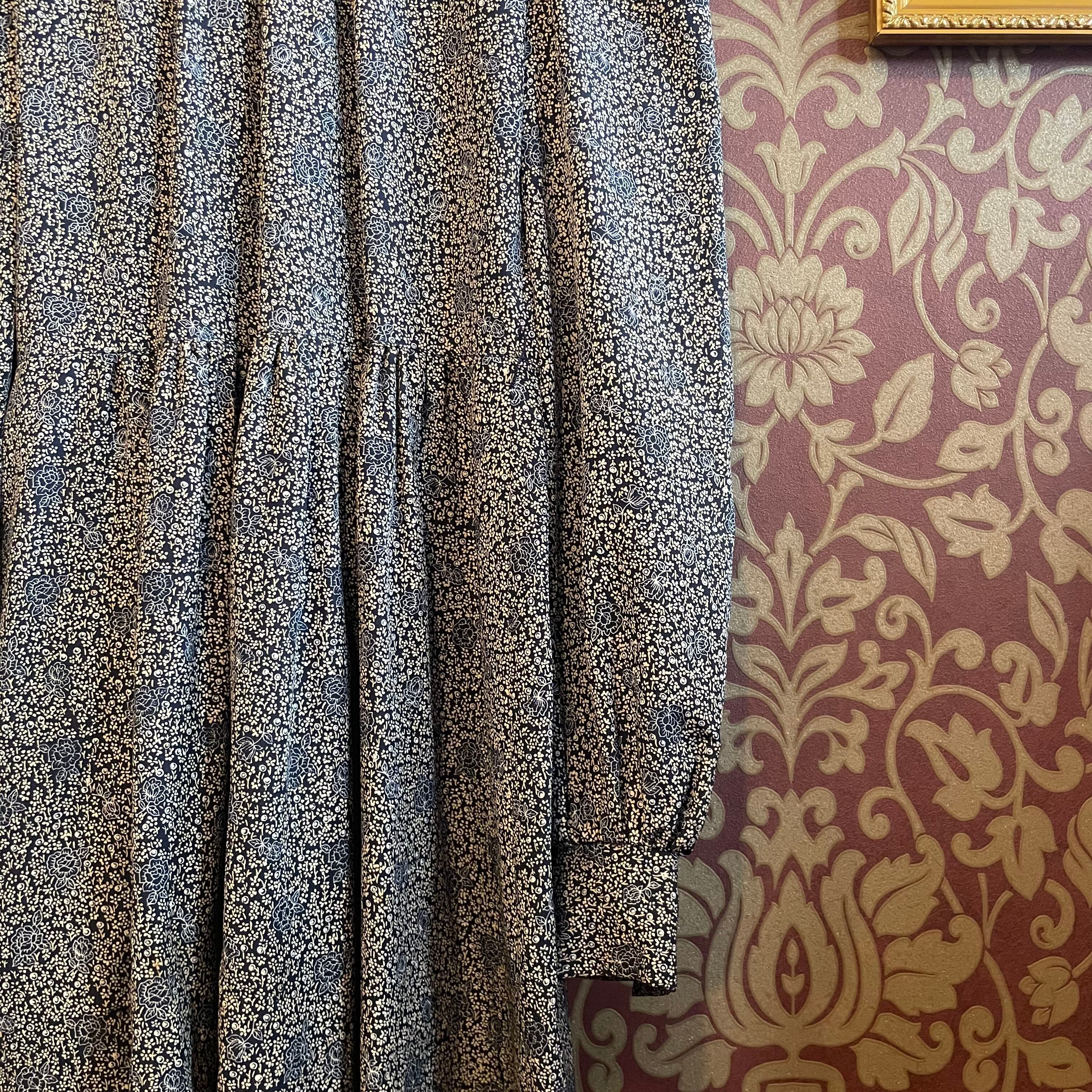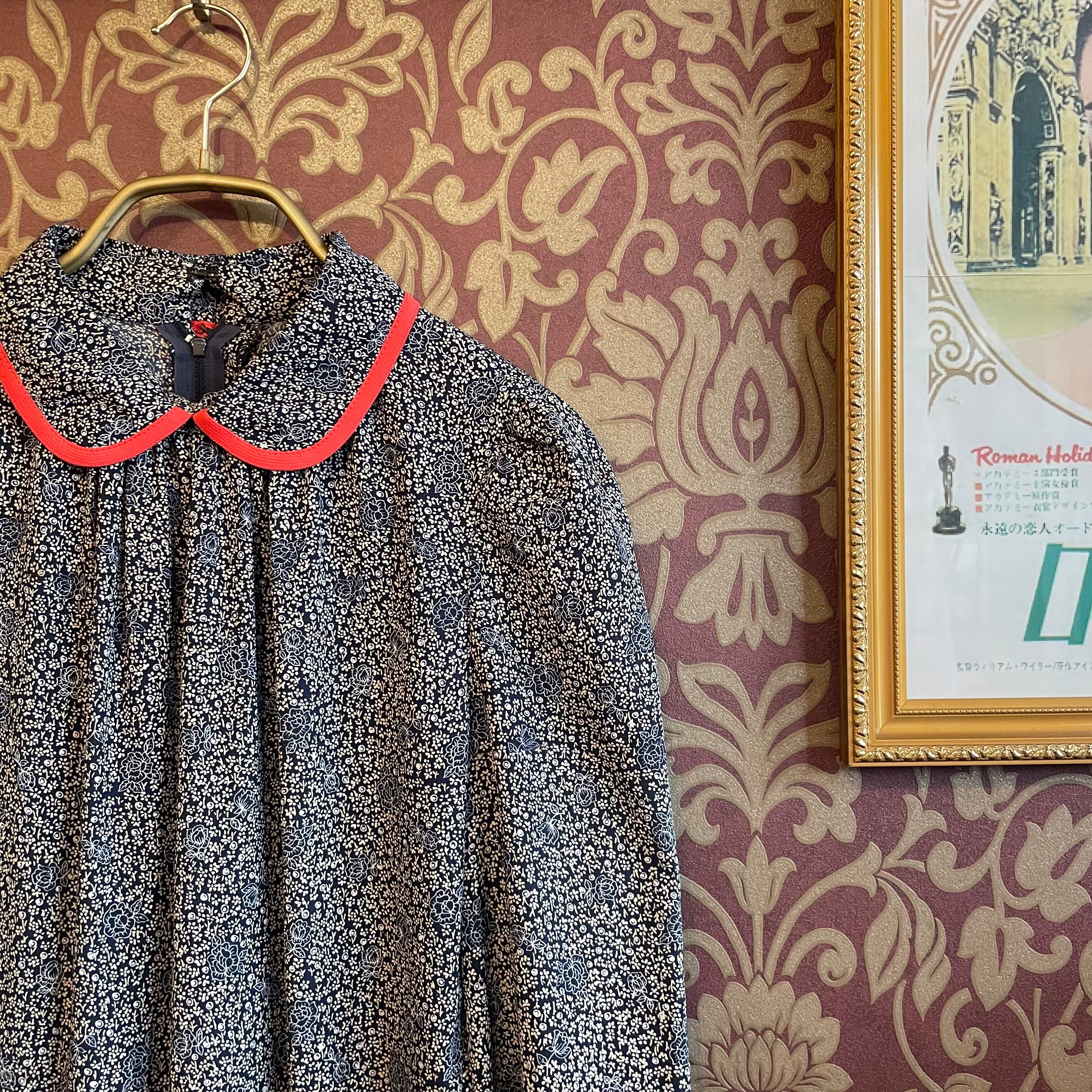 紺地に小さな花柄が可愛らしいヴィンテージワンピースです。
