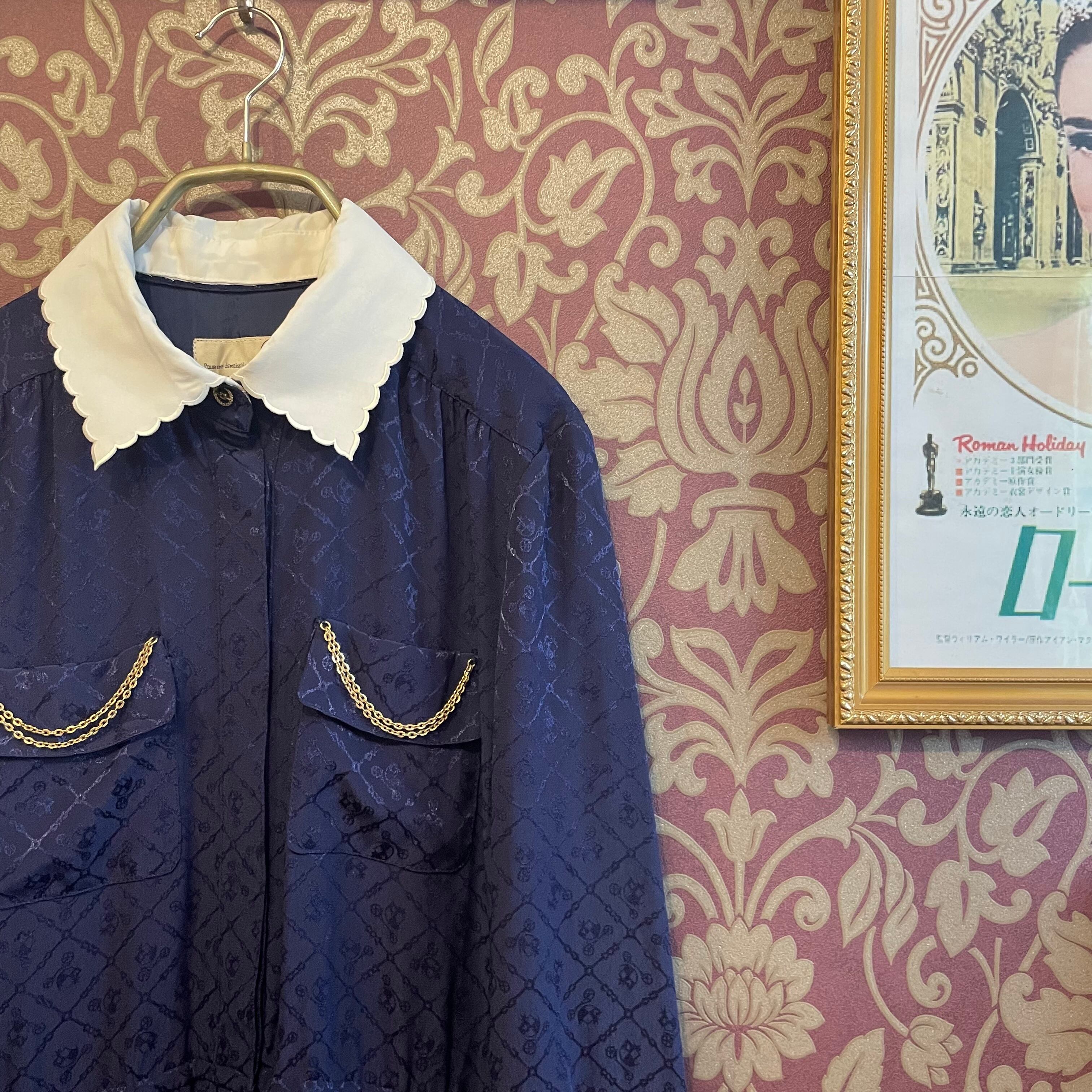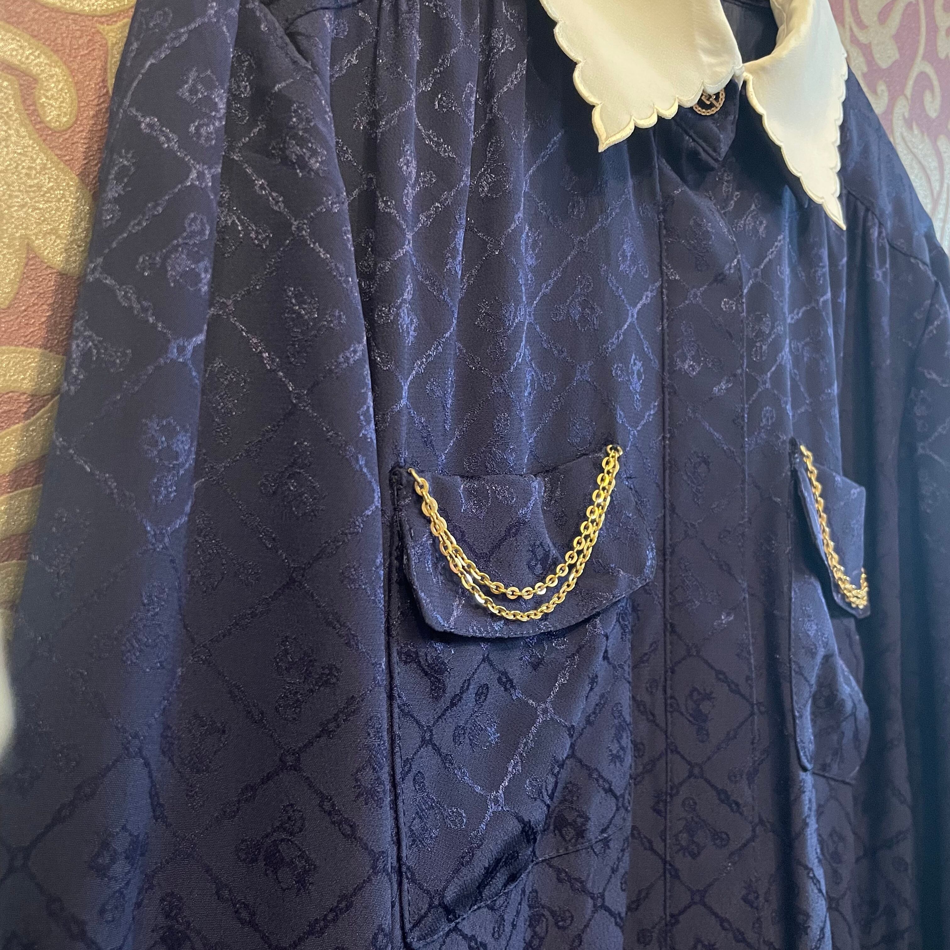 深い紺と白襟の組み合わせが美しいヴィンテージワンピースです。
