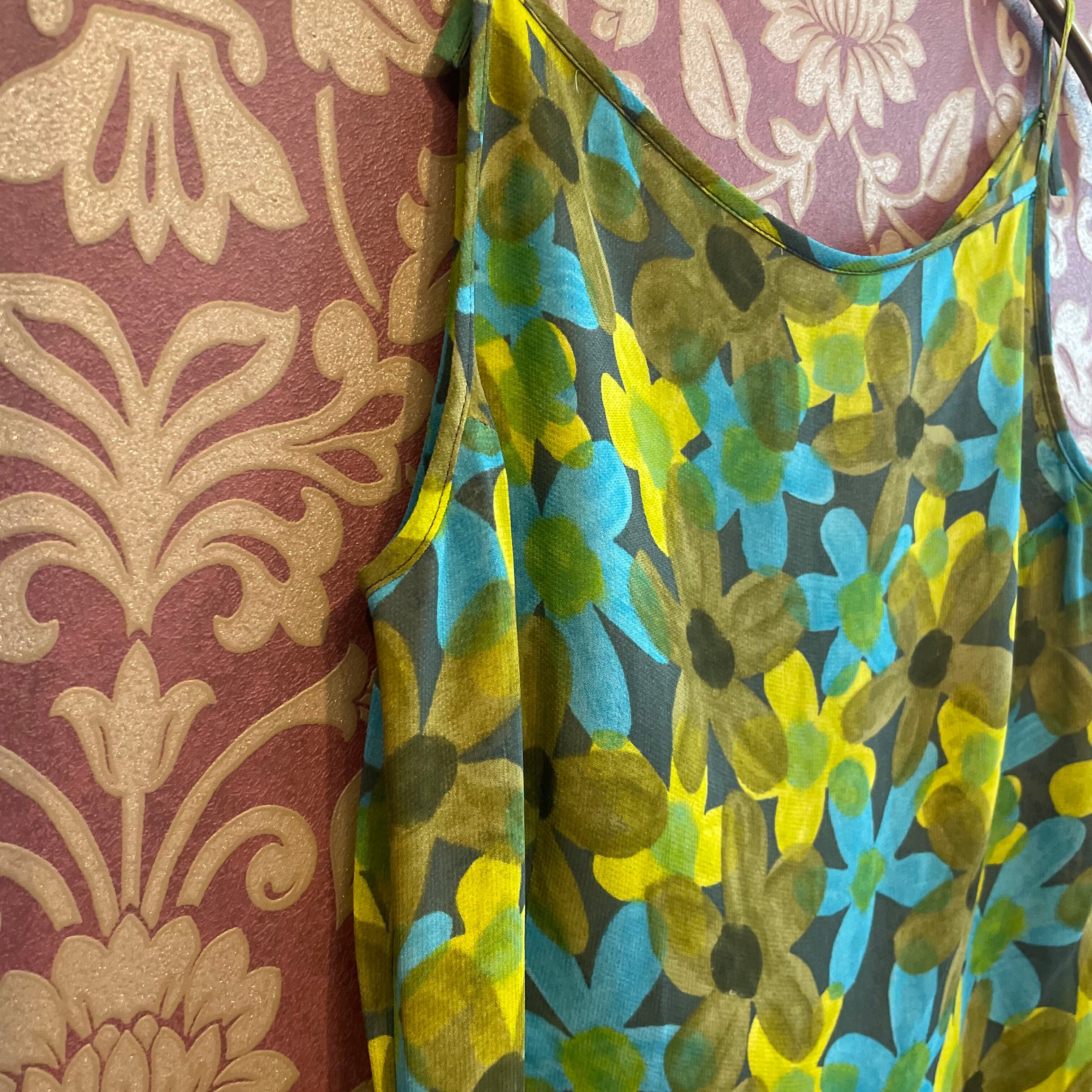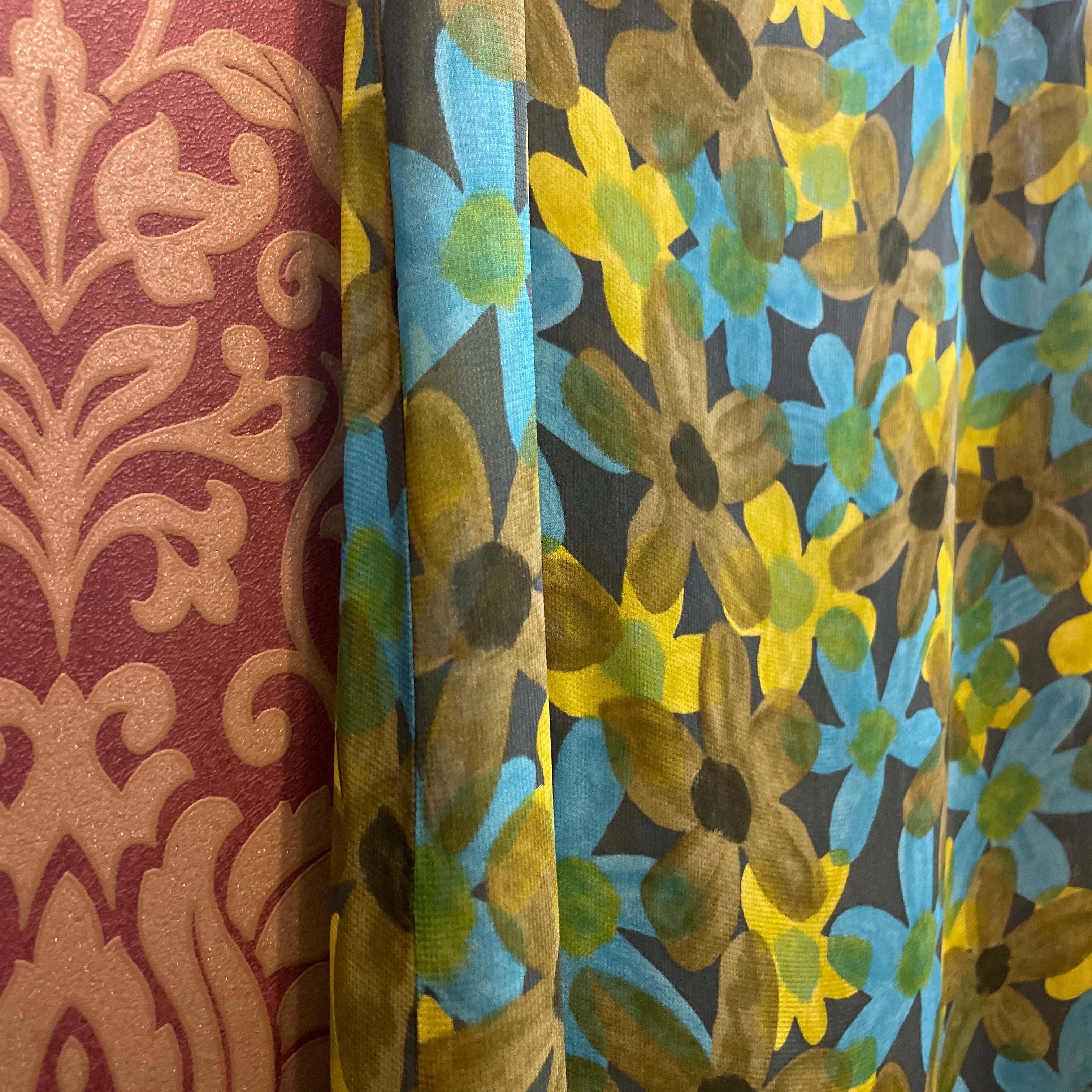 水色や黄緑を使った寒色系のカラーでまとめられた花柄です。