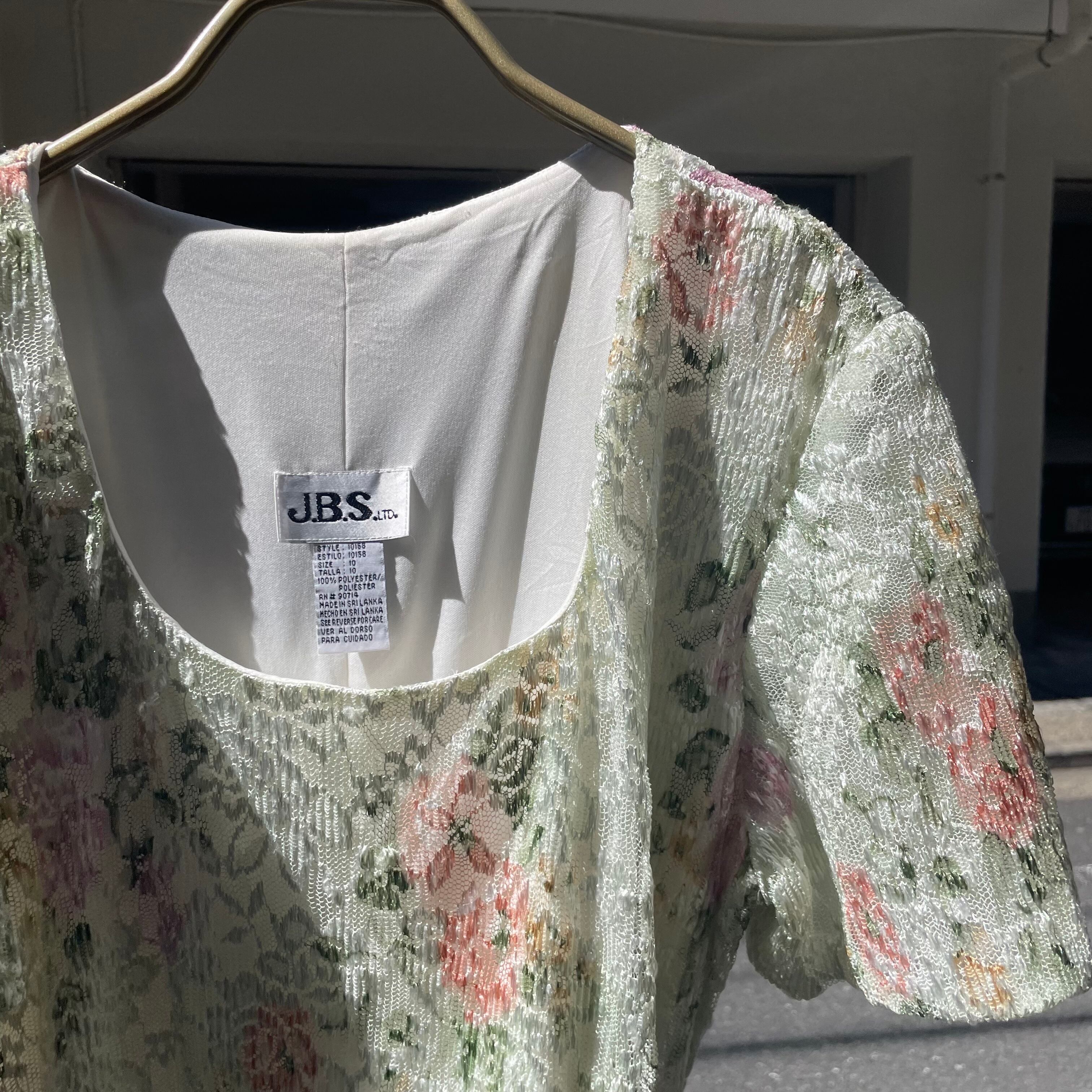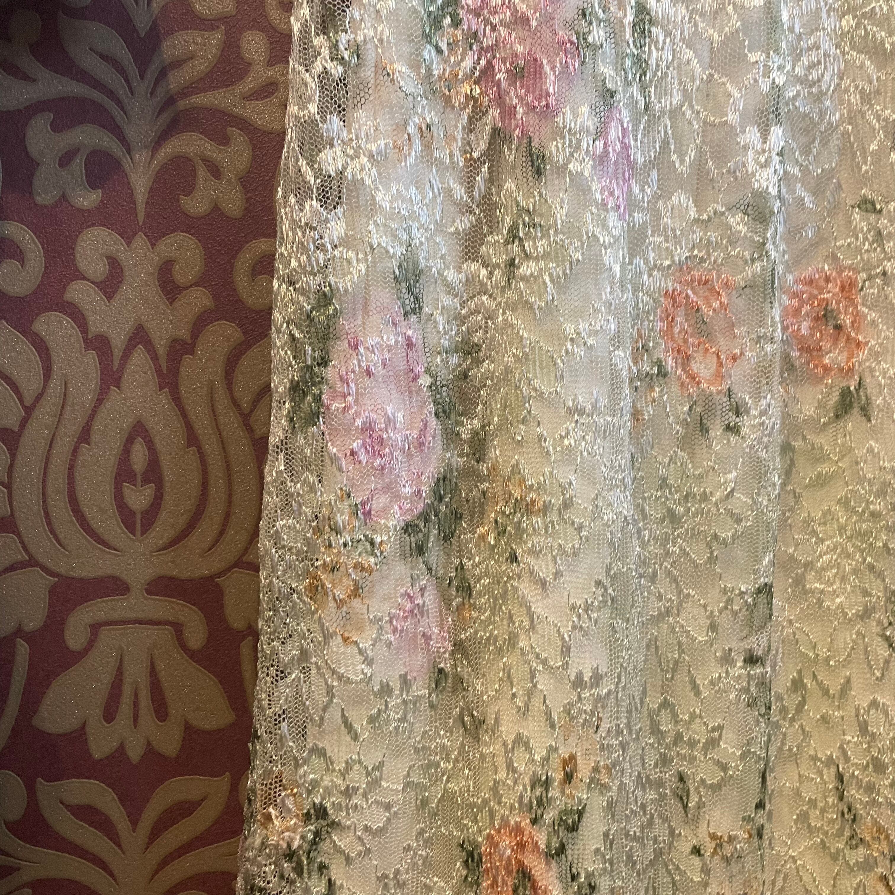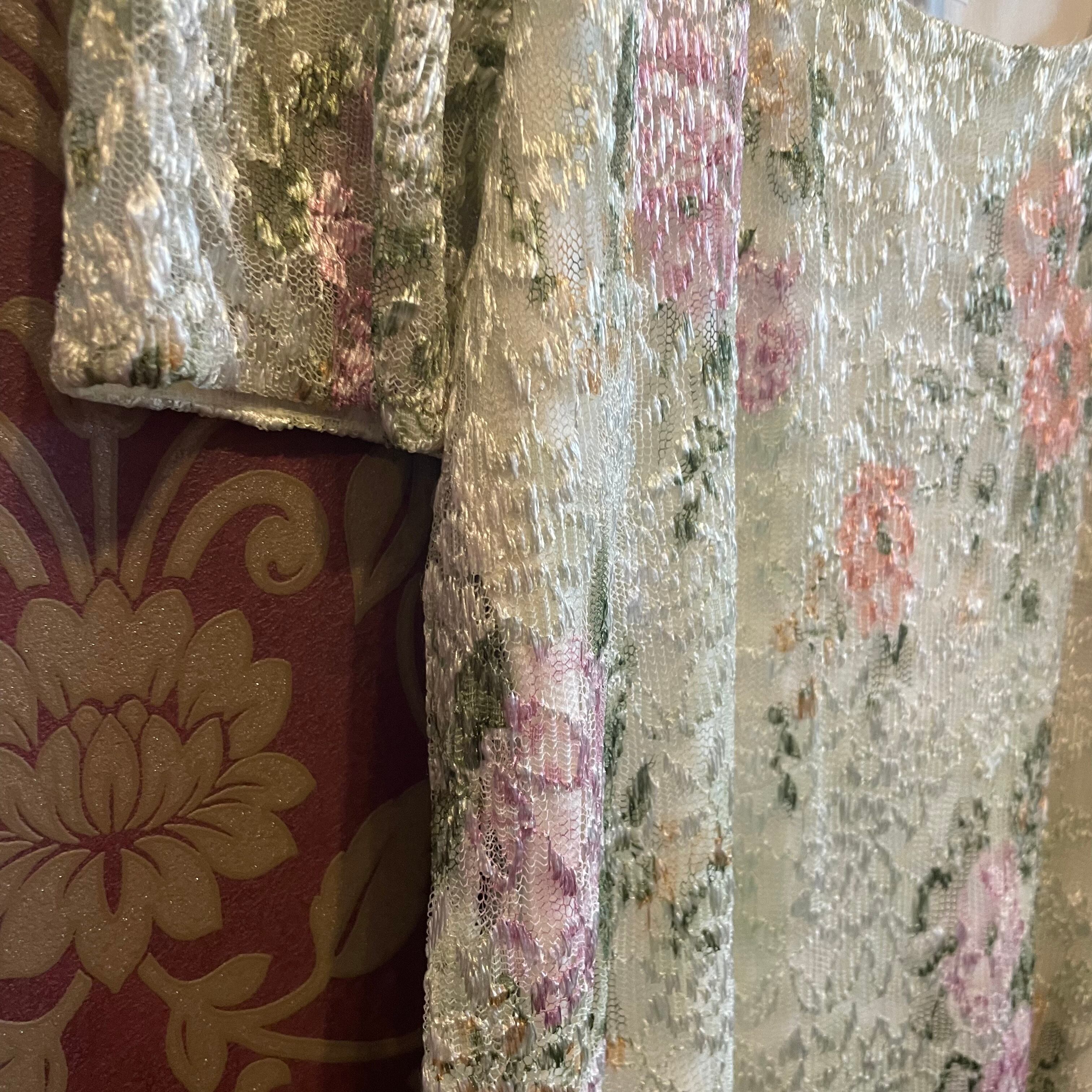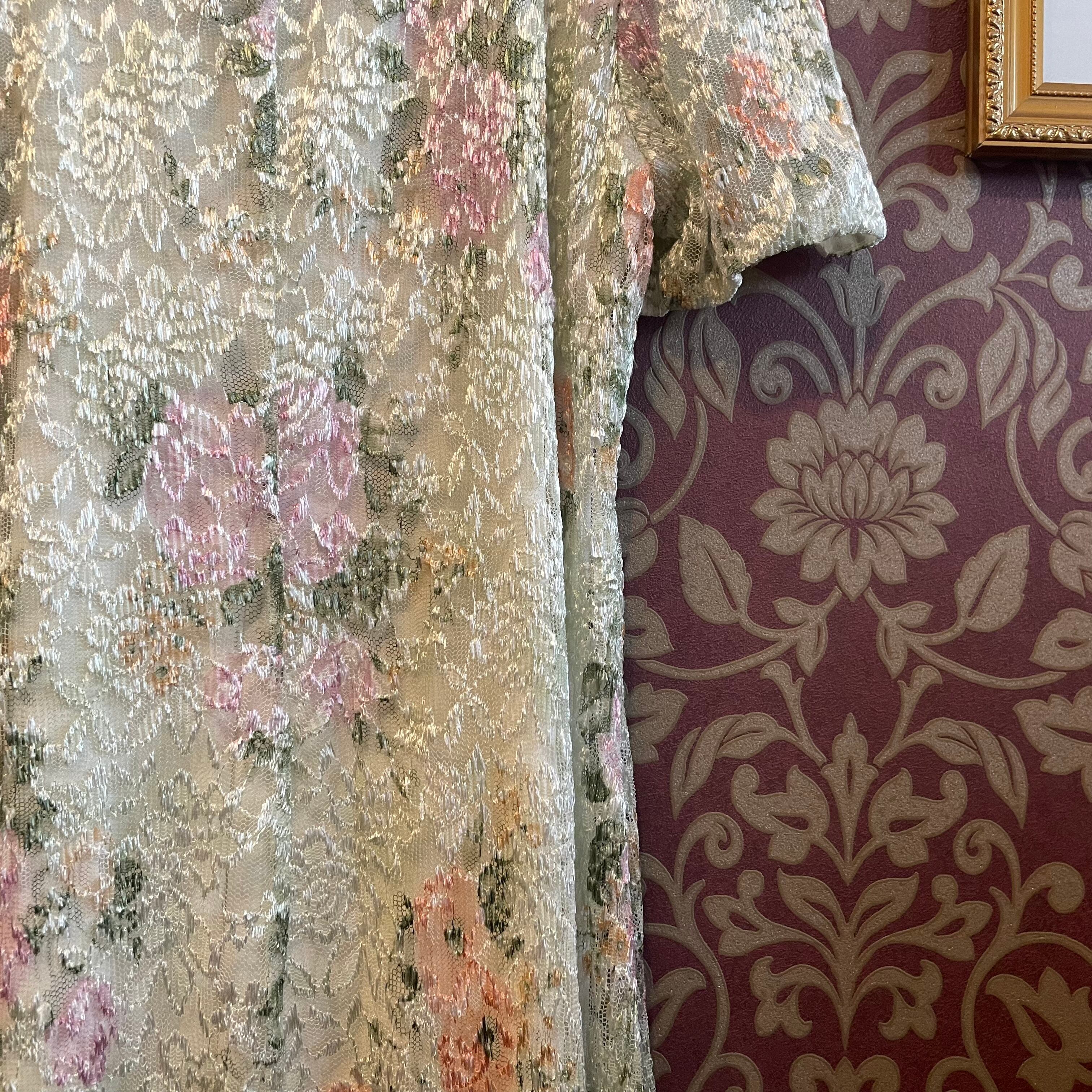 白地のレースにランダムに色が付いたヴィンテージドレスです。