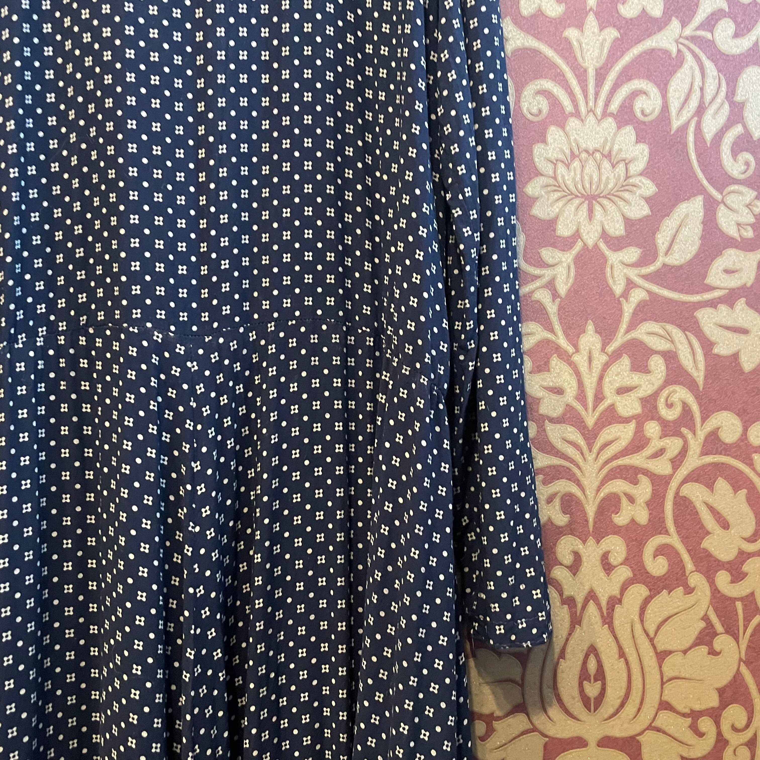 紺地にドットと花柄のシンプルなデザインの生地で作られています。