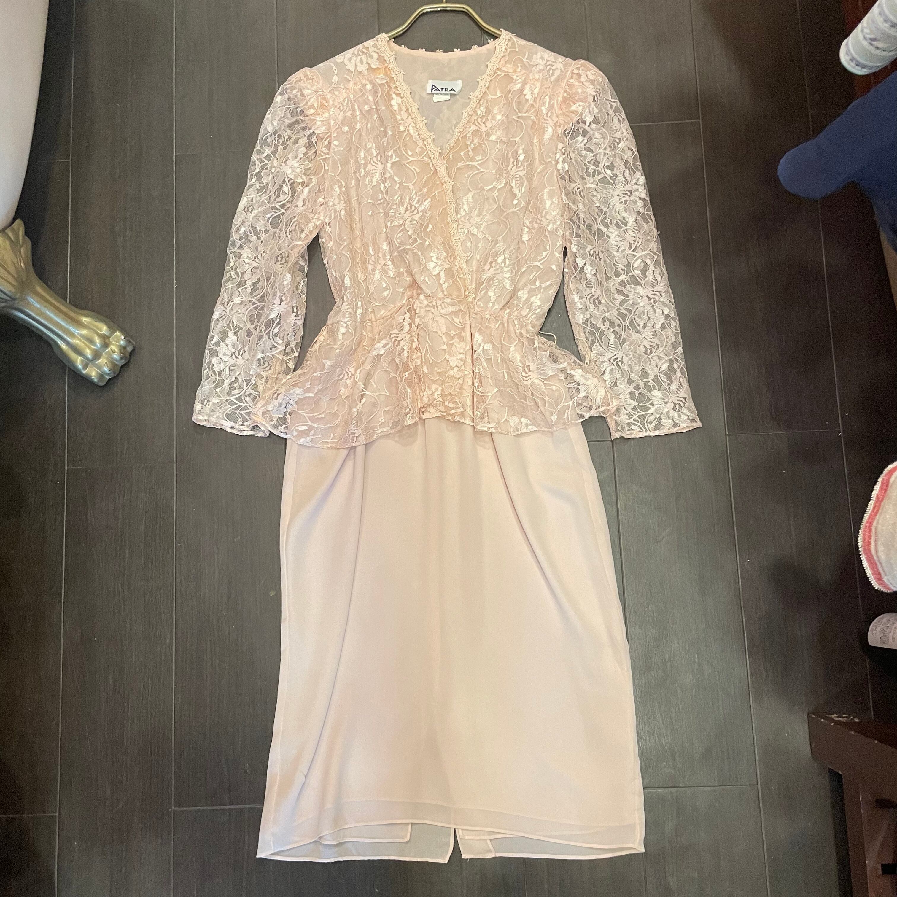 柔らかなベビーピンク色で統一されていて可愛らしい雰囲気ですが、シルエットはクラシカルで上品で大人な印象です。