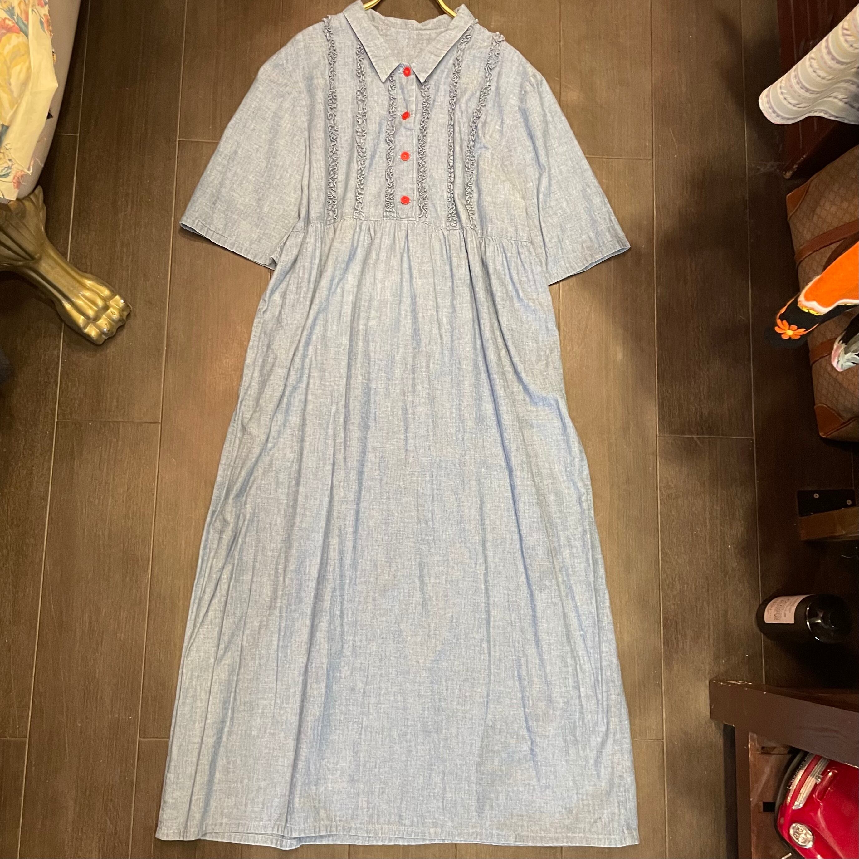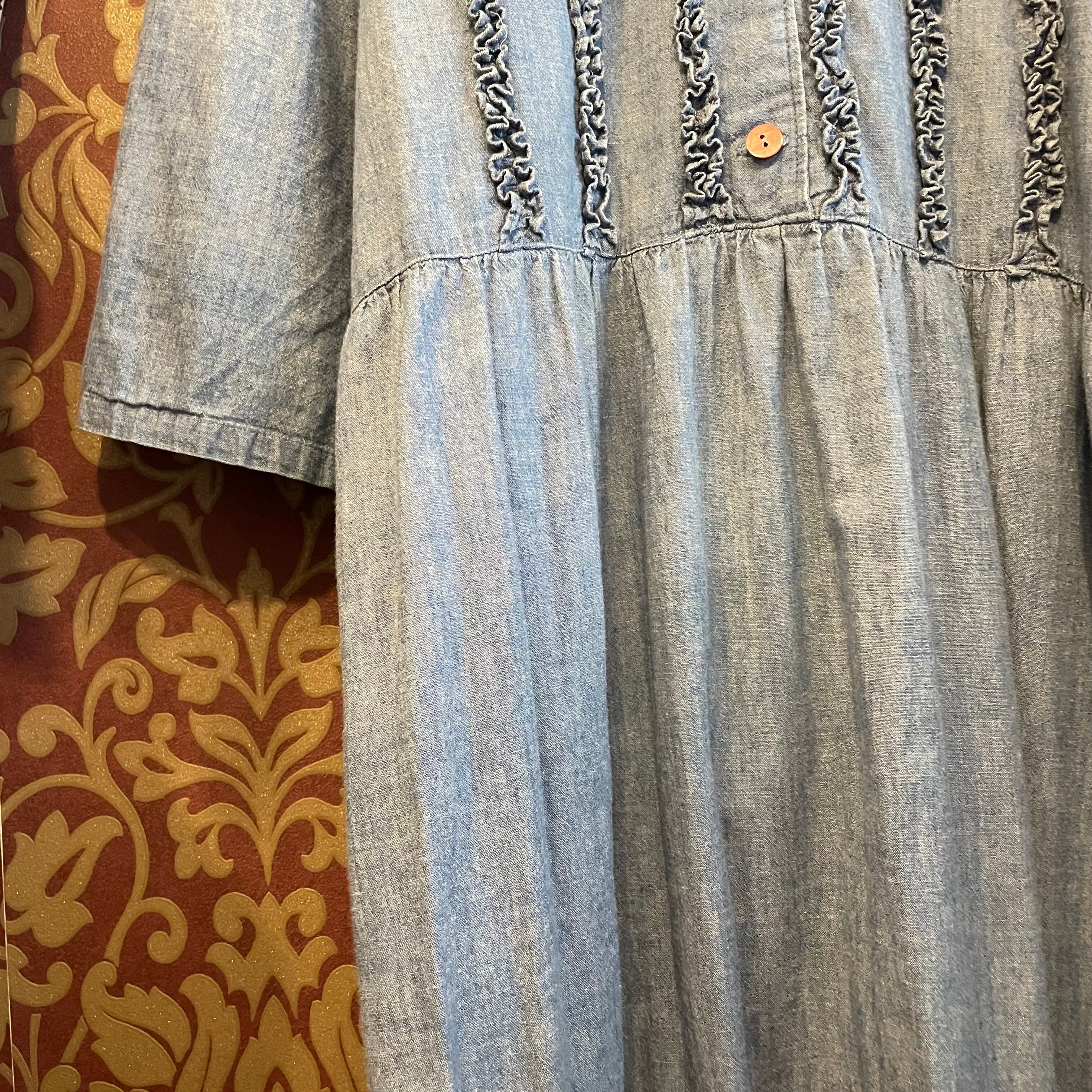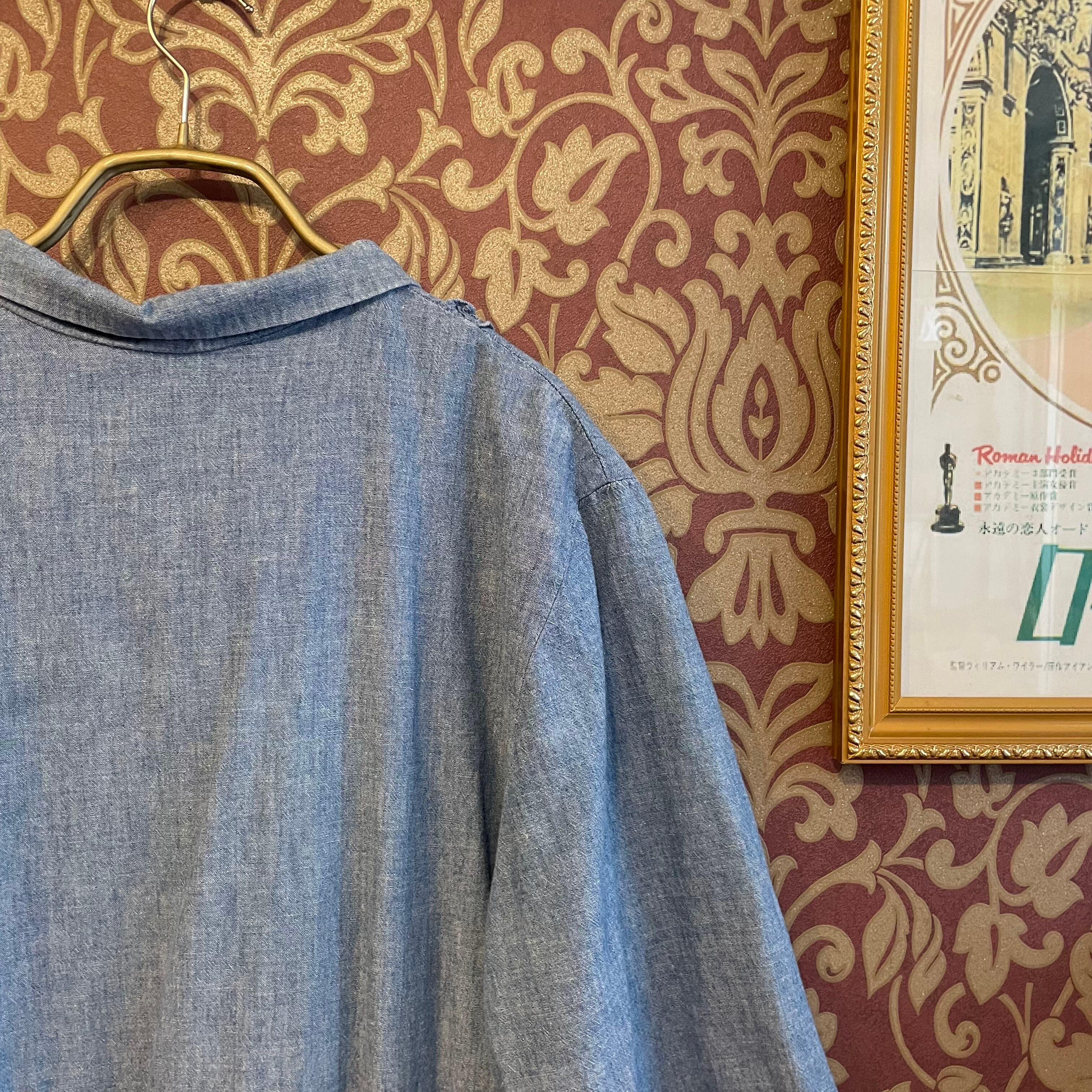 シャンブレー生地で作られた爽やかなデザインで丈が長めなのですっぽりと着ていただけます。