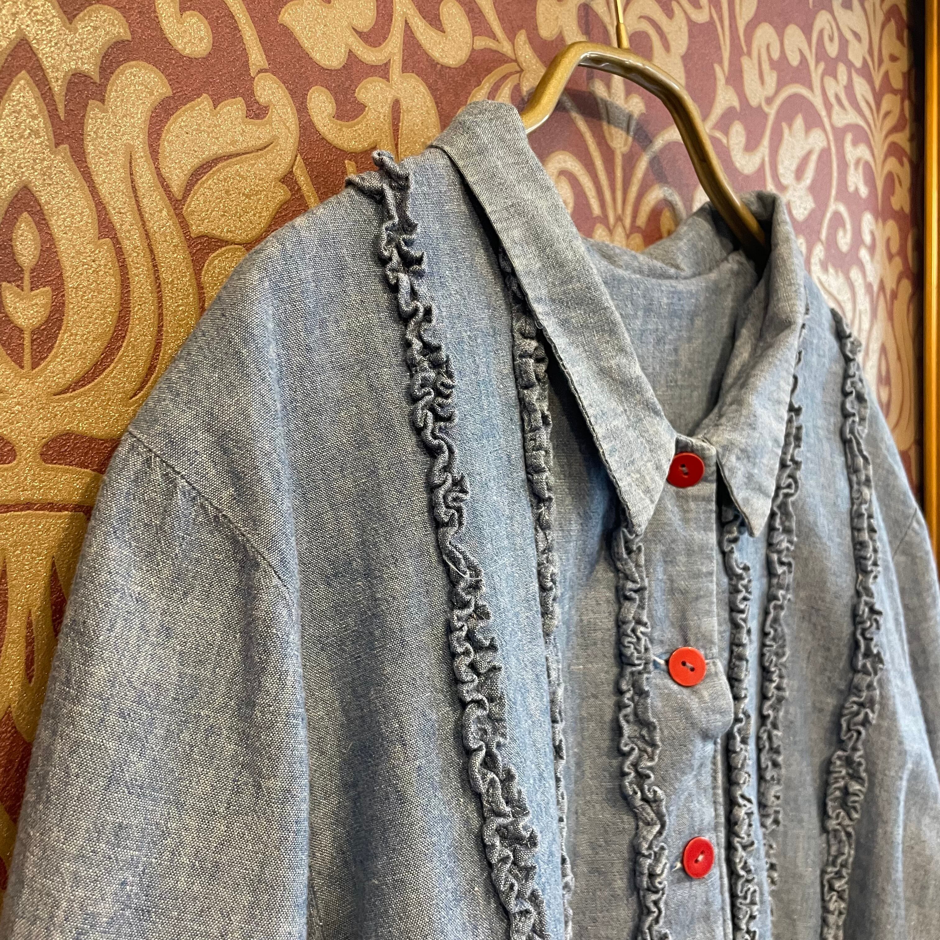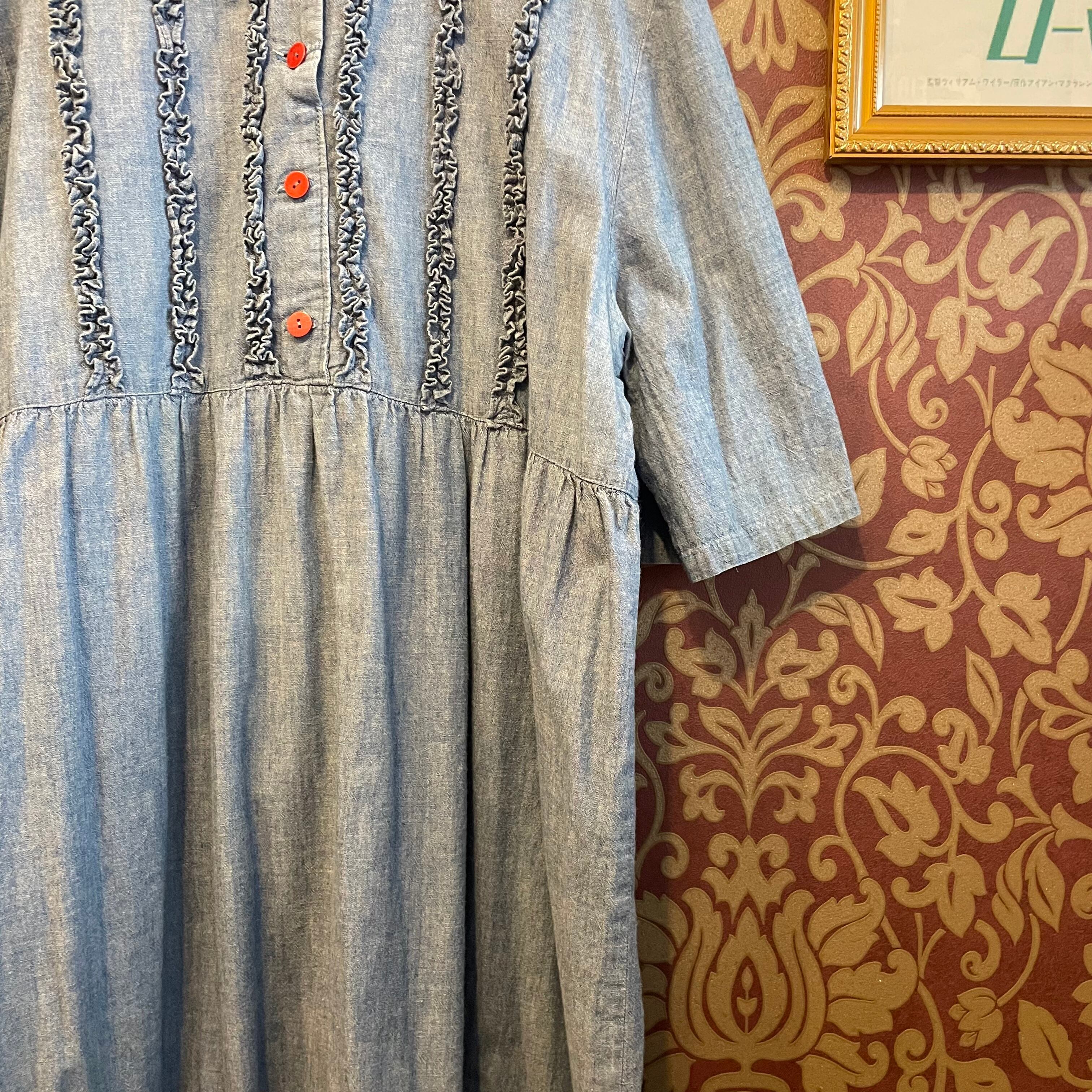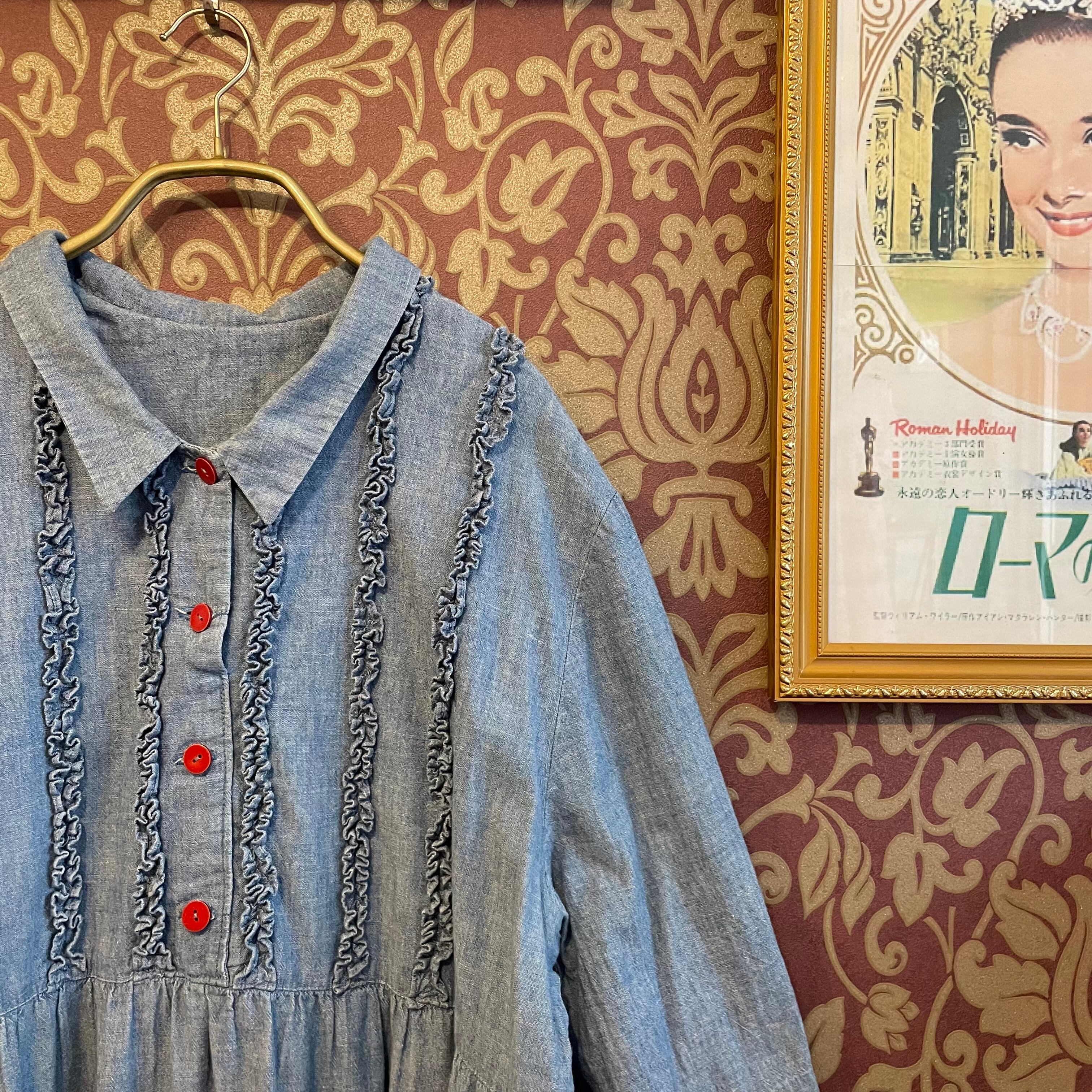 シャンブレー生地で作られた爽やかなデザインで丈が長めなのですっぽりと着ていただけます。