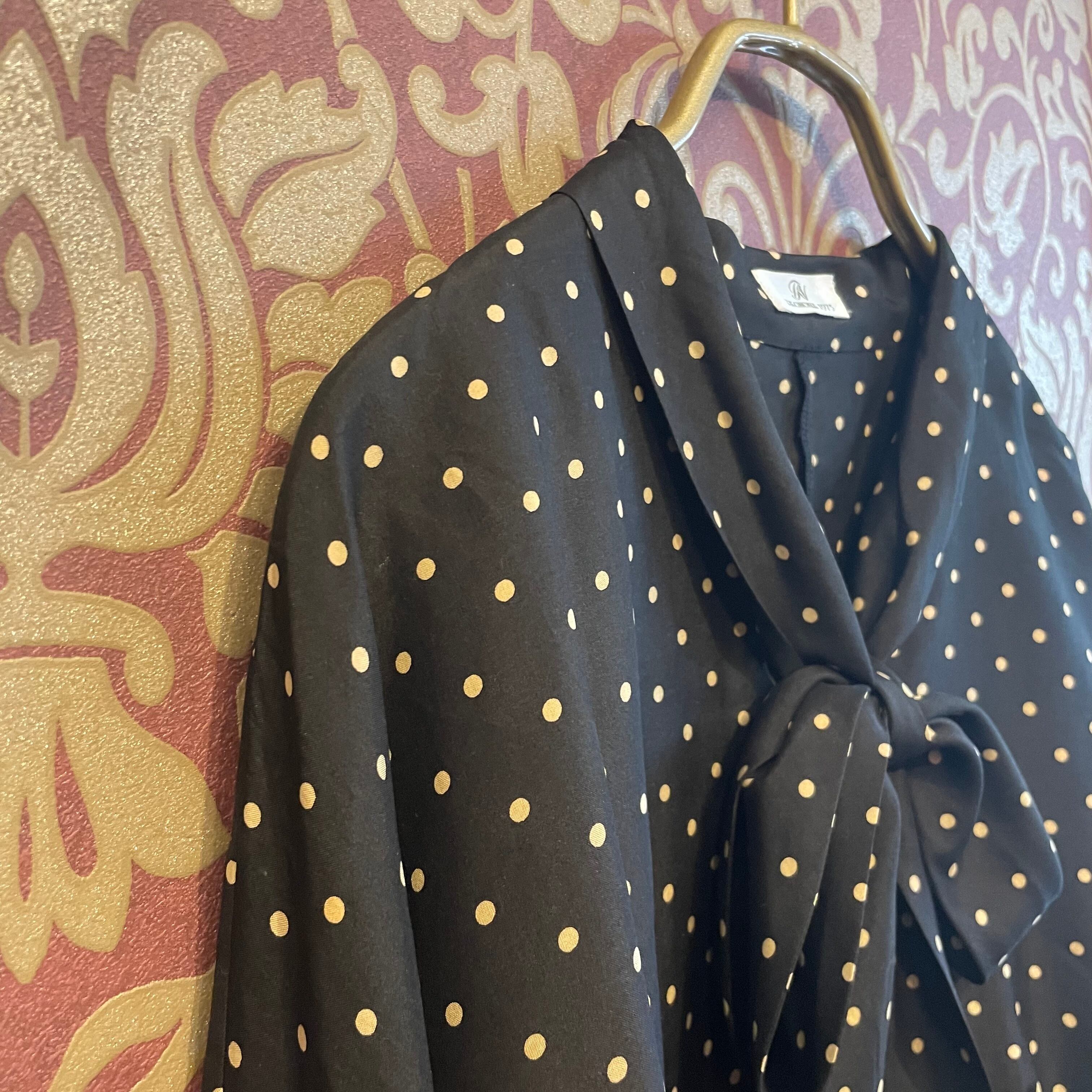 ボウタイが付いていて、ウエストは絞られているのでクラシカルな印象です。