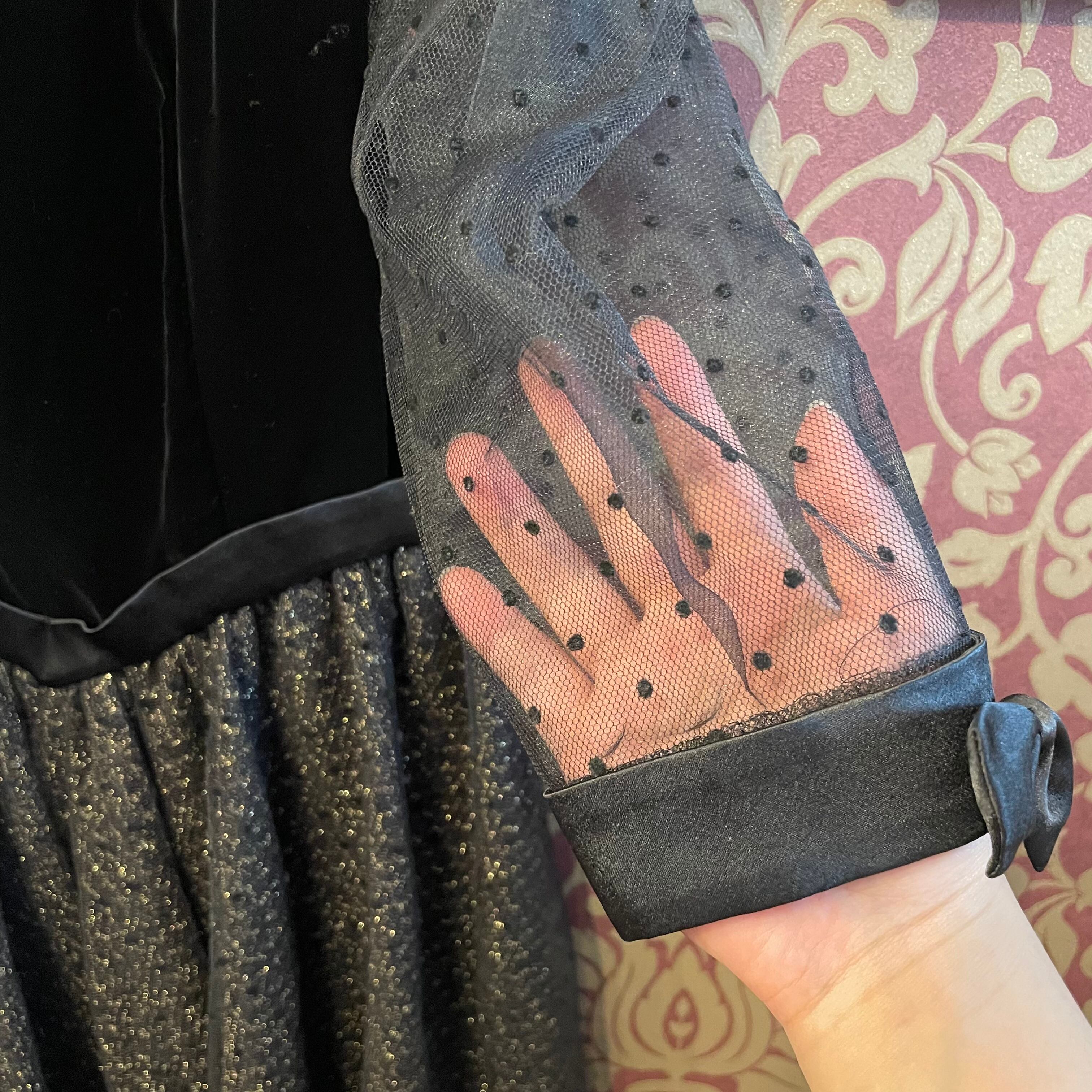 上身頃が厚手のベロアで、袖とスカートはチュールで作られています。