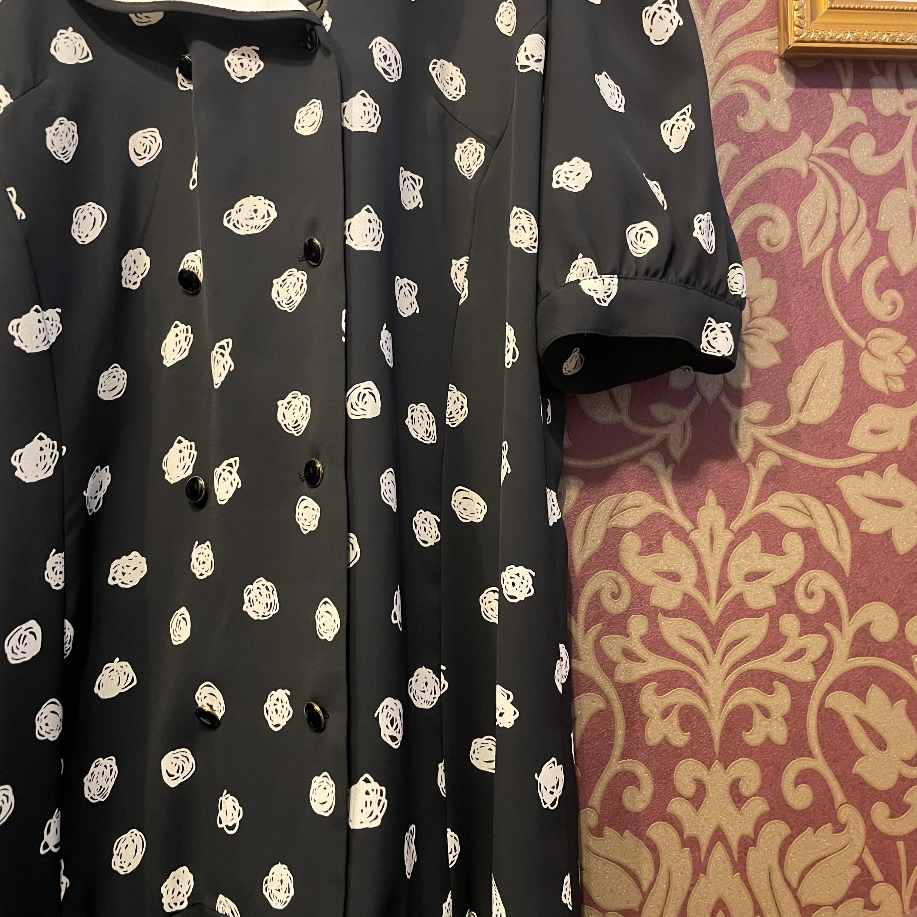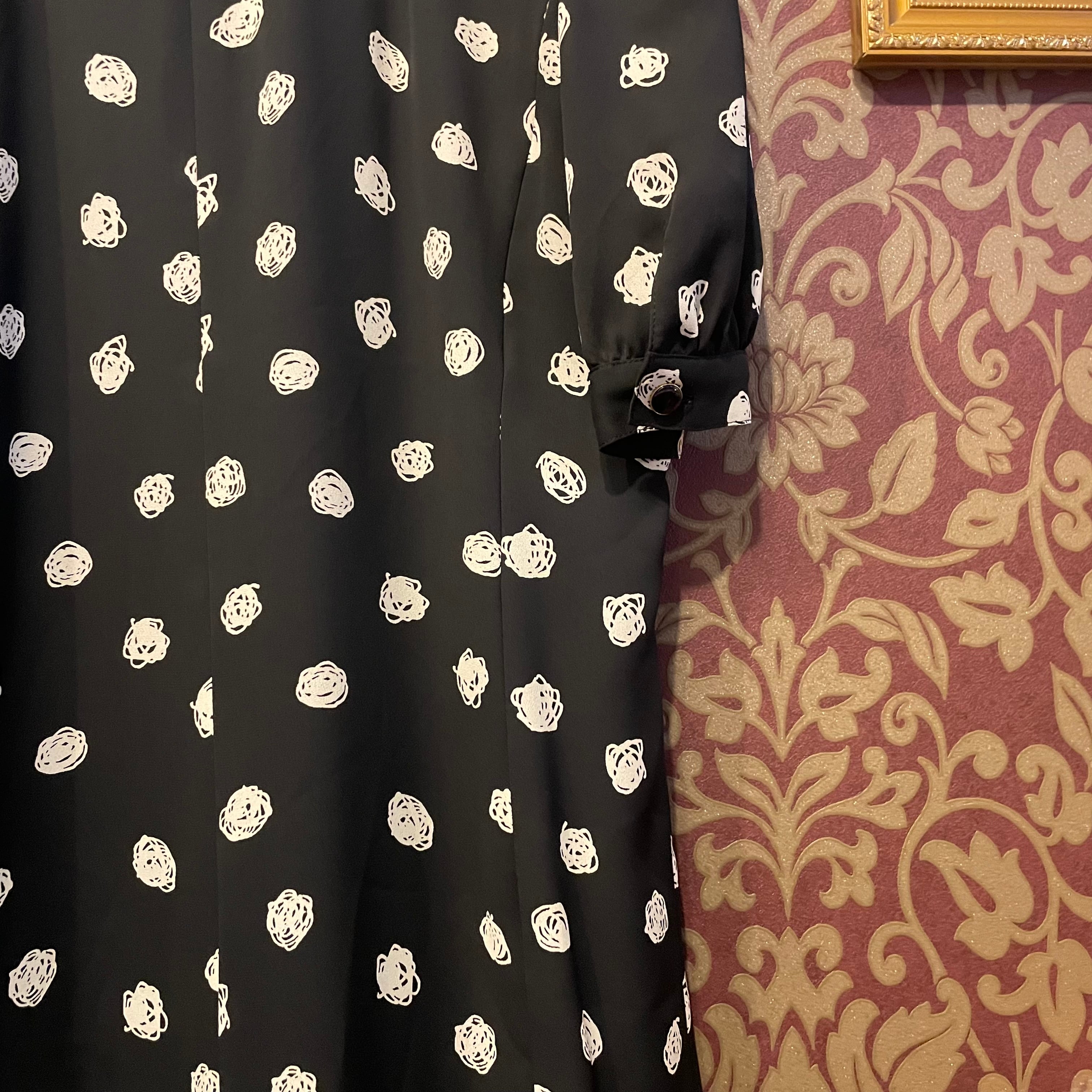黒地に白のドット柄のワンピースです。