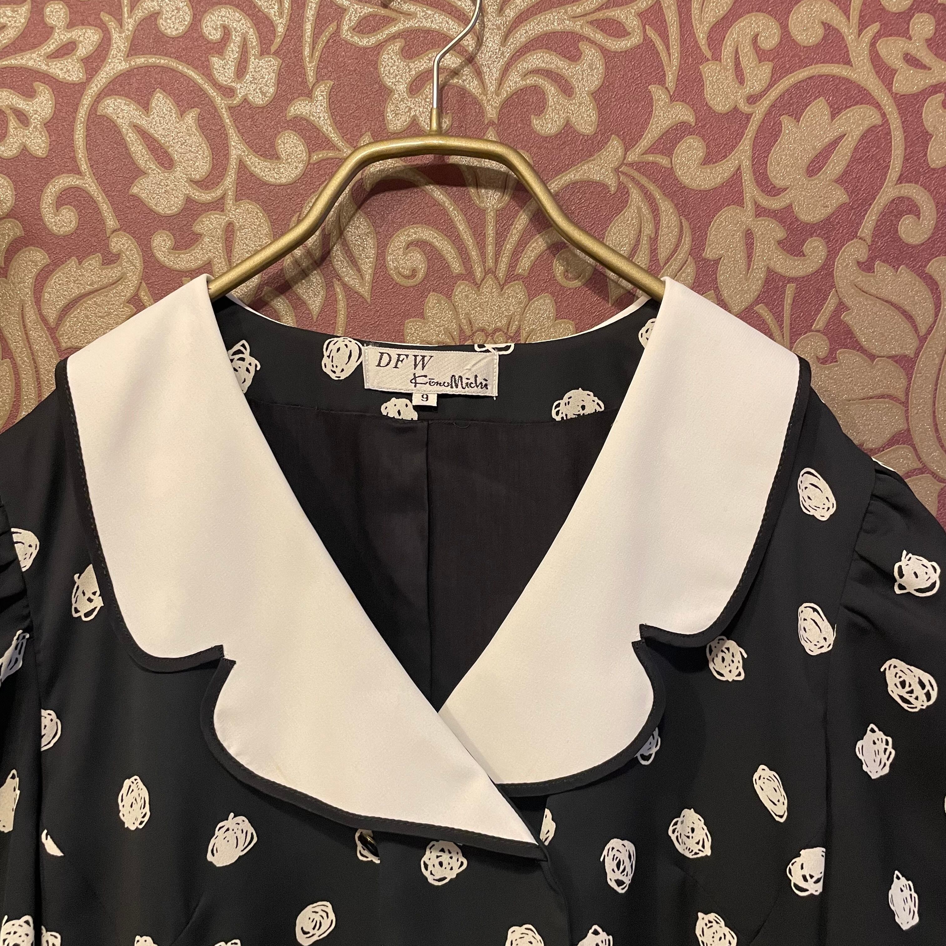 hand drawing dot white collar dress
