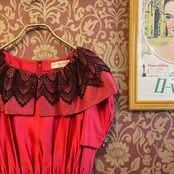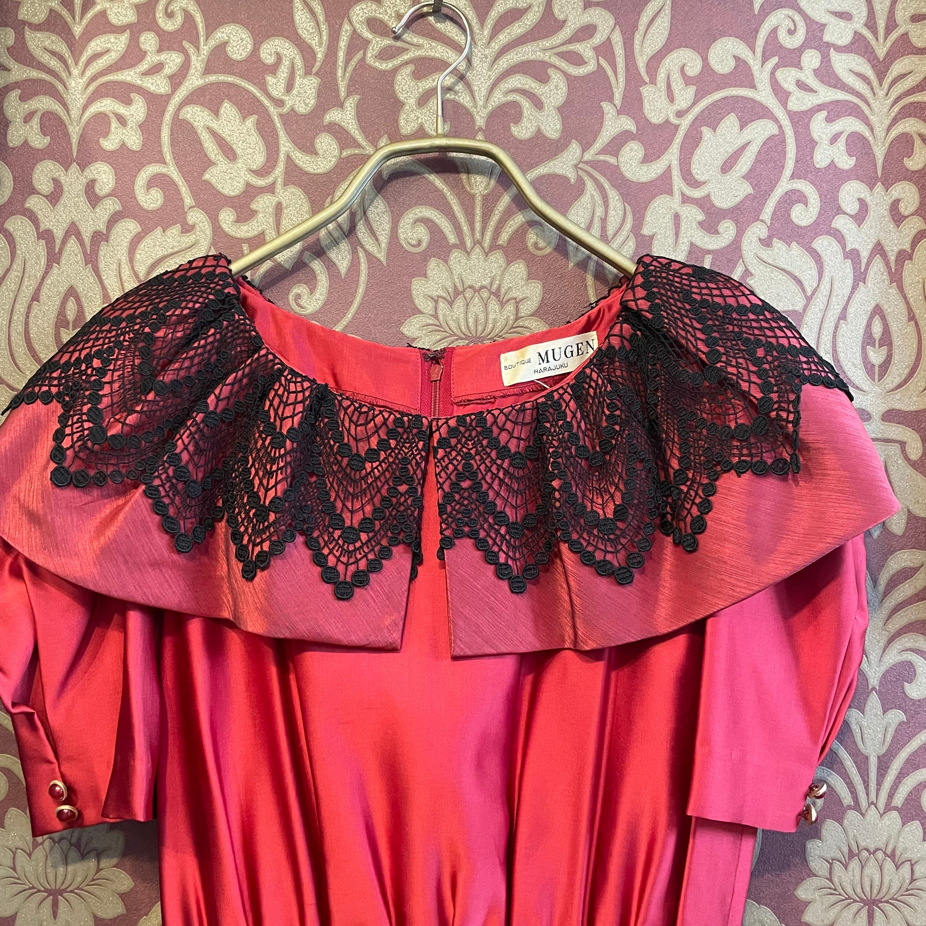 深い赤と黒の色合いが美しいヴィンテージワンピースです。