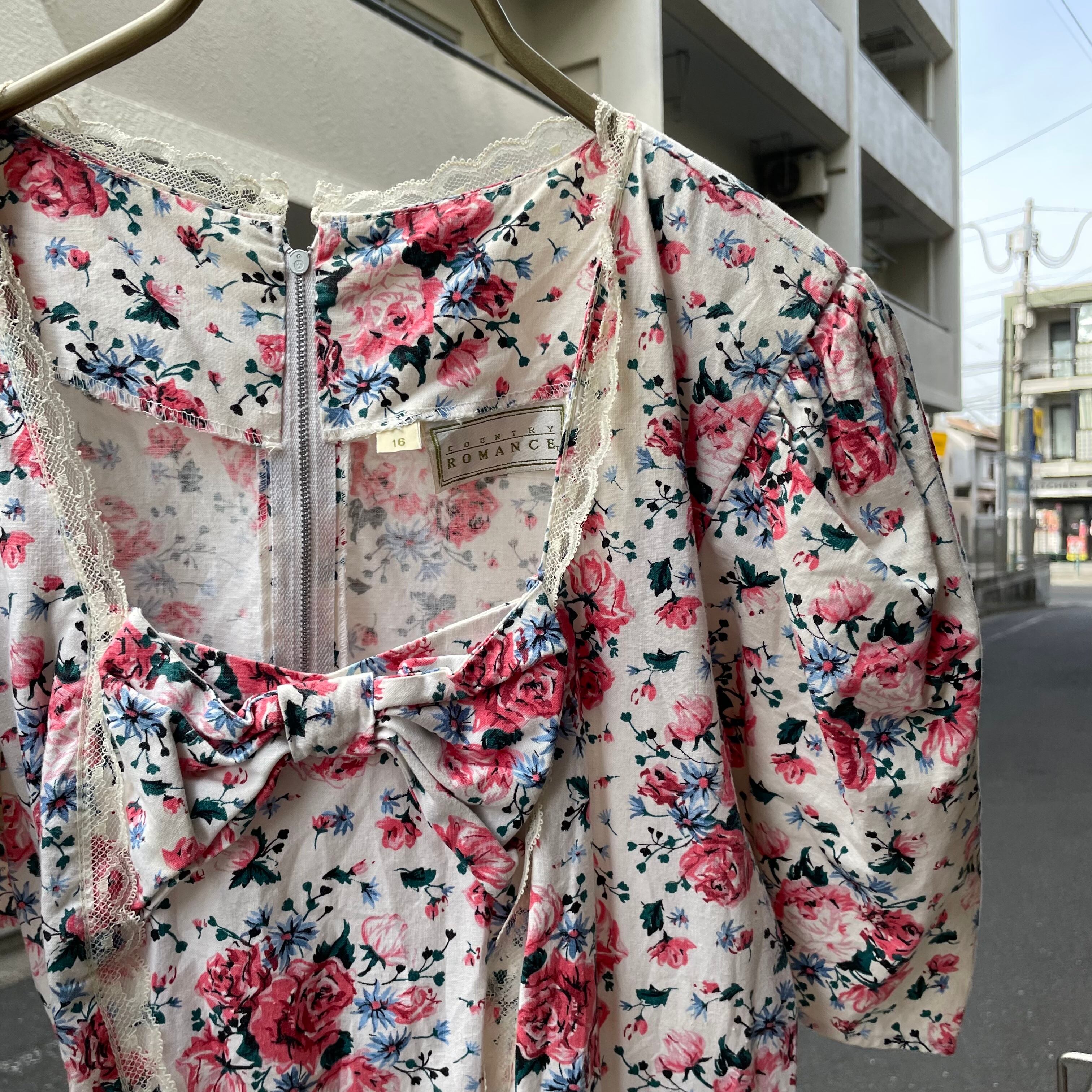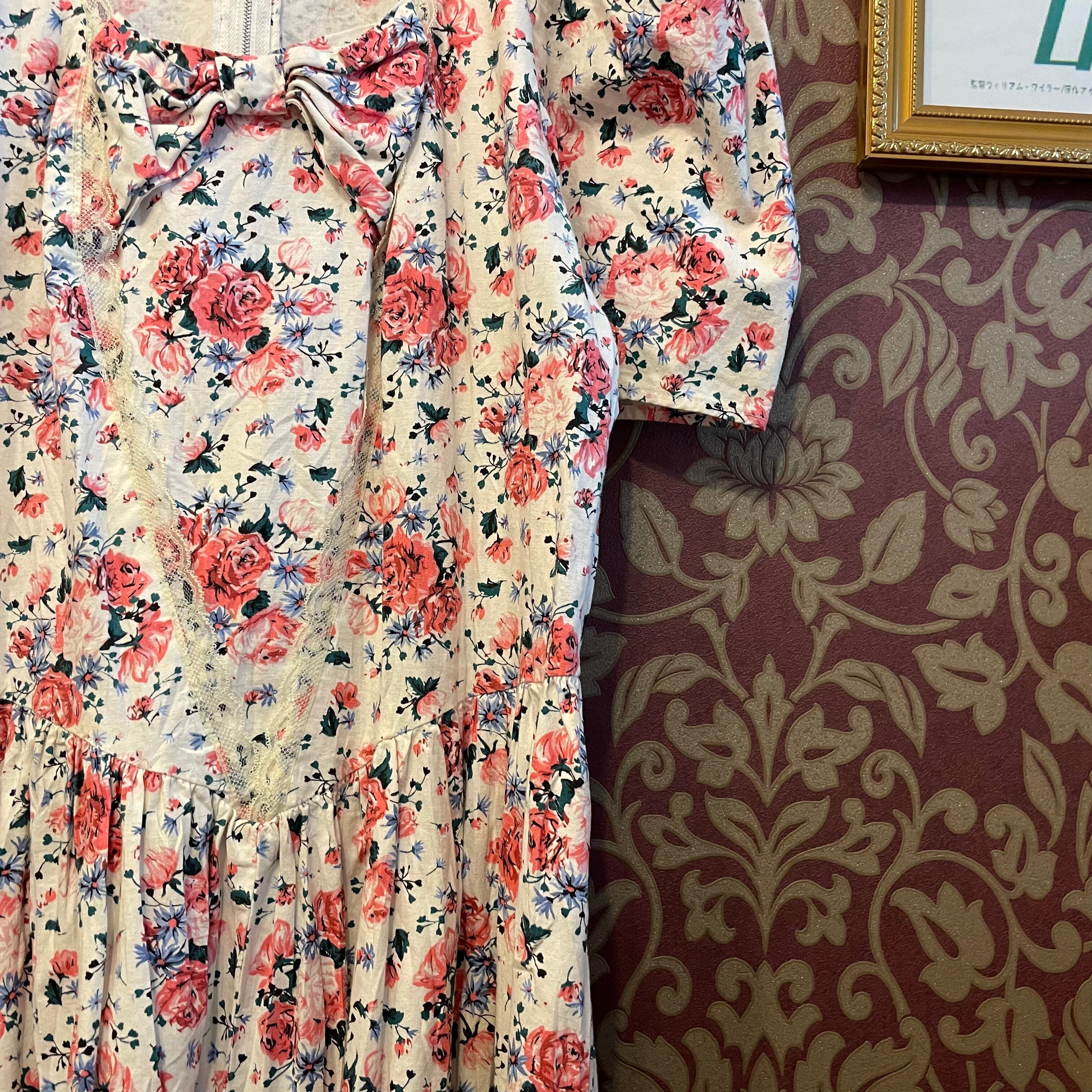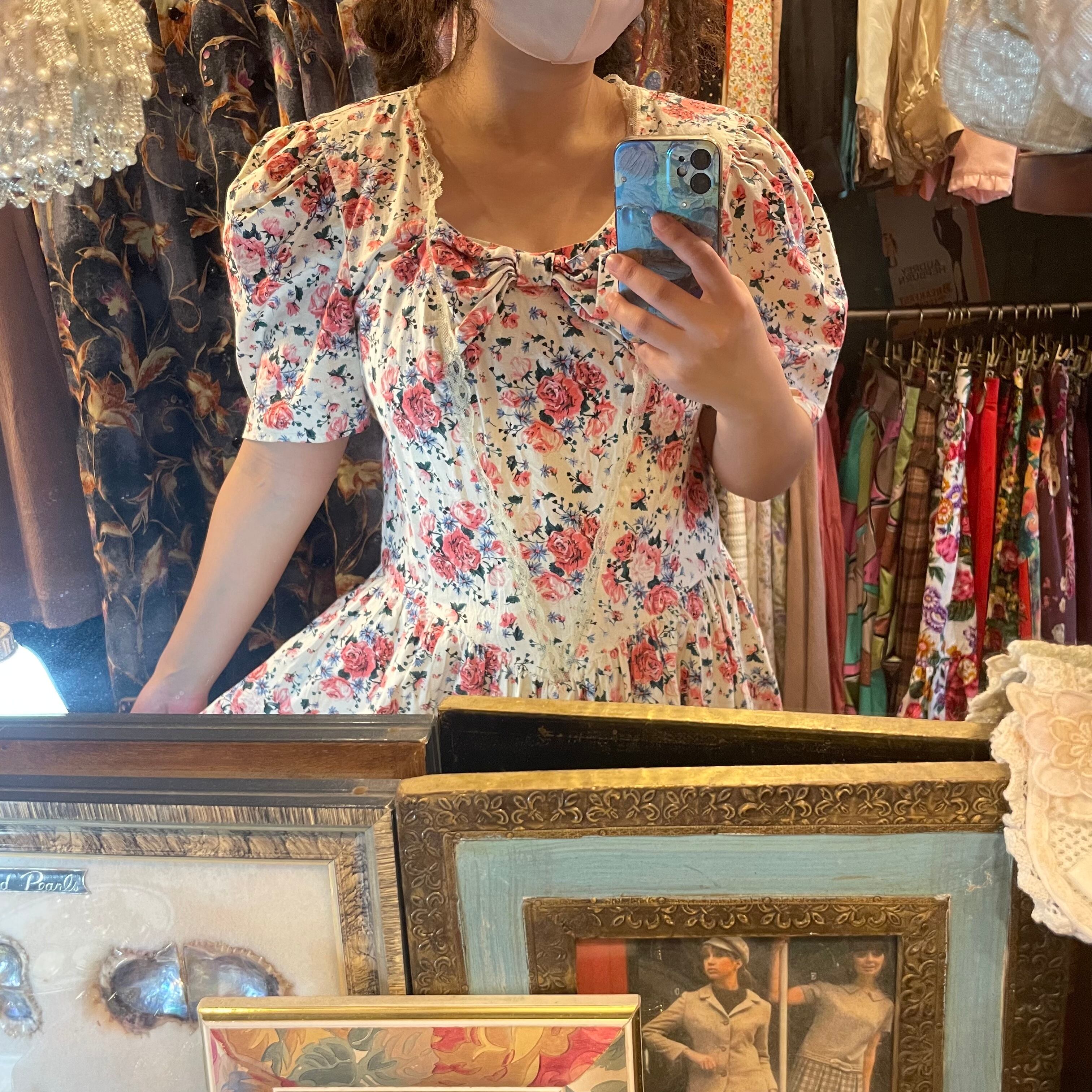 アメリカより輸入した白地にピンクのバラ柄のヴィンテージワンピースです。