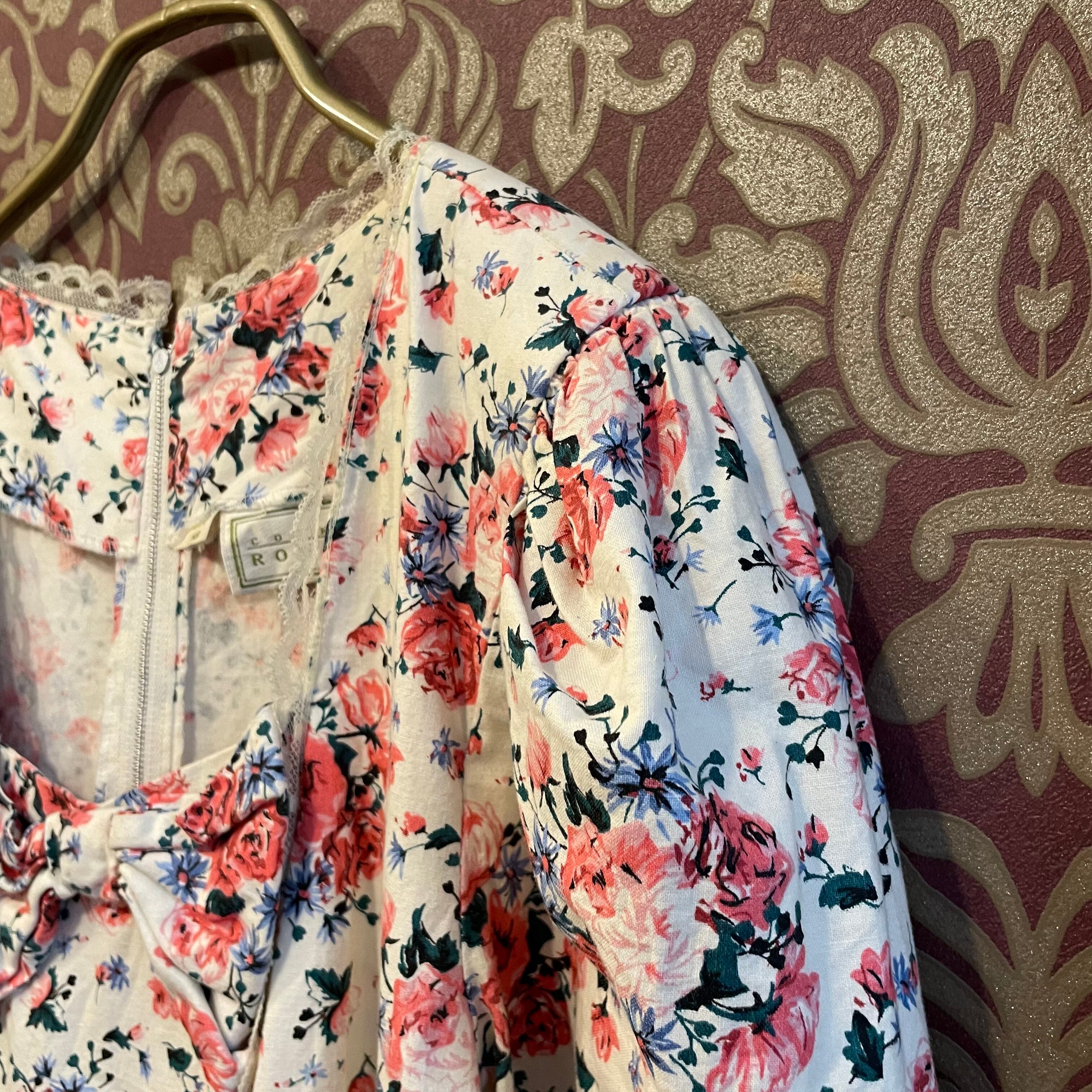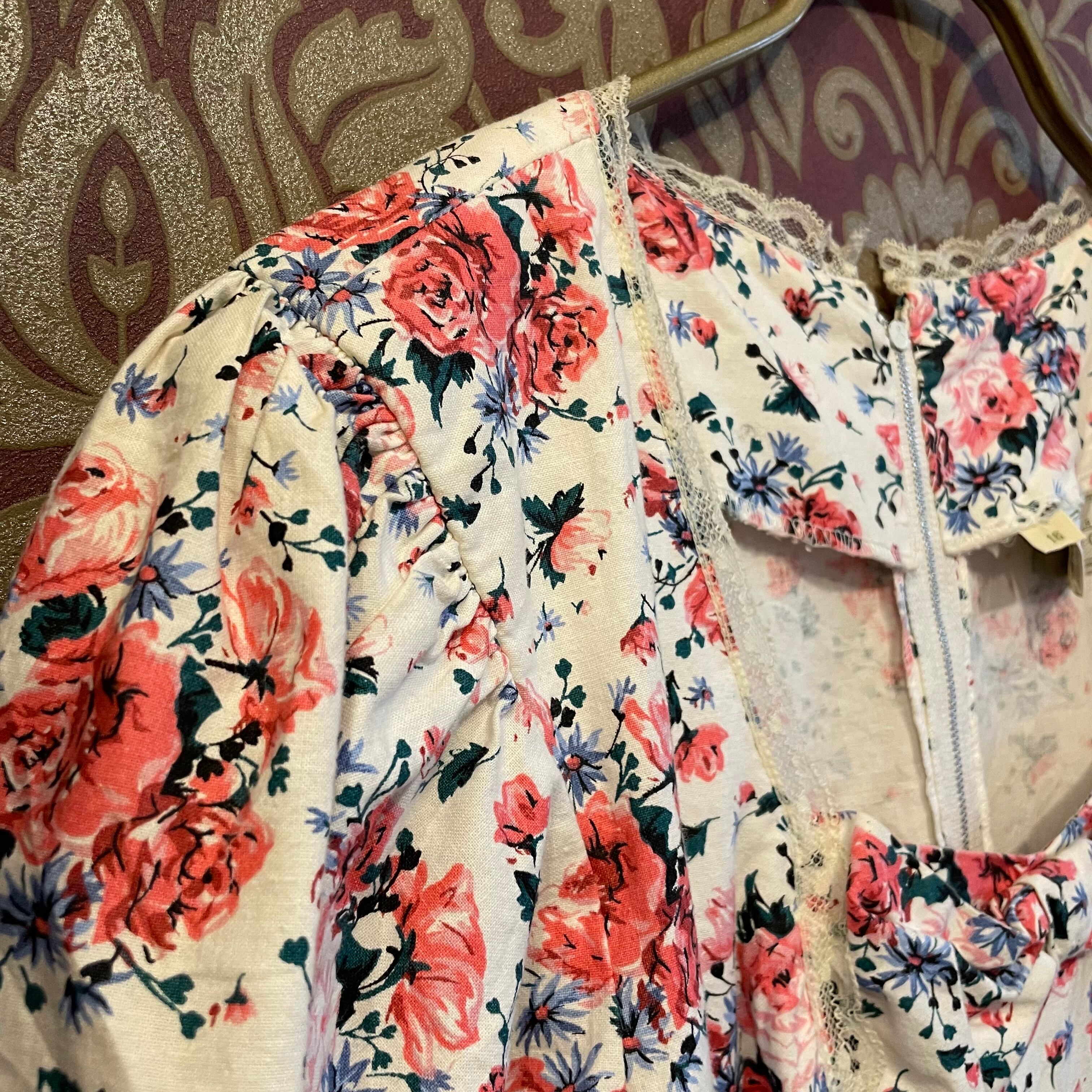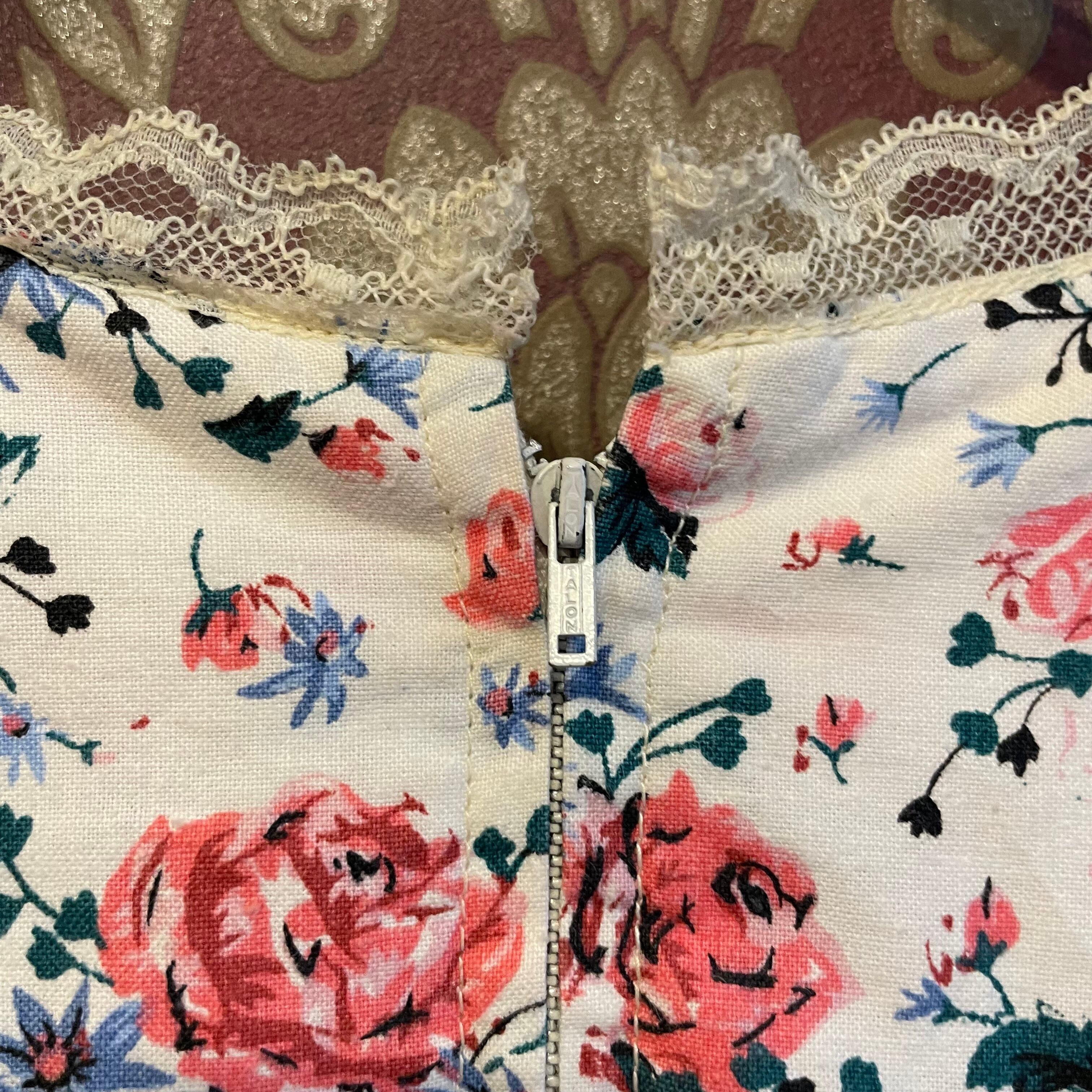 アメリカより輸入した白地にピンクのバラ柄のヴィンテージワンピースです。