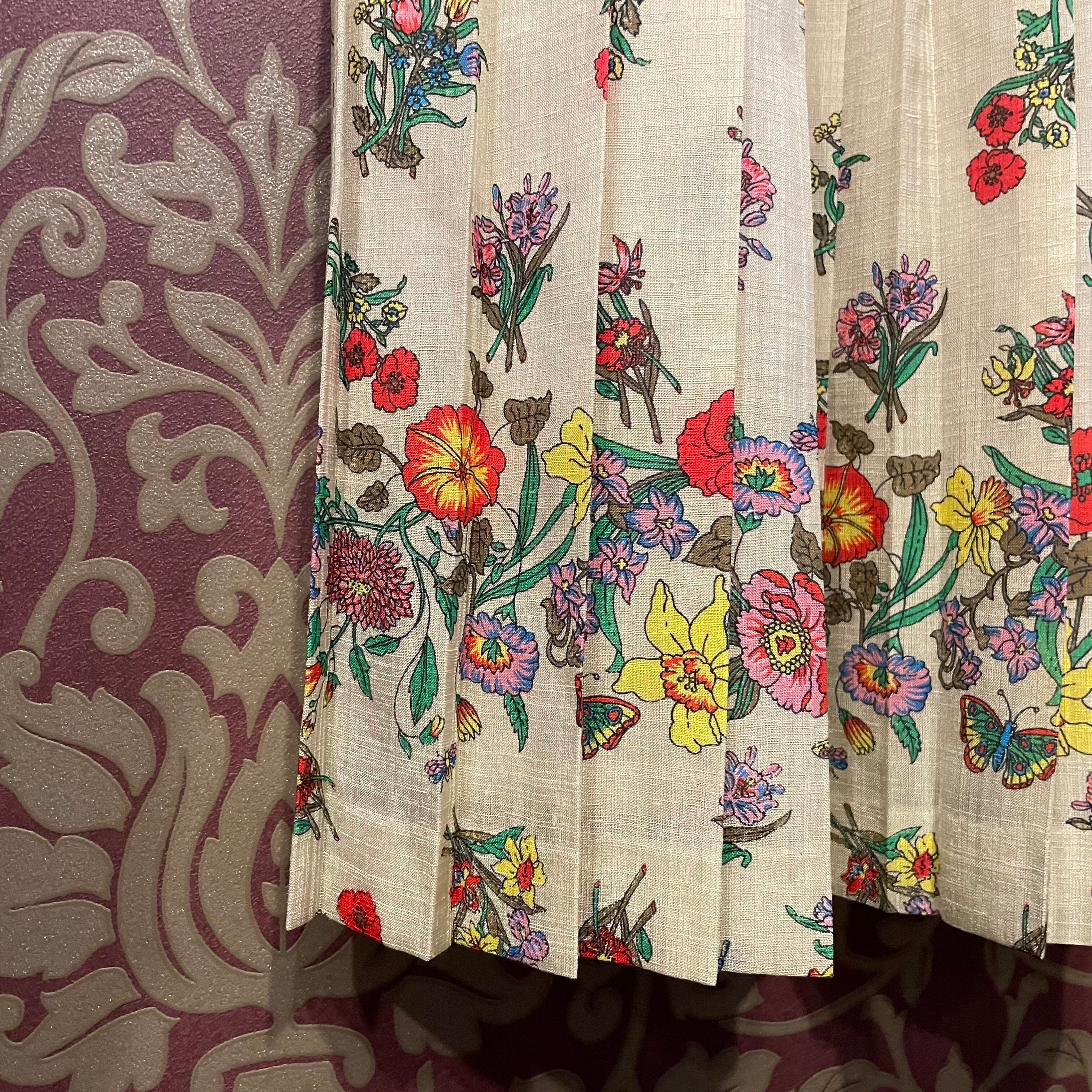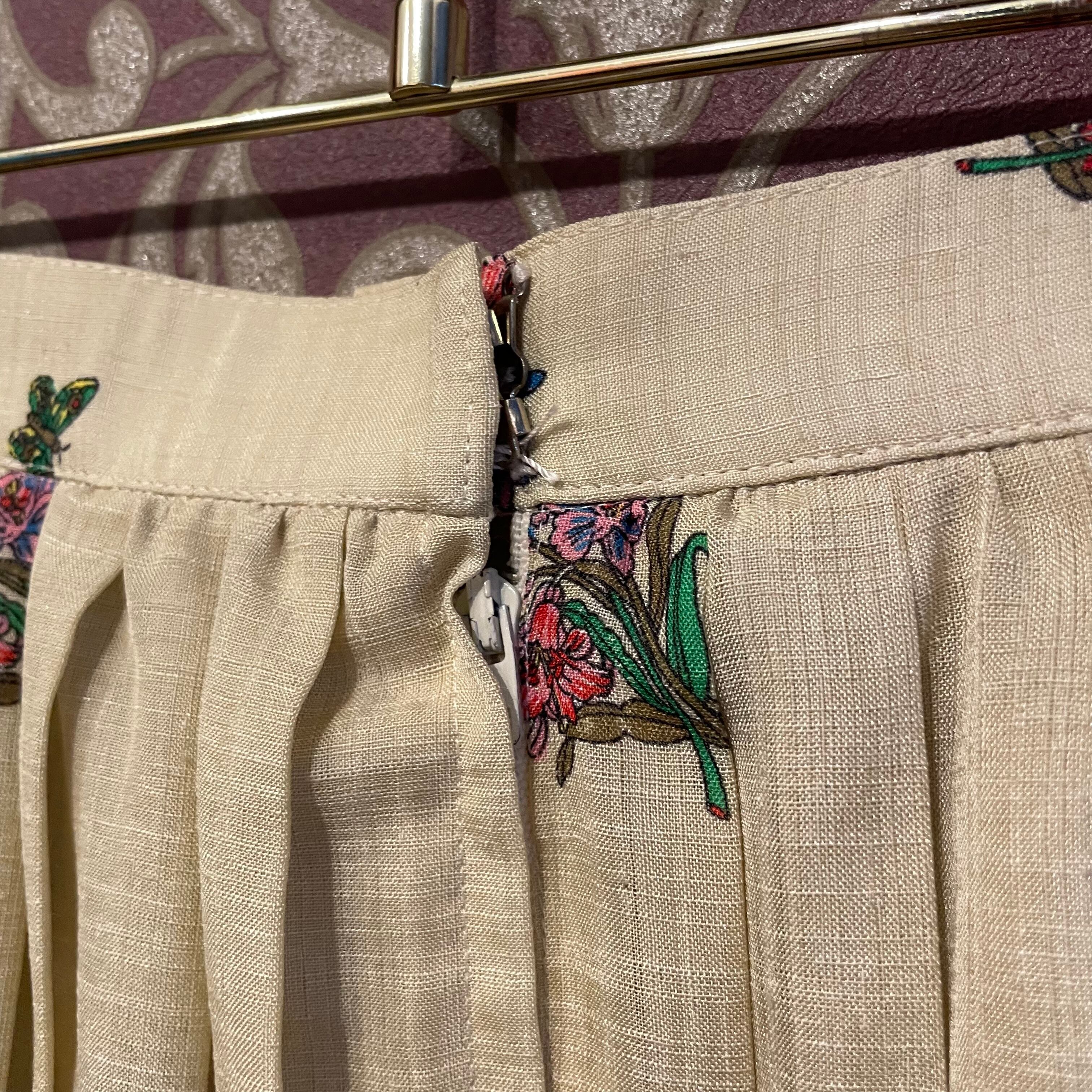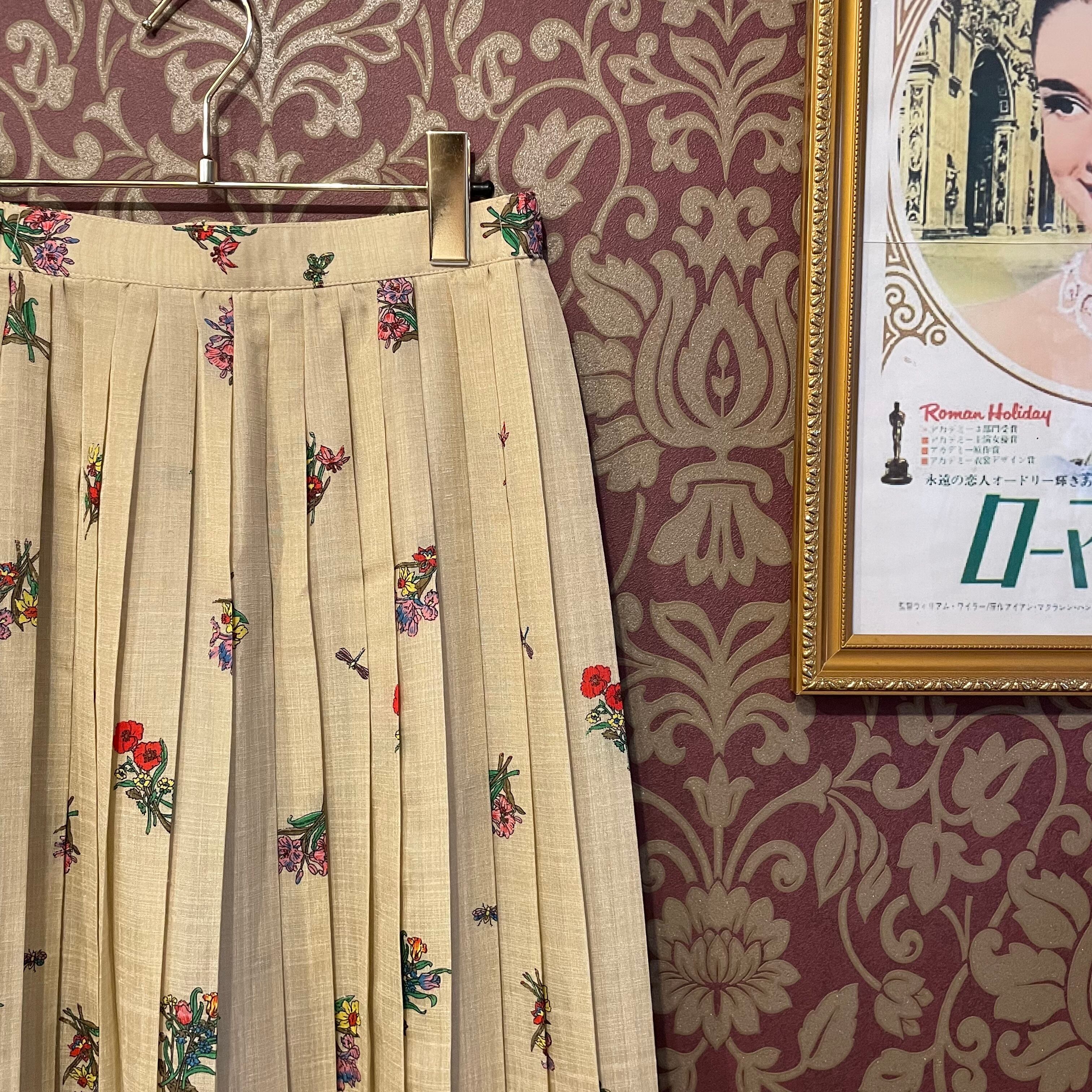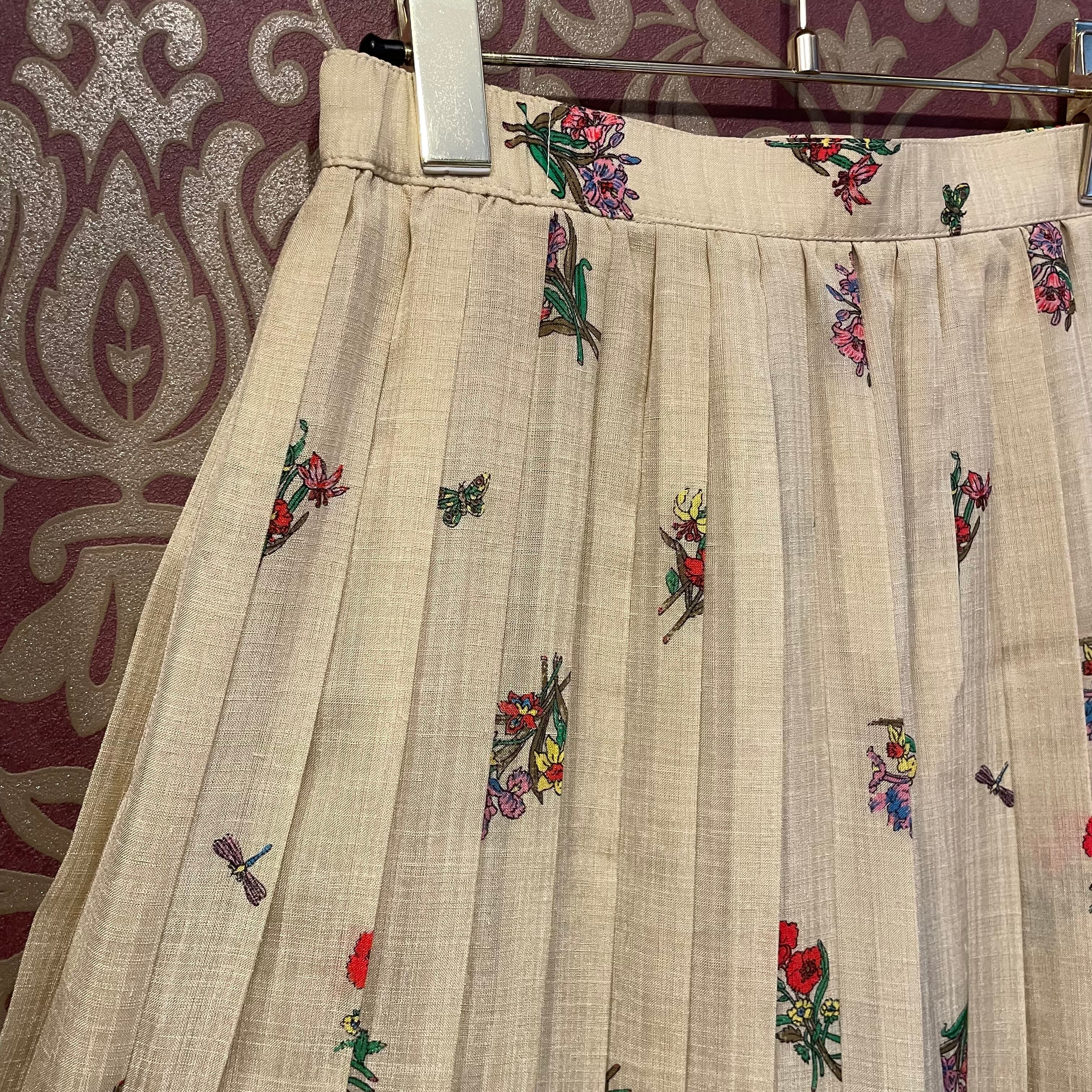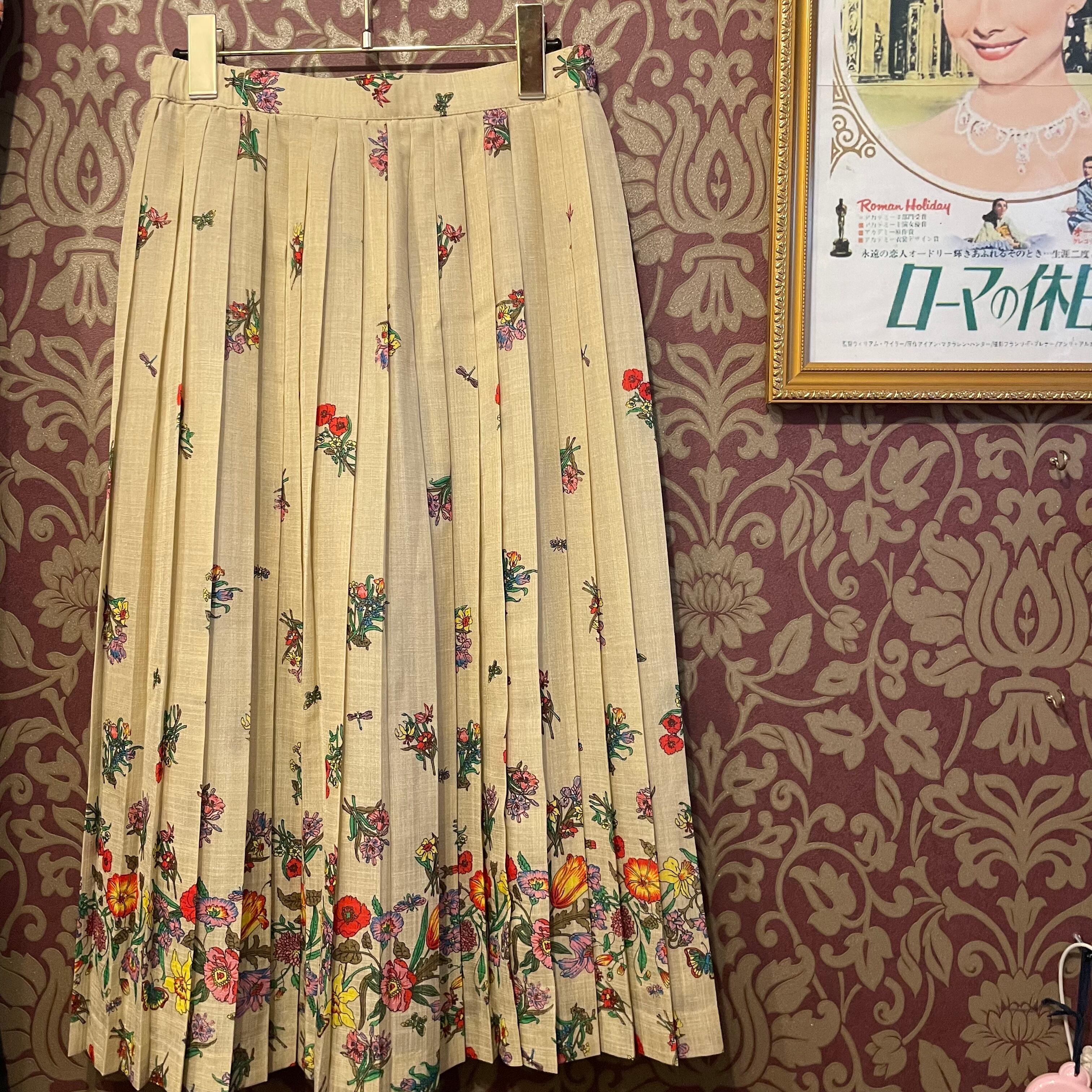 ベージュに蝶々と花柄のヴィンテージスカートです。