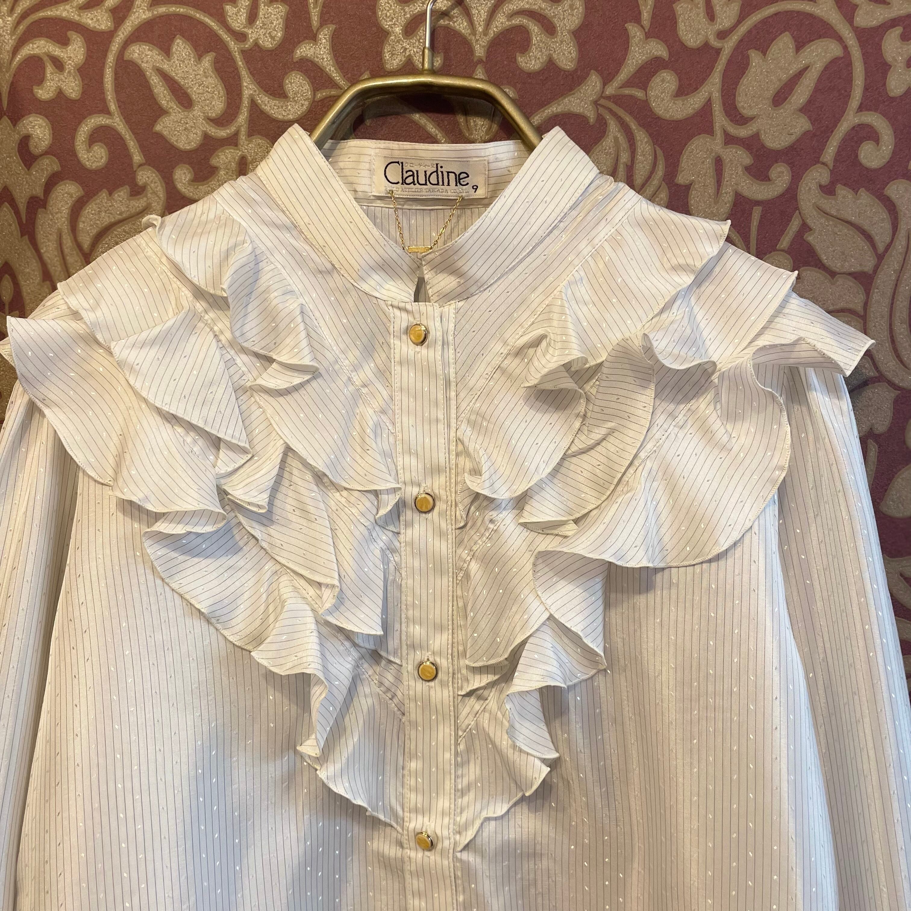 白地にピンストライプ柄のヴィンテージブラウスです。
