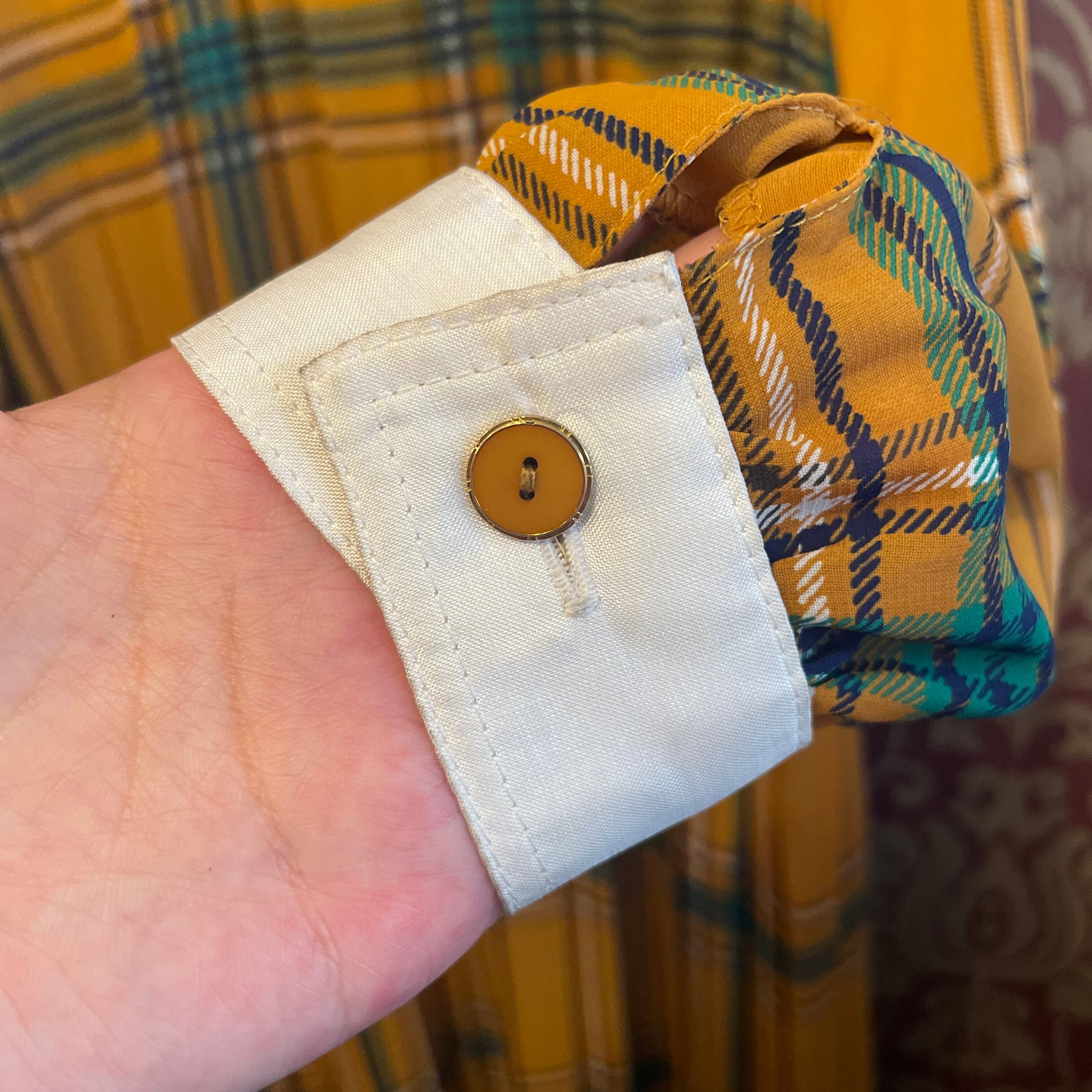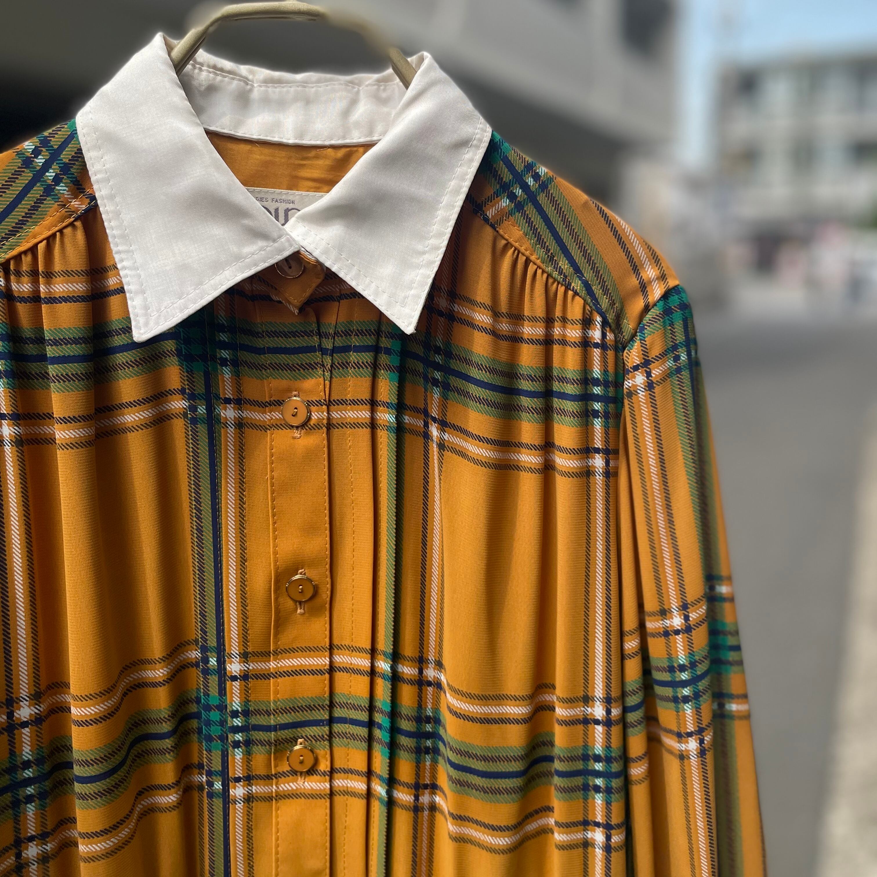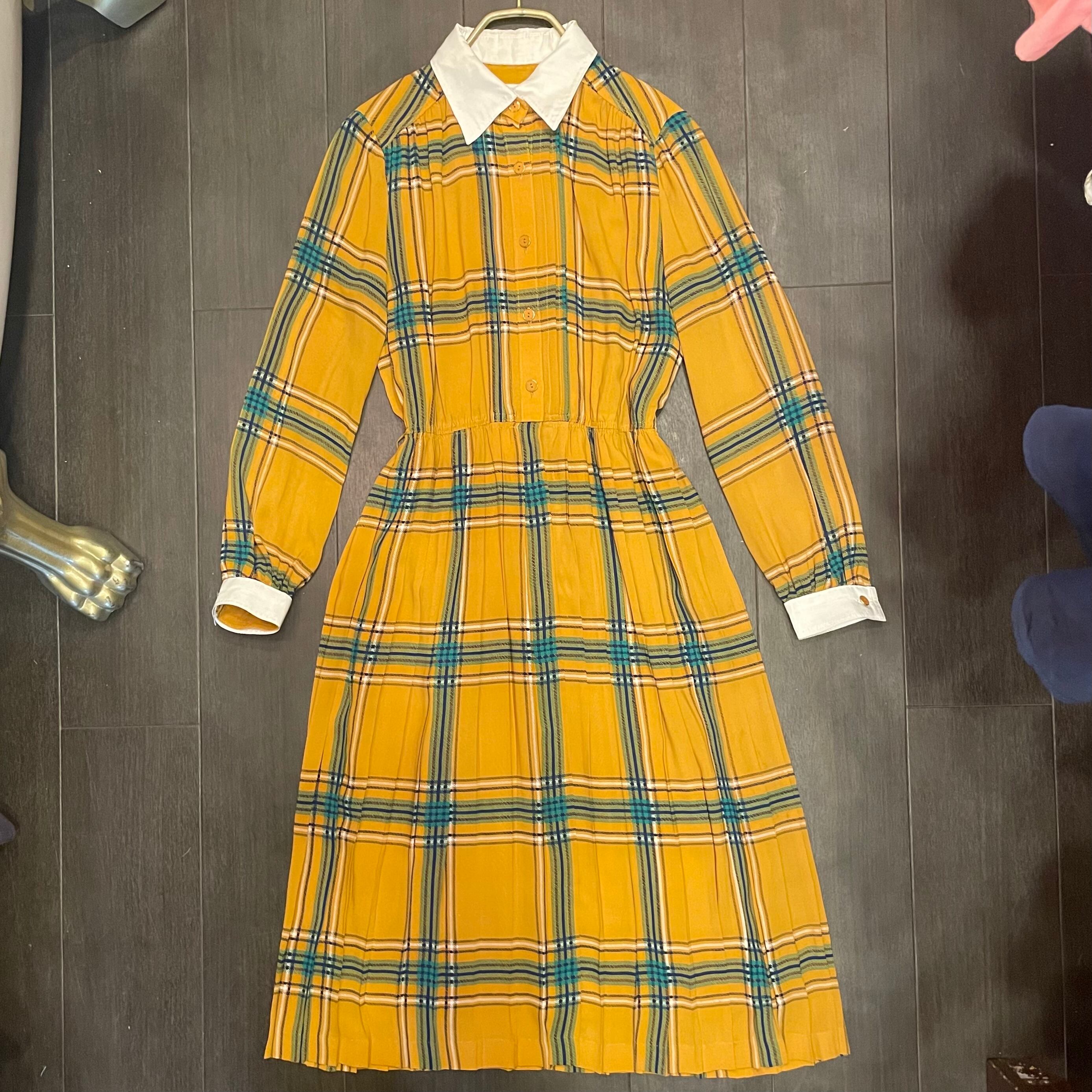 山吹色と緑のチェック柄のレトロなワンピースです。