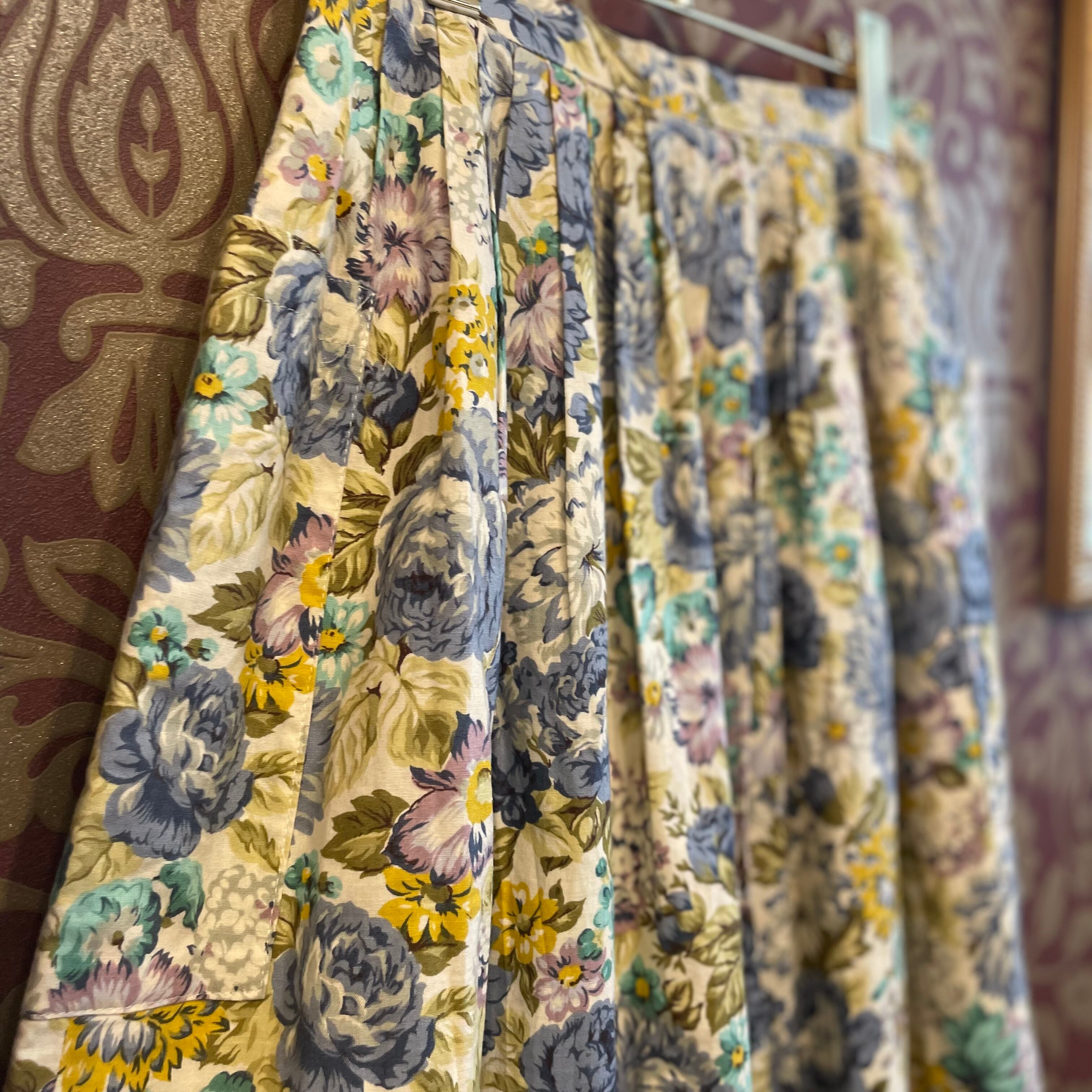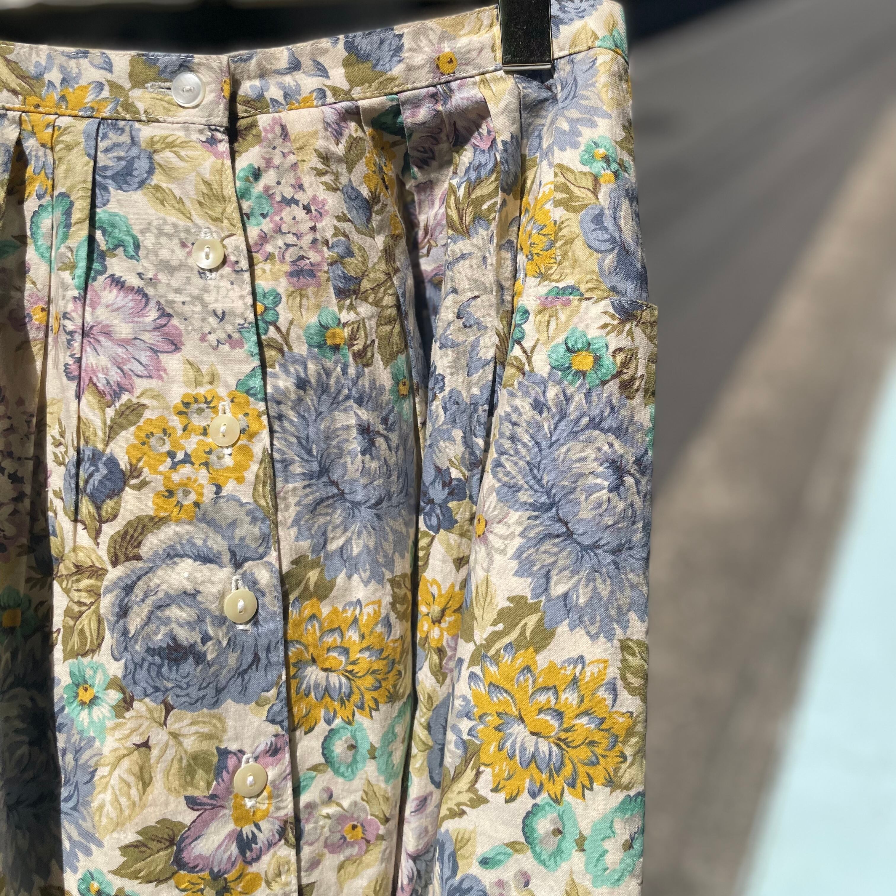 青を基調とした儚い配色の花柄が美しいコットンのスカートです。