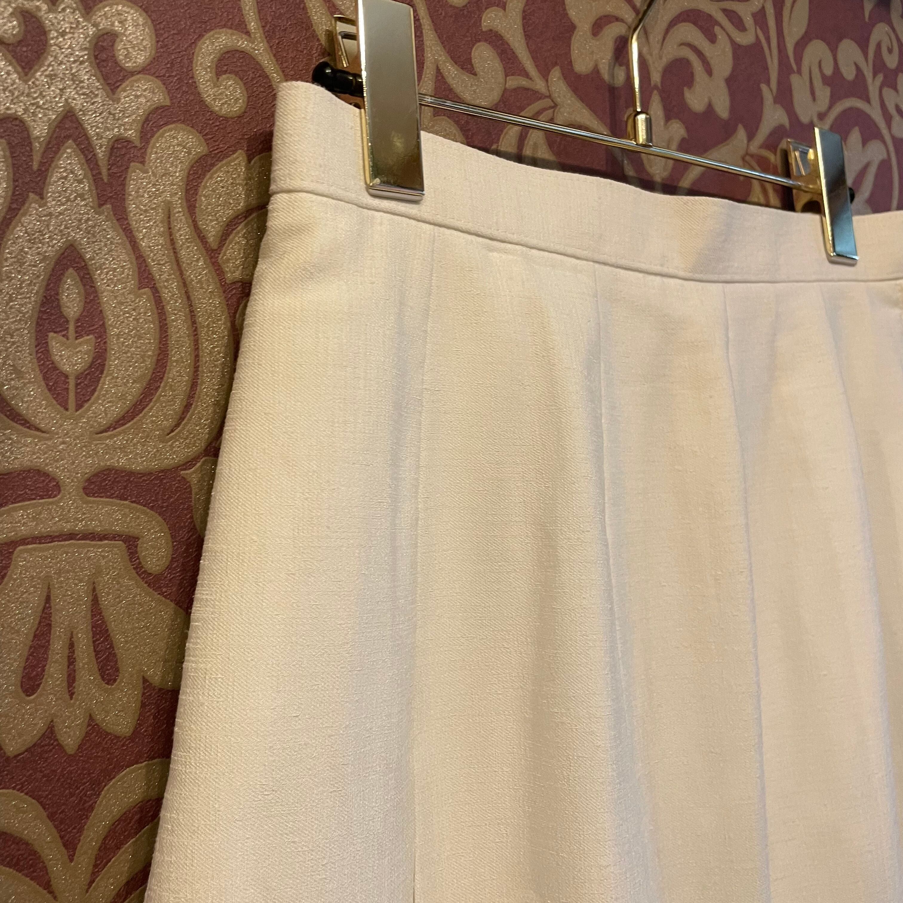 とても美しい法制のボックスプリーツで、裾には紺のバイアステープが付いていてマリン感のあるデザインです。