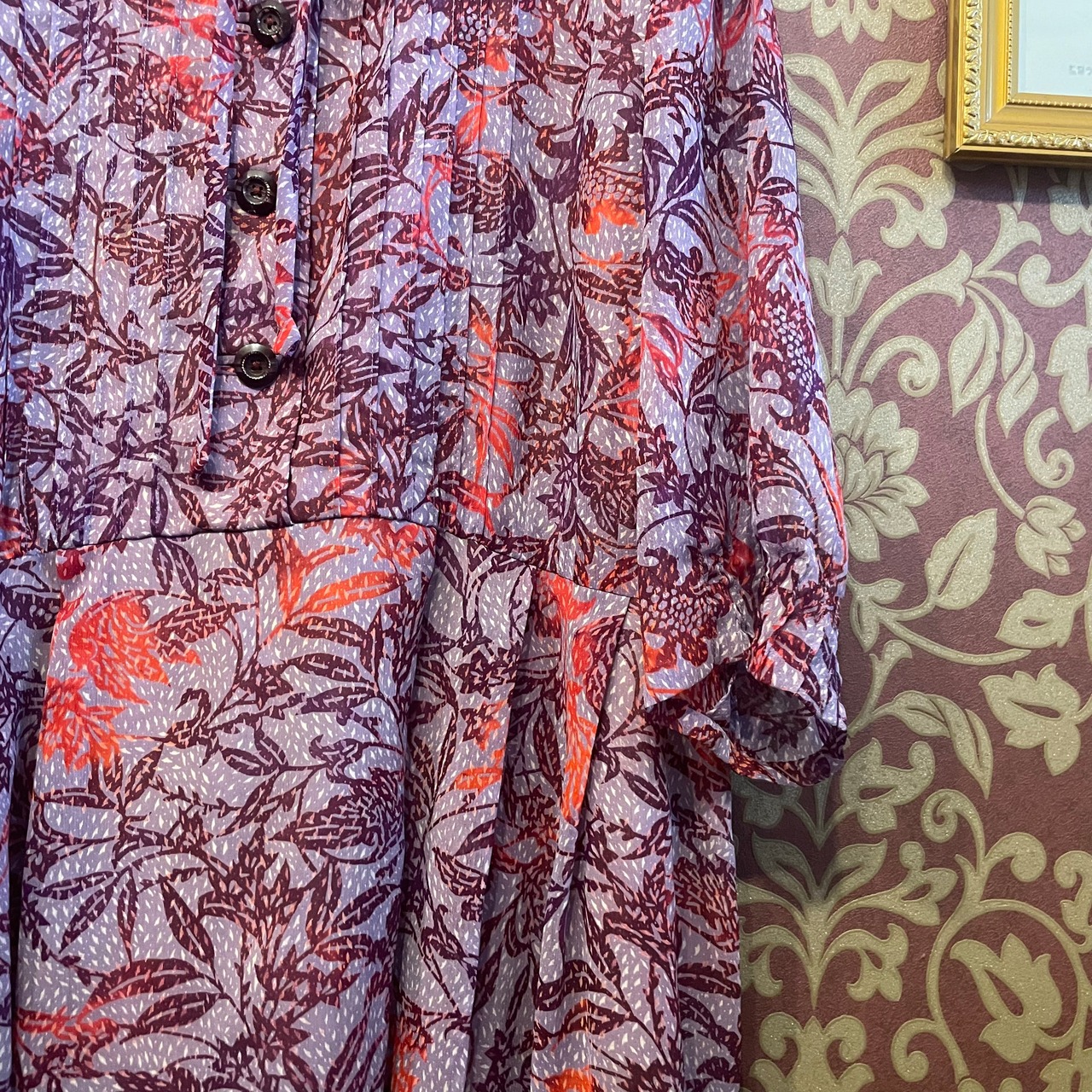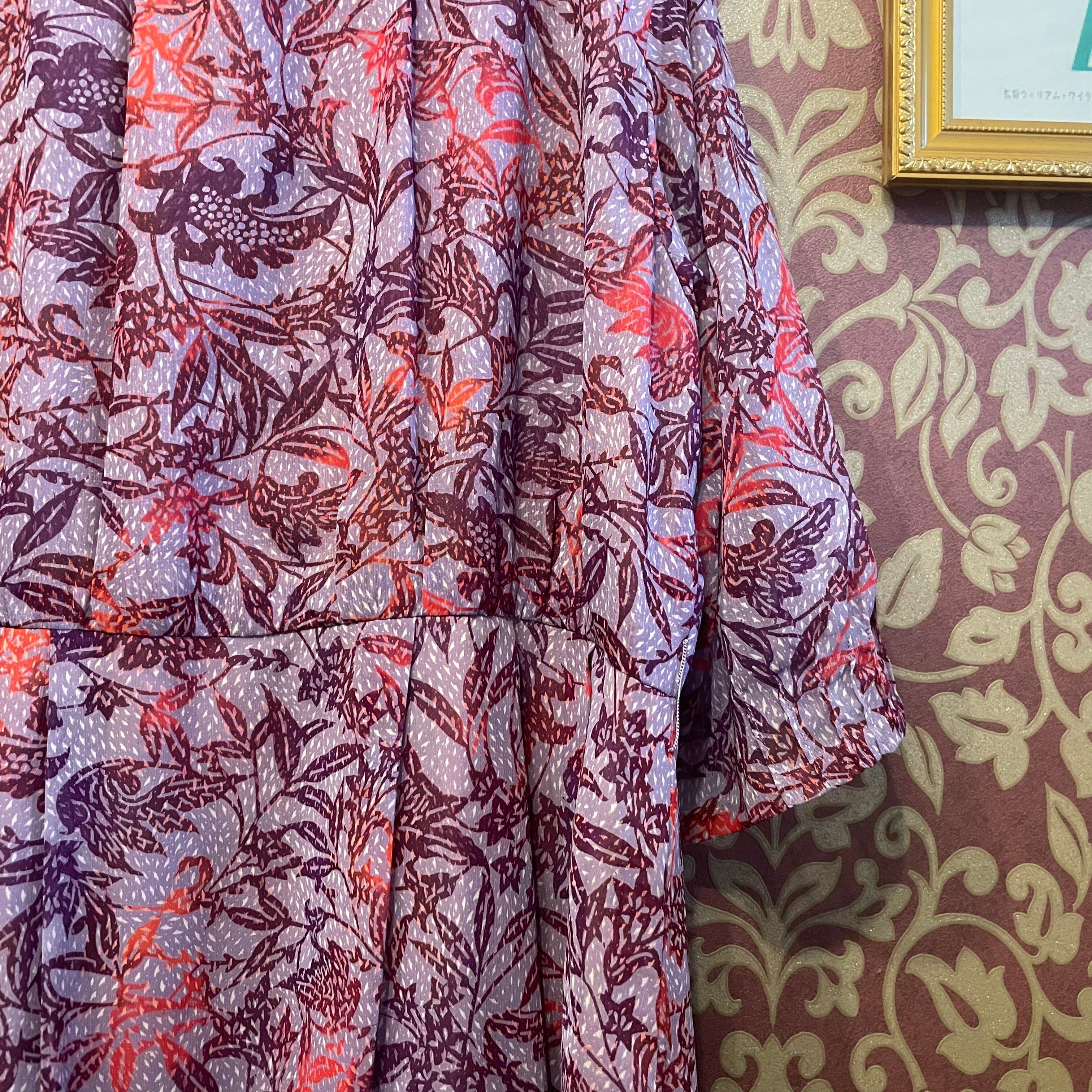 赤茶色から紫のグラデーションで、植物をモチーフにしている柄が独特で個性的なデザインです。