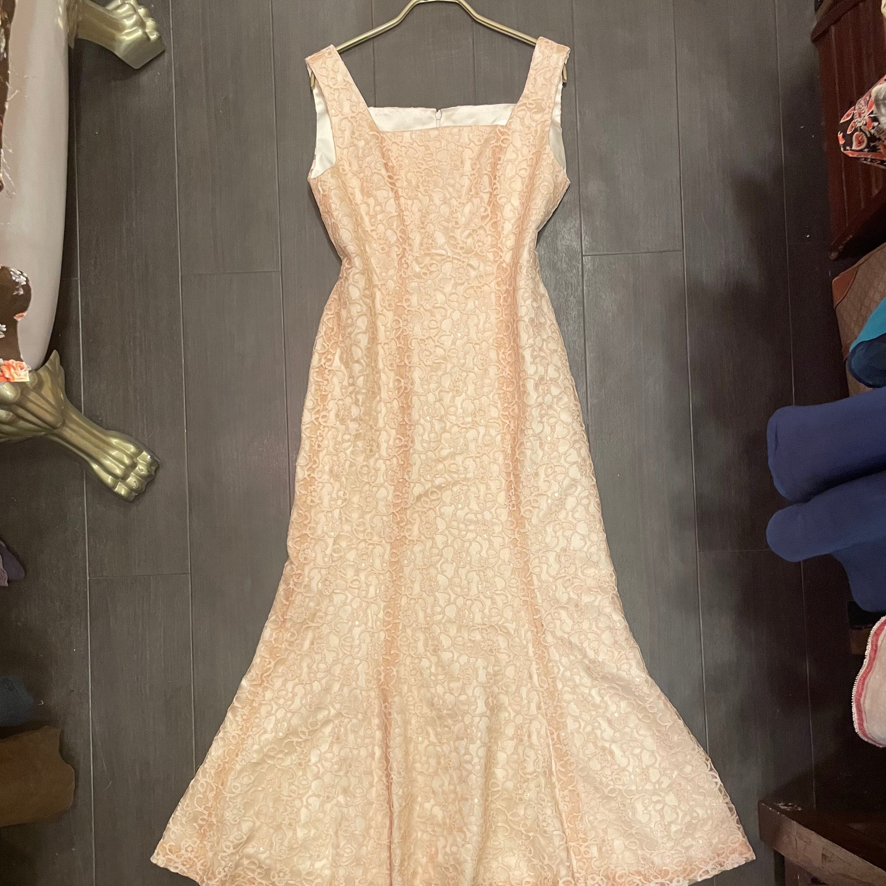 ライトベージュ色のレースドレスです。