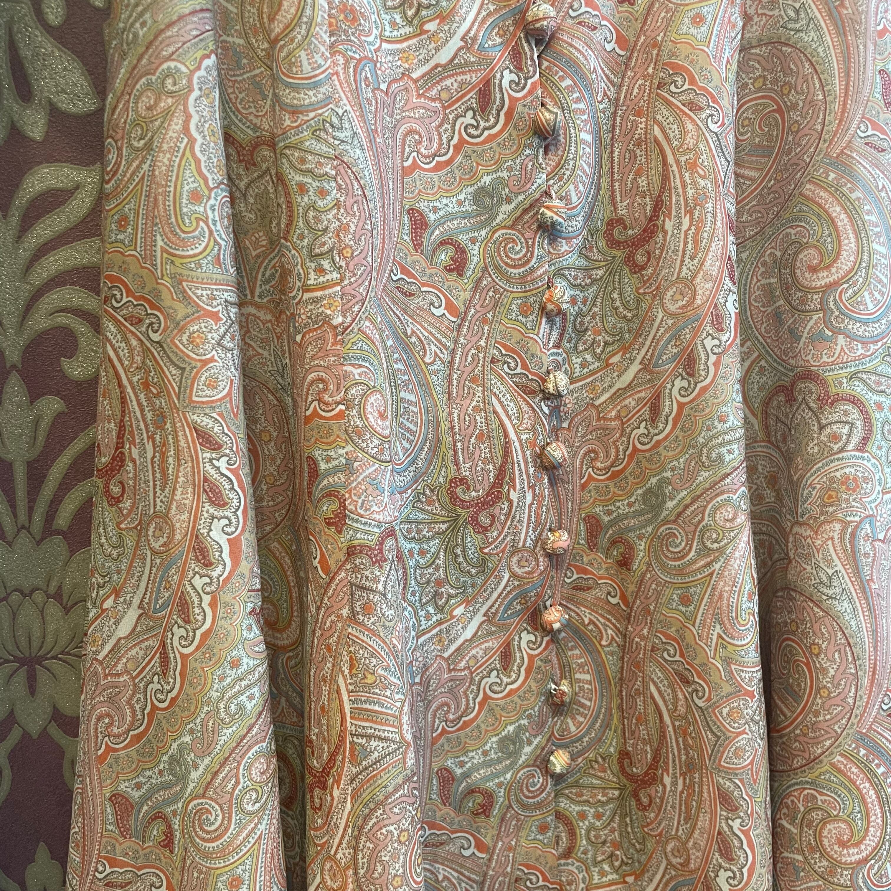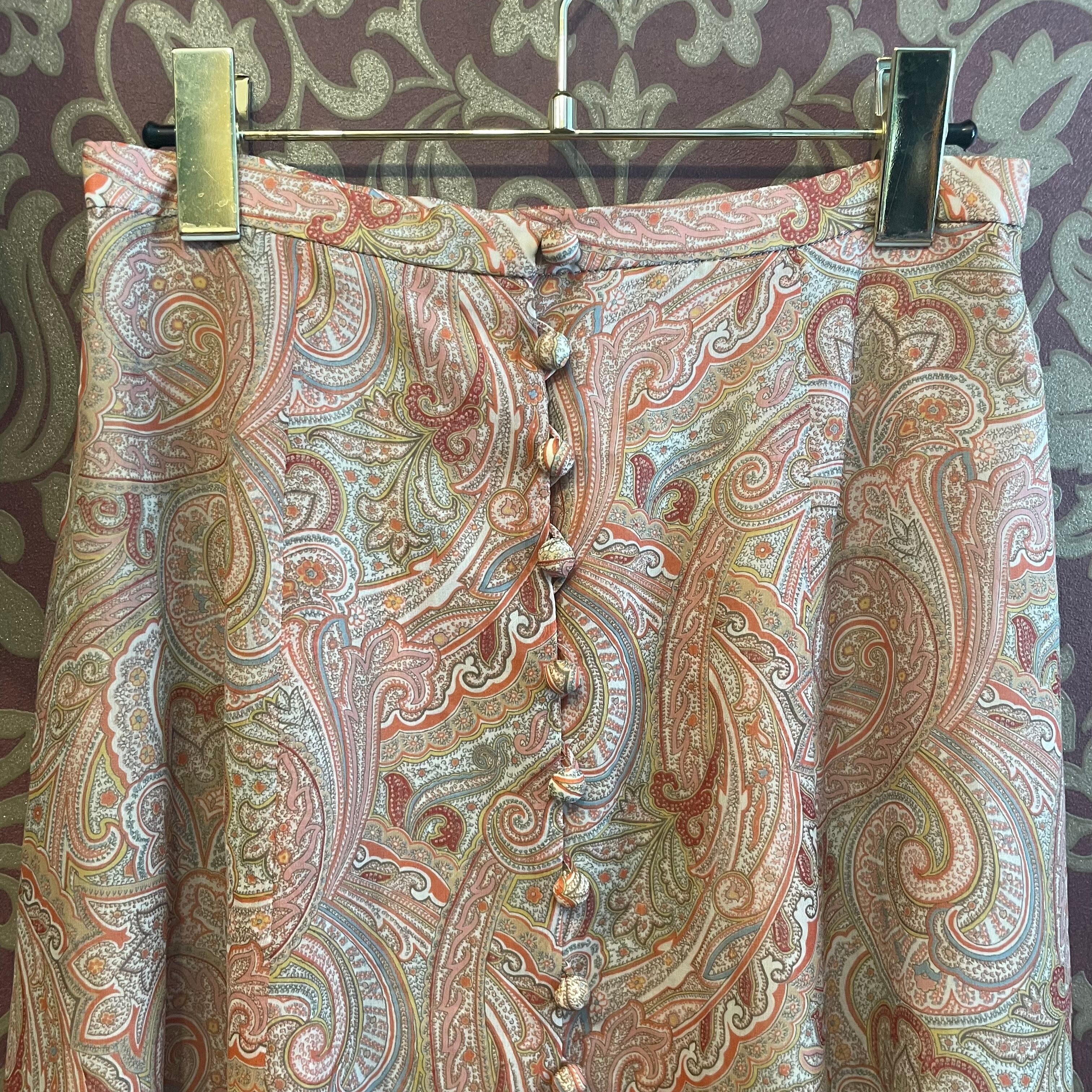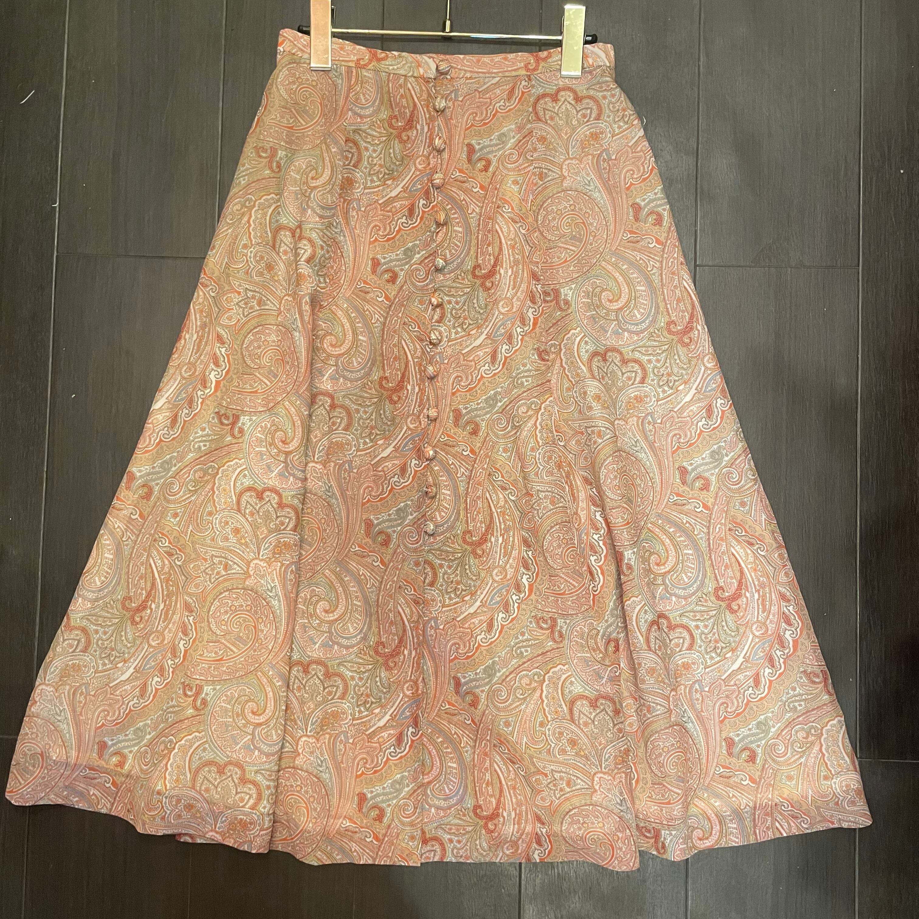 ベージュ地にオレンジを基調としたペイズリー柄のスカートです。