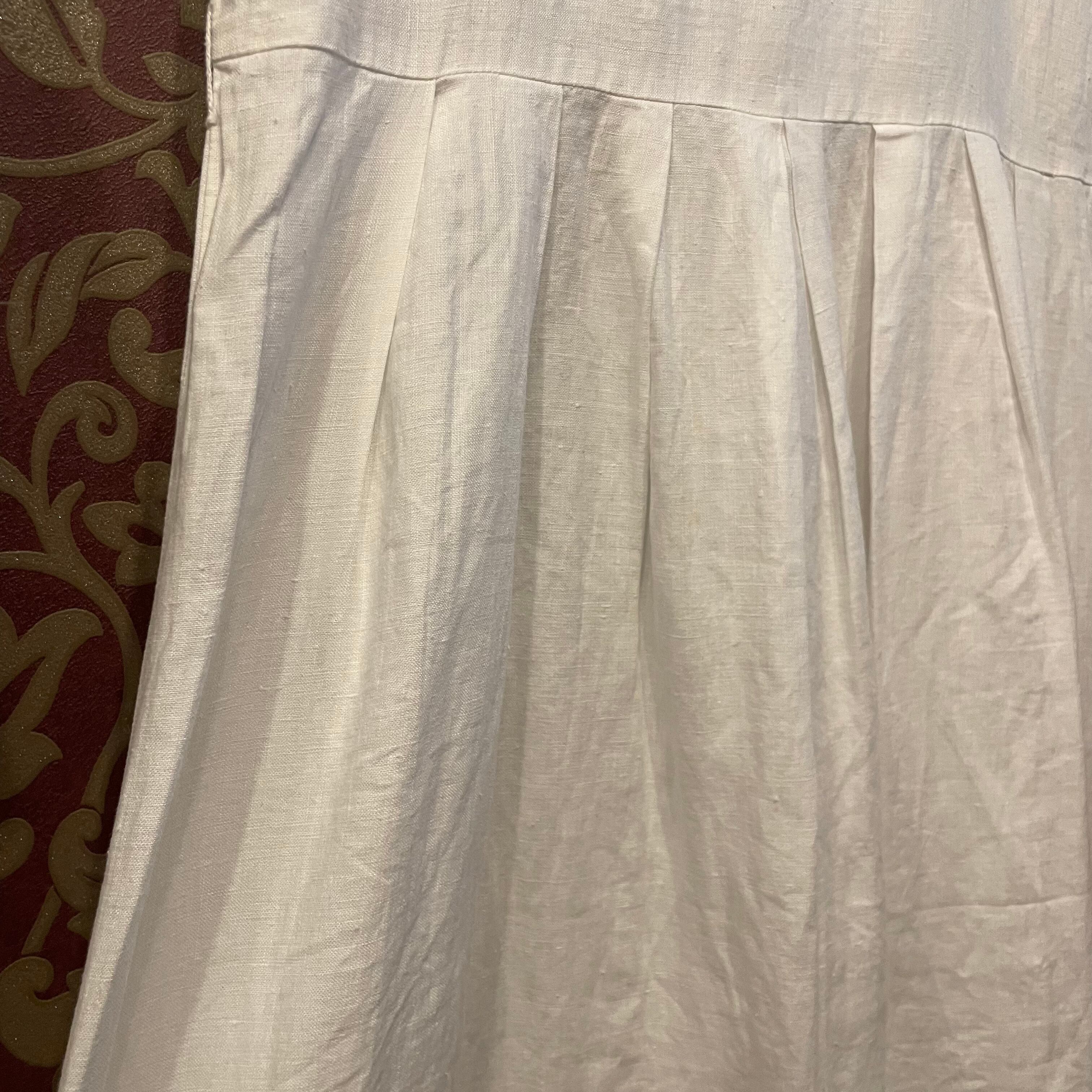 生成りをベースに胸元、袖ぐり、裾に細かな刺繍が施されていてとても美しい一着です。