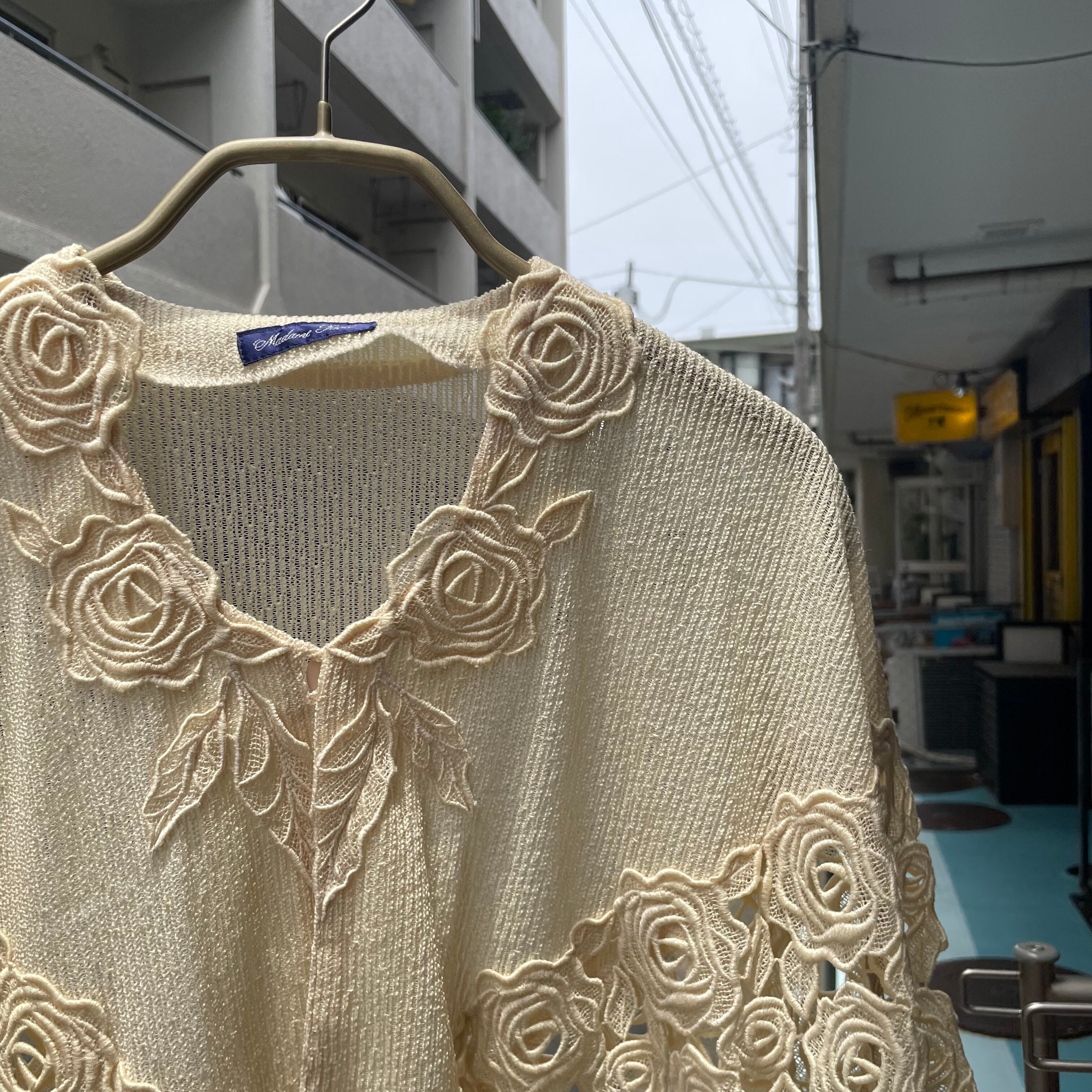 細かなニットとバラモチーフのレースをふんだんに使った豪華なデザインです。