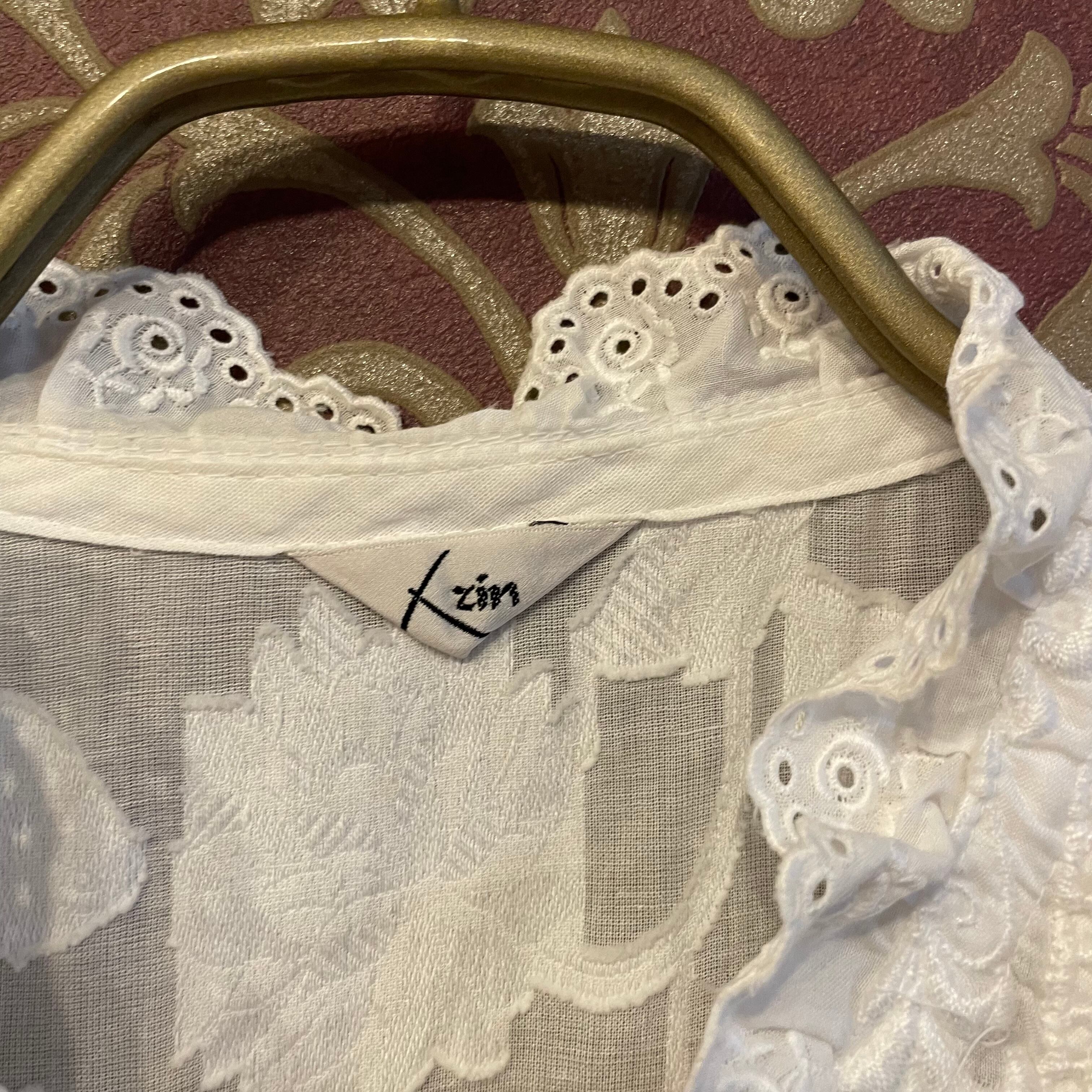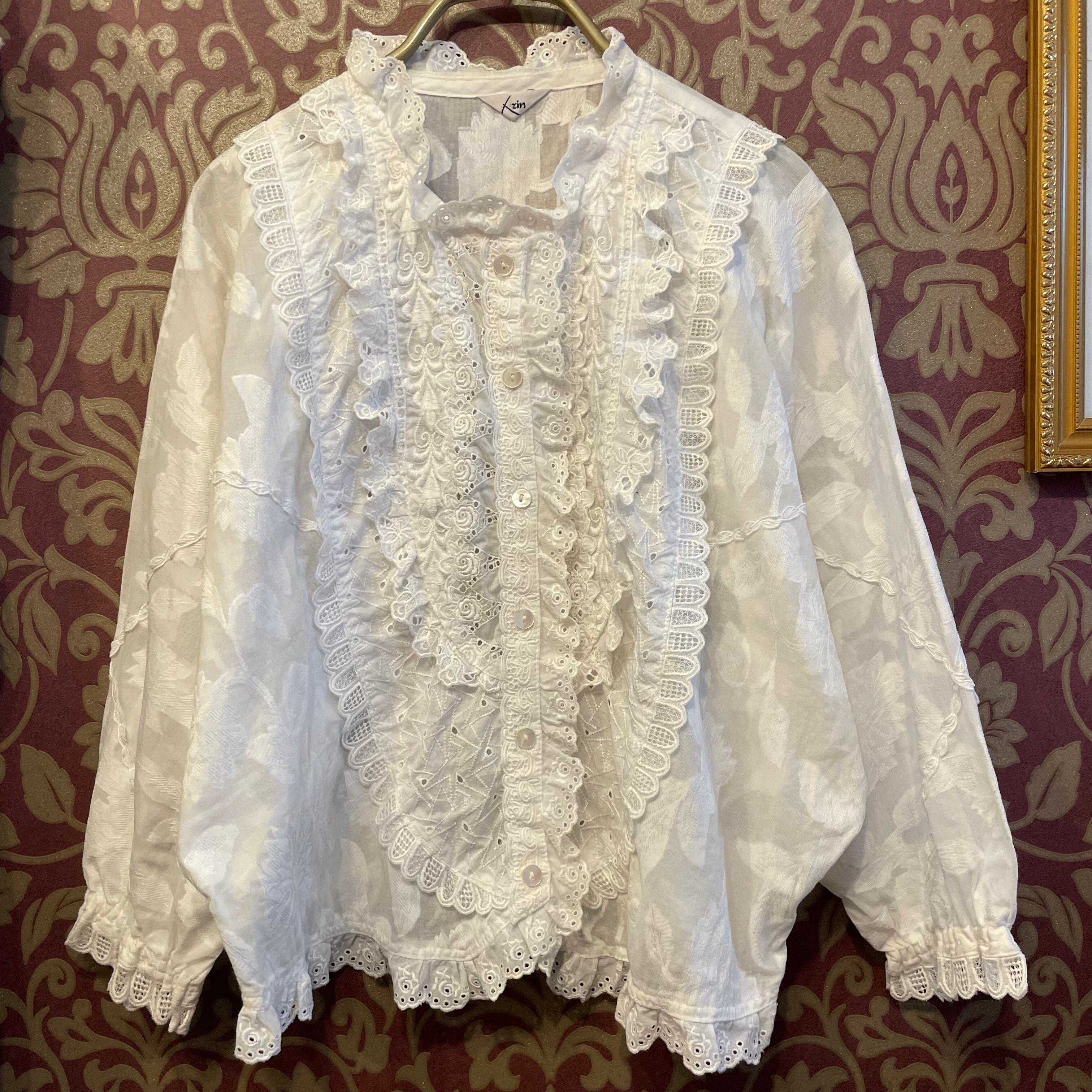 こちらは全体がオフホワイトで統一されたブラウスです。
