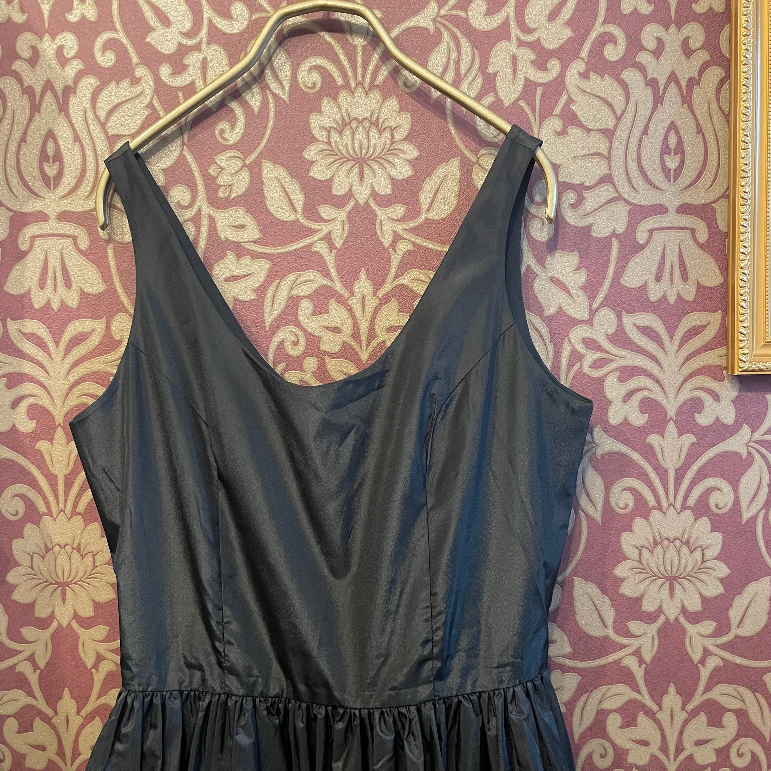 大きく空いた胸元と背中、立体的なバストの縫製、ふわっと広がるスカートでとてもクラシカルなデザインです。
