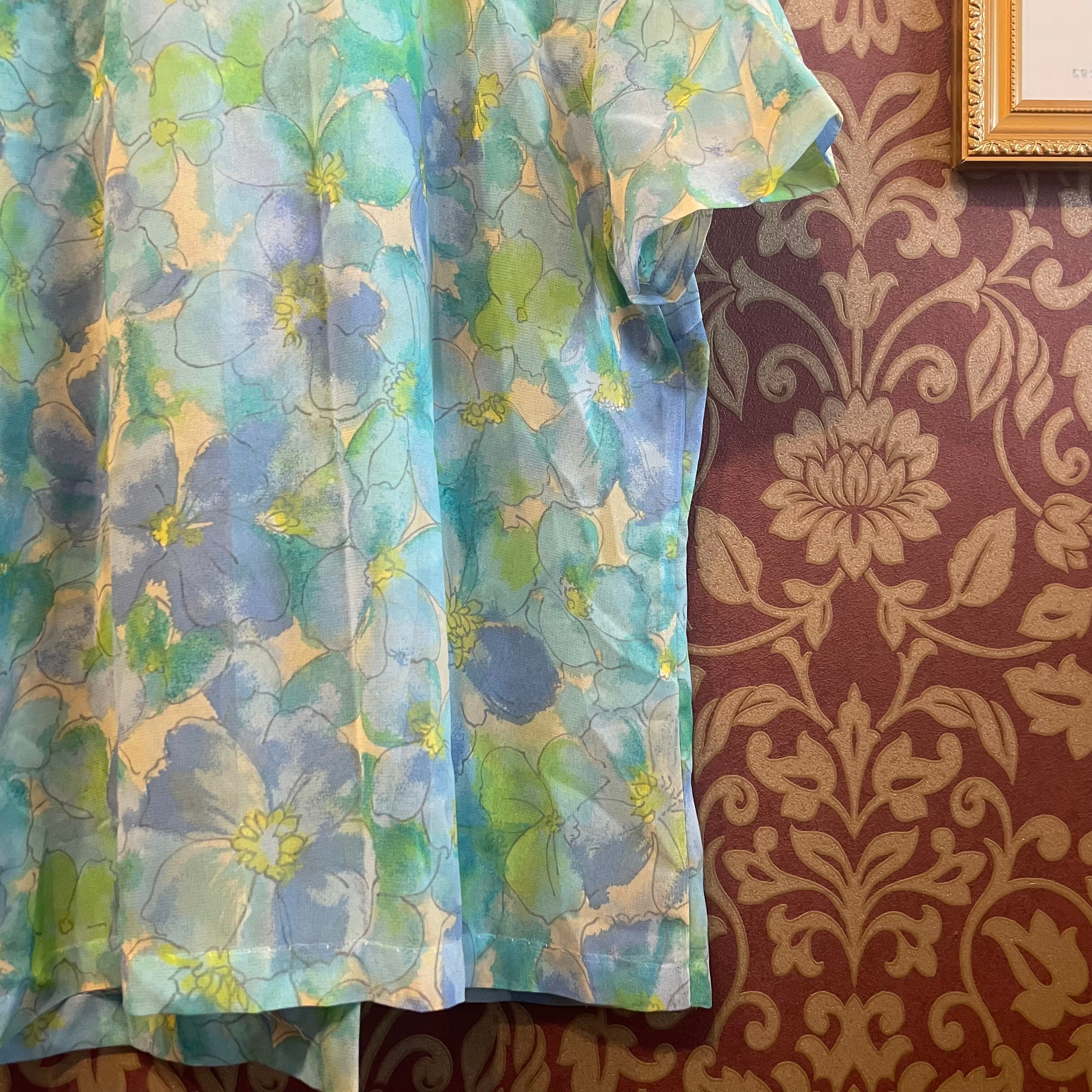 水彩技法の一つ、にじみ絵のようなふんわりとしたカラーが印象的な花柄ブラウスです。