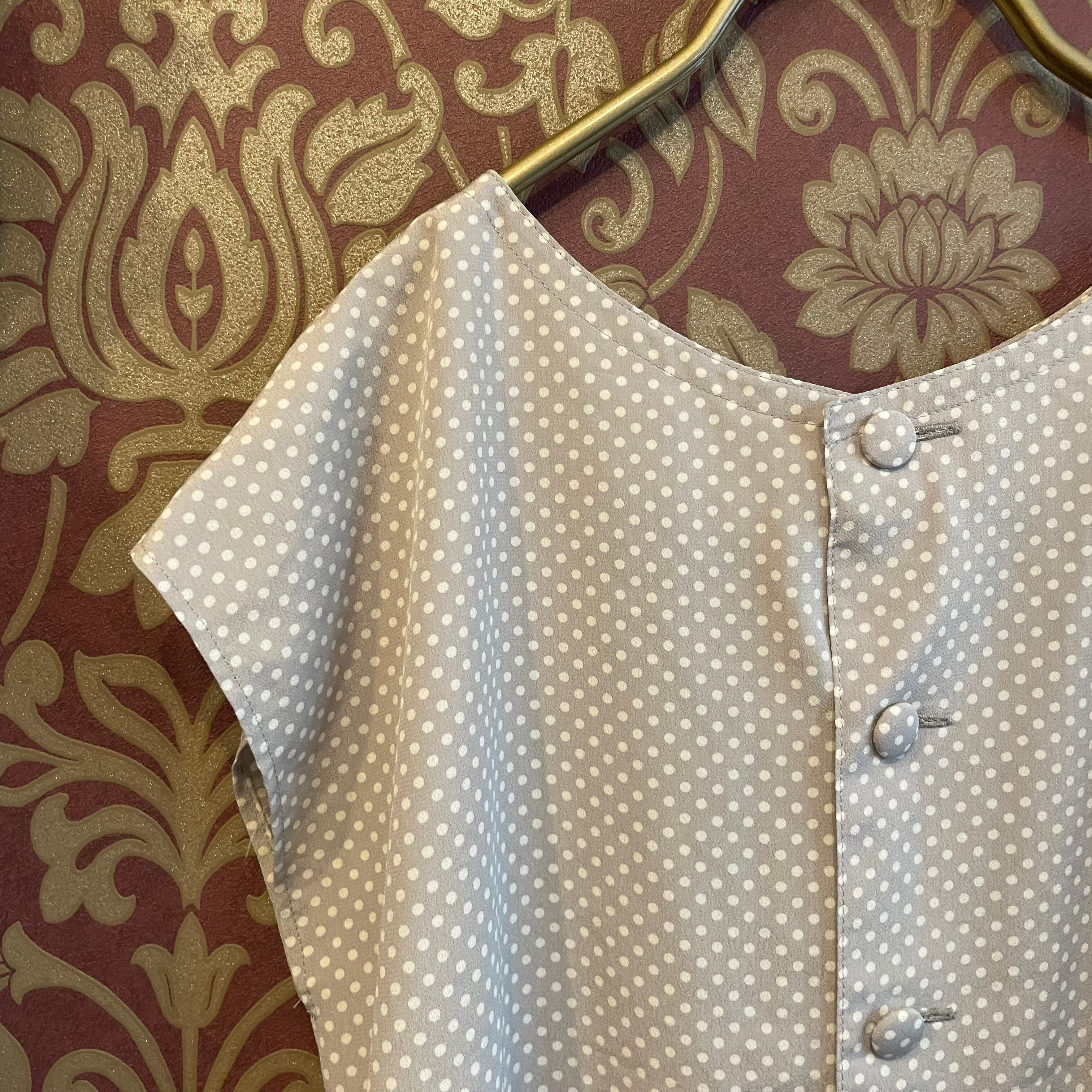 ブラウスは装飾のないシンプルなデザインで、後ろボタンです。