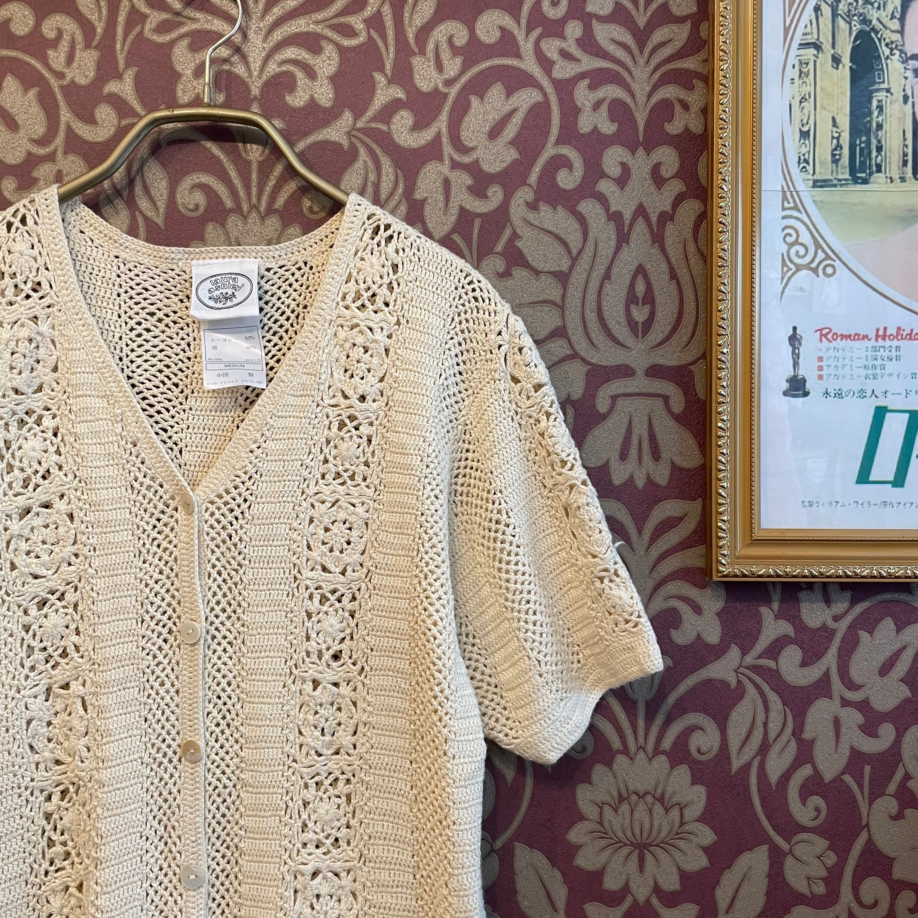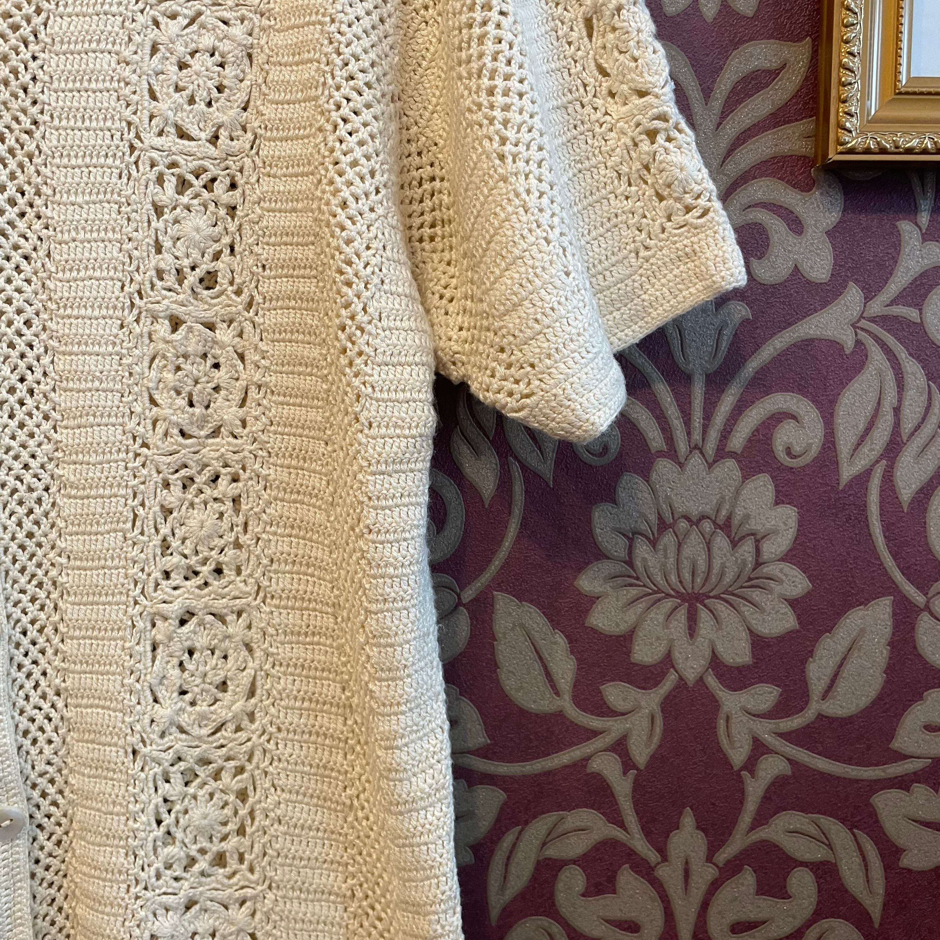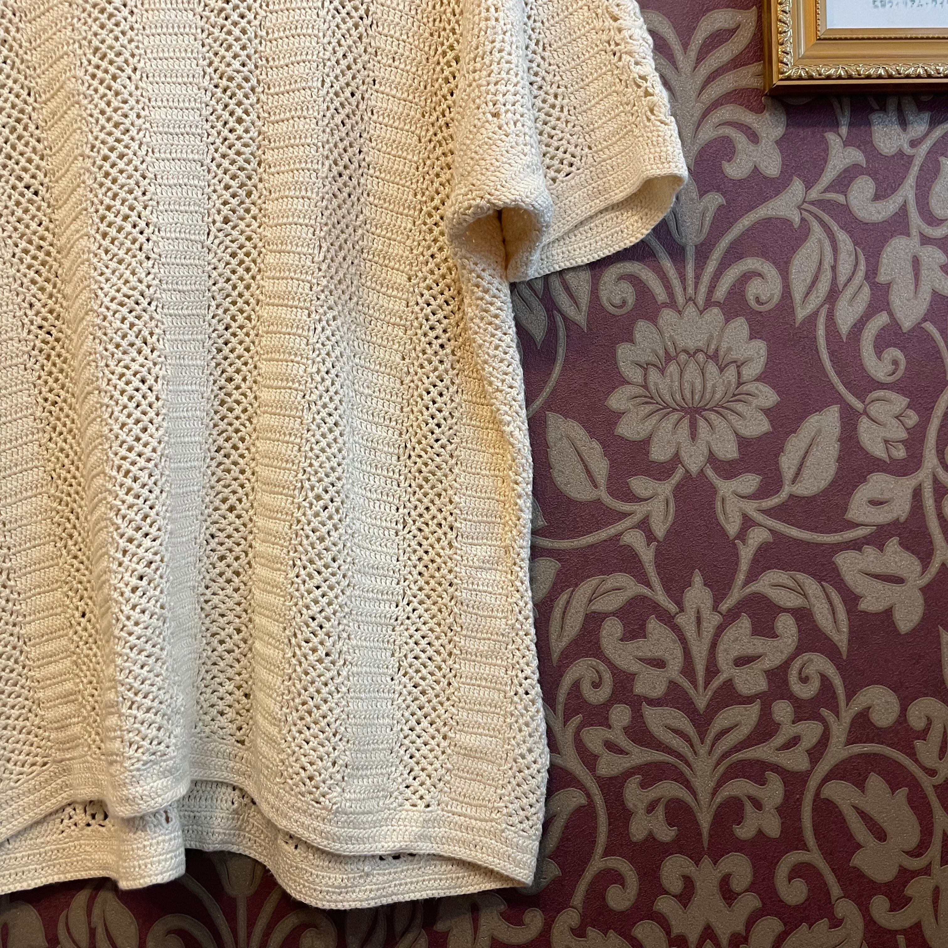 長編み、ネット、スクエアを組み合わせているデザインでレースのような美しいディテールです。