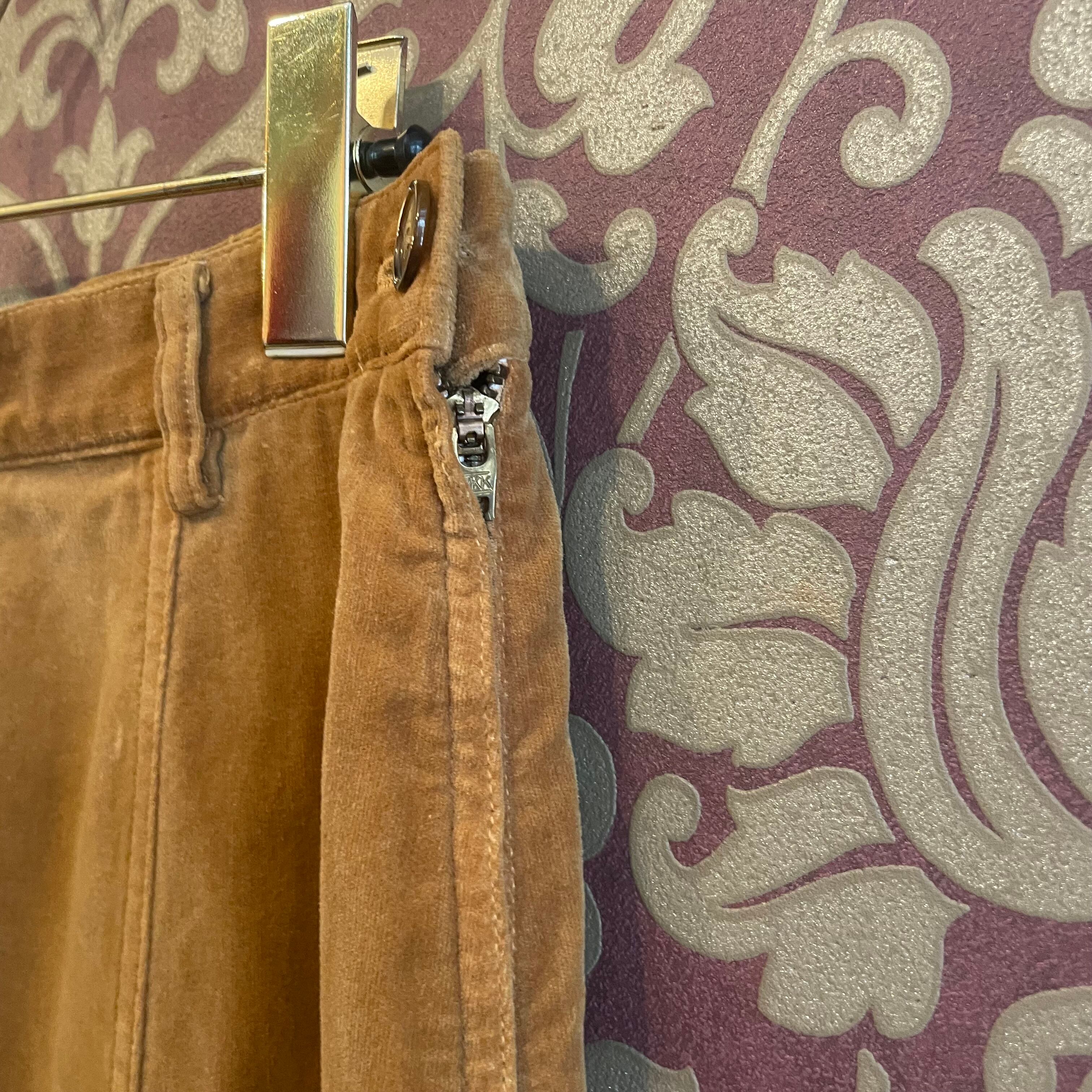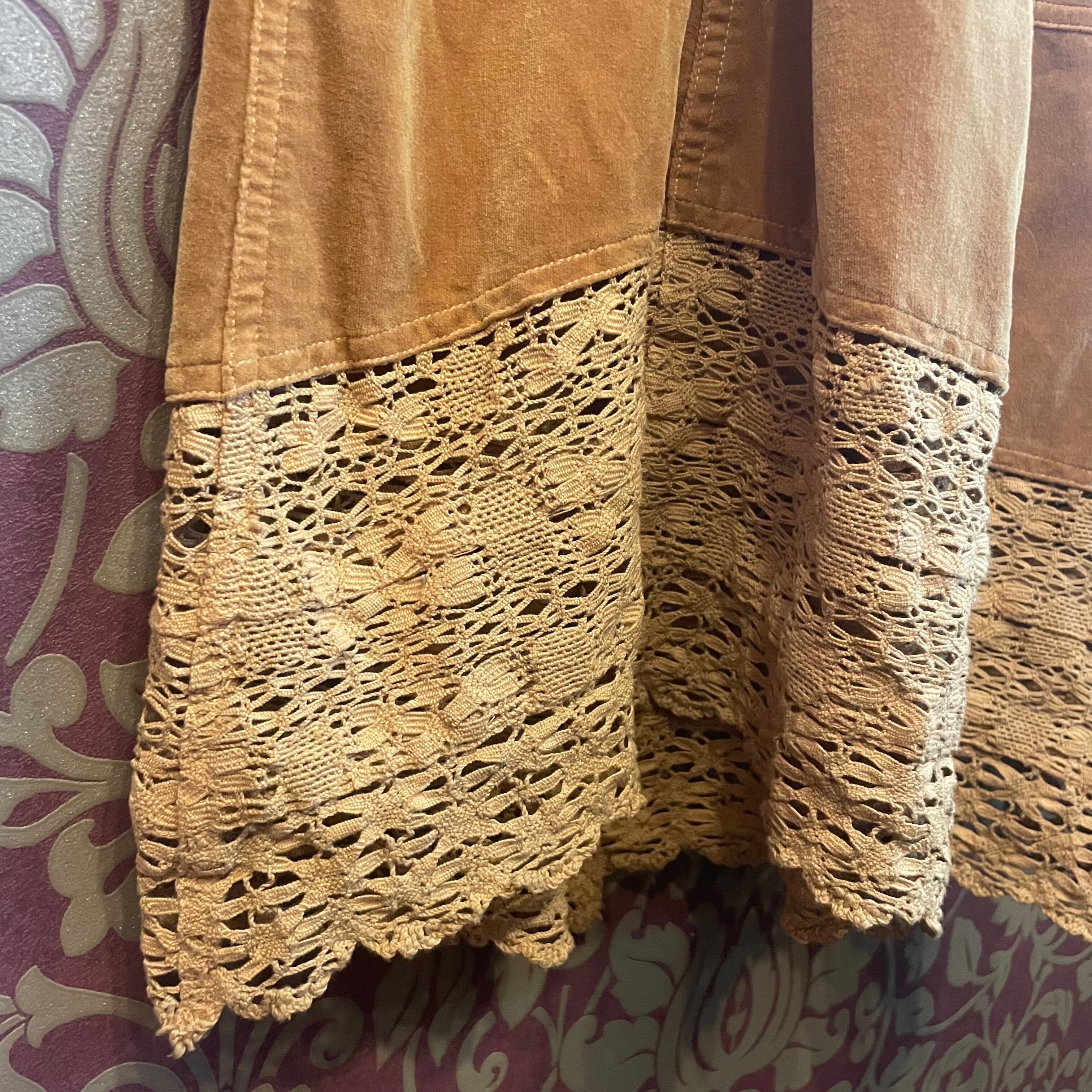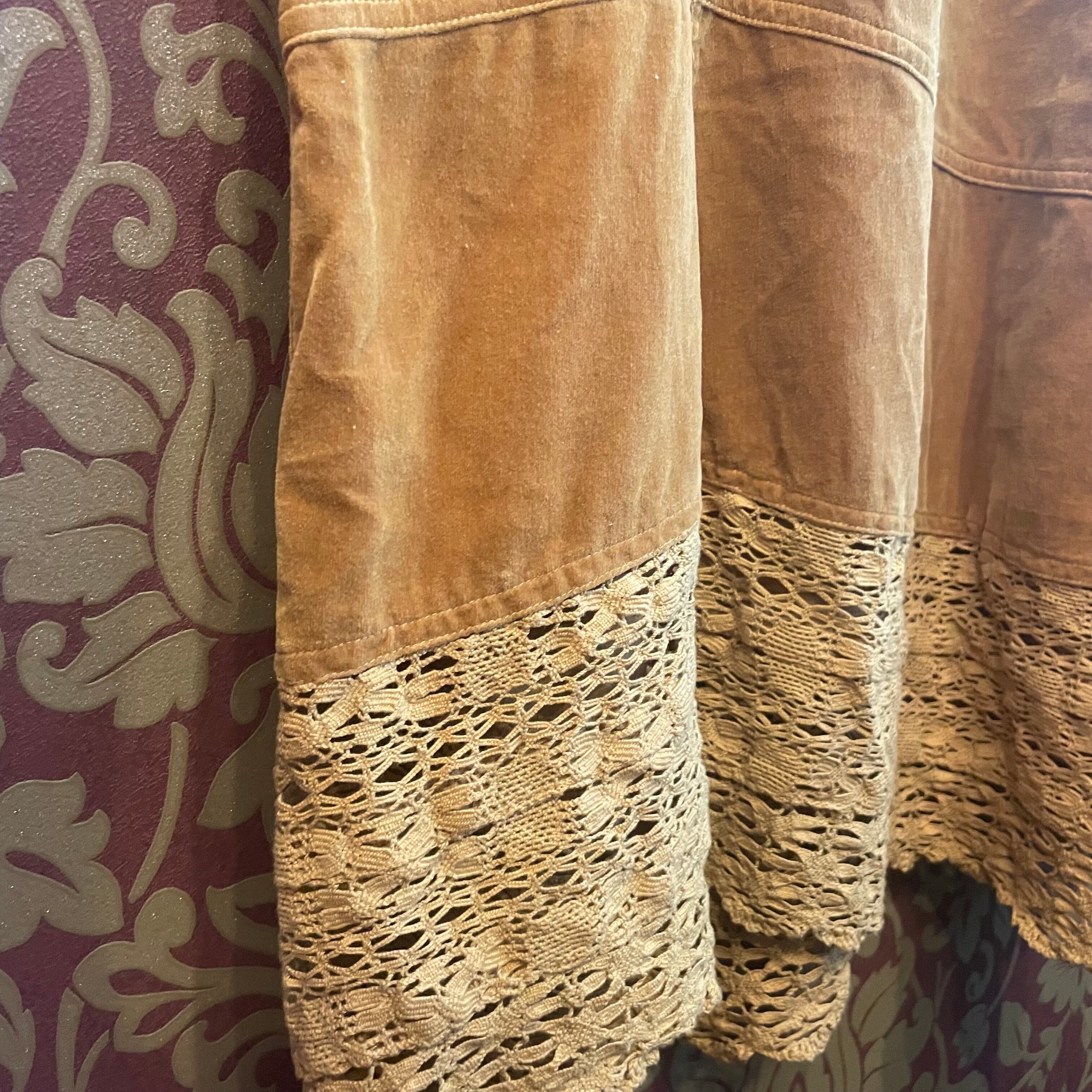 全体がきつね色のベルベットで、裾はクロシェレースで装飾されています。