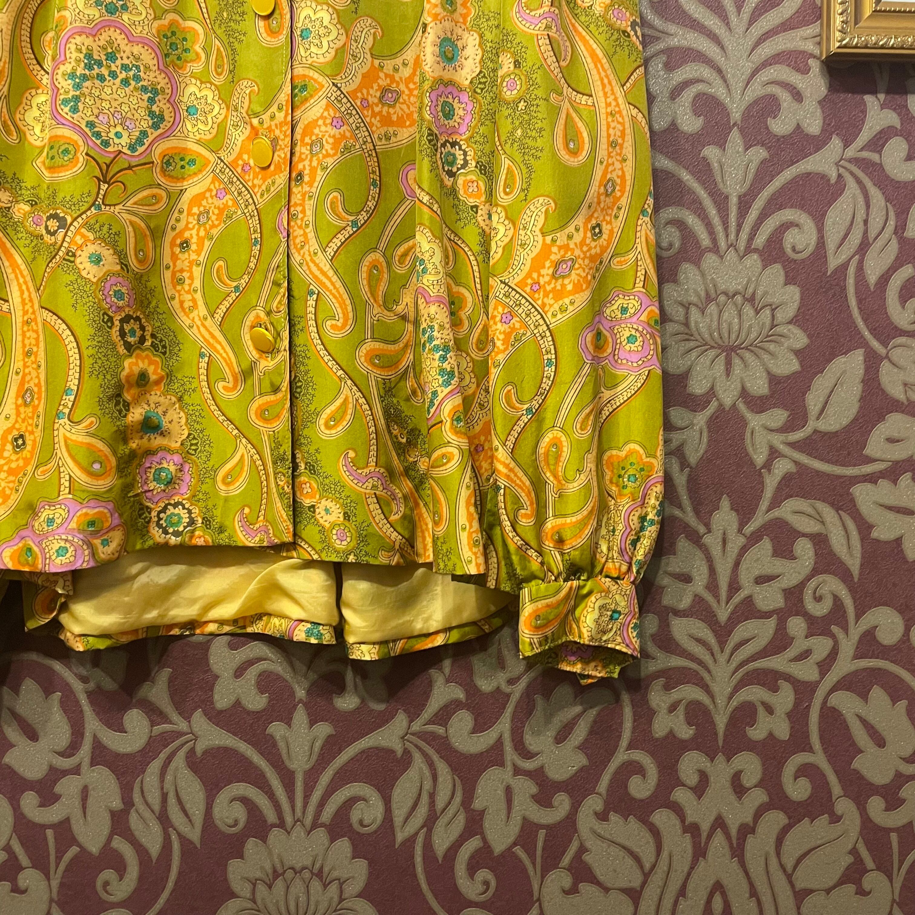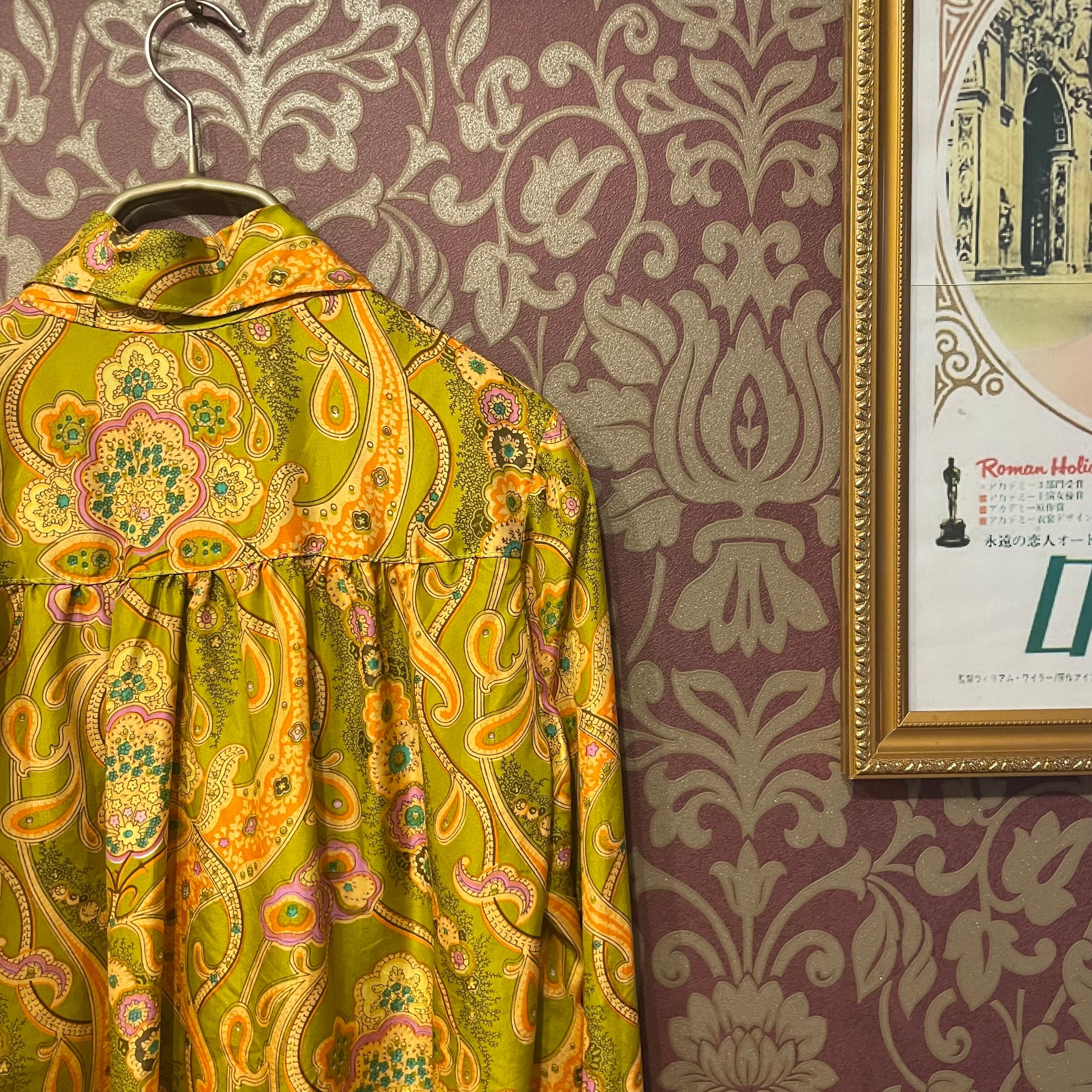 黄緑をベースにしたペイズリー柄のブラウスです。