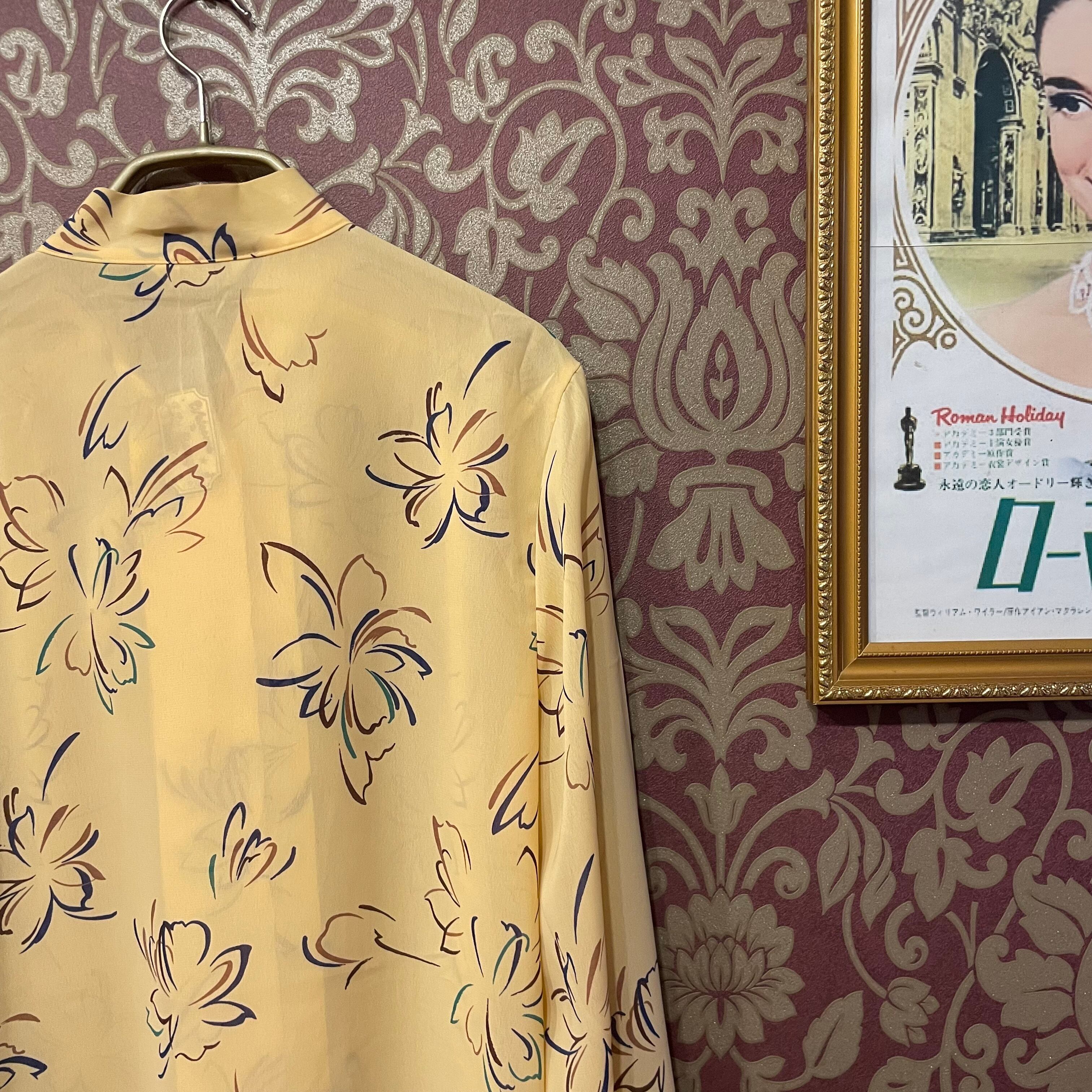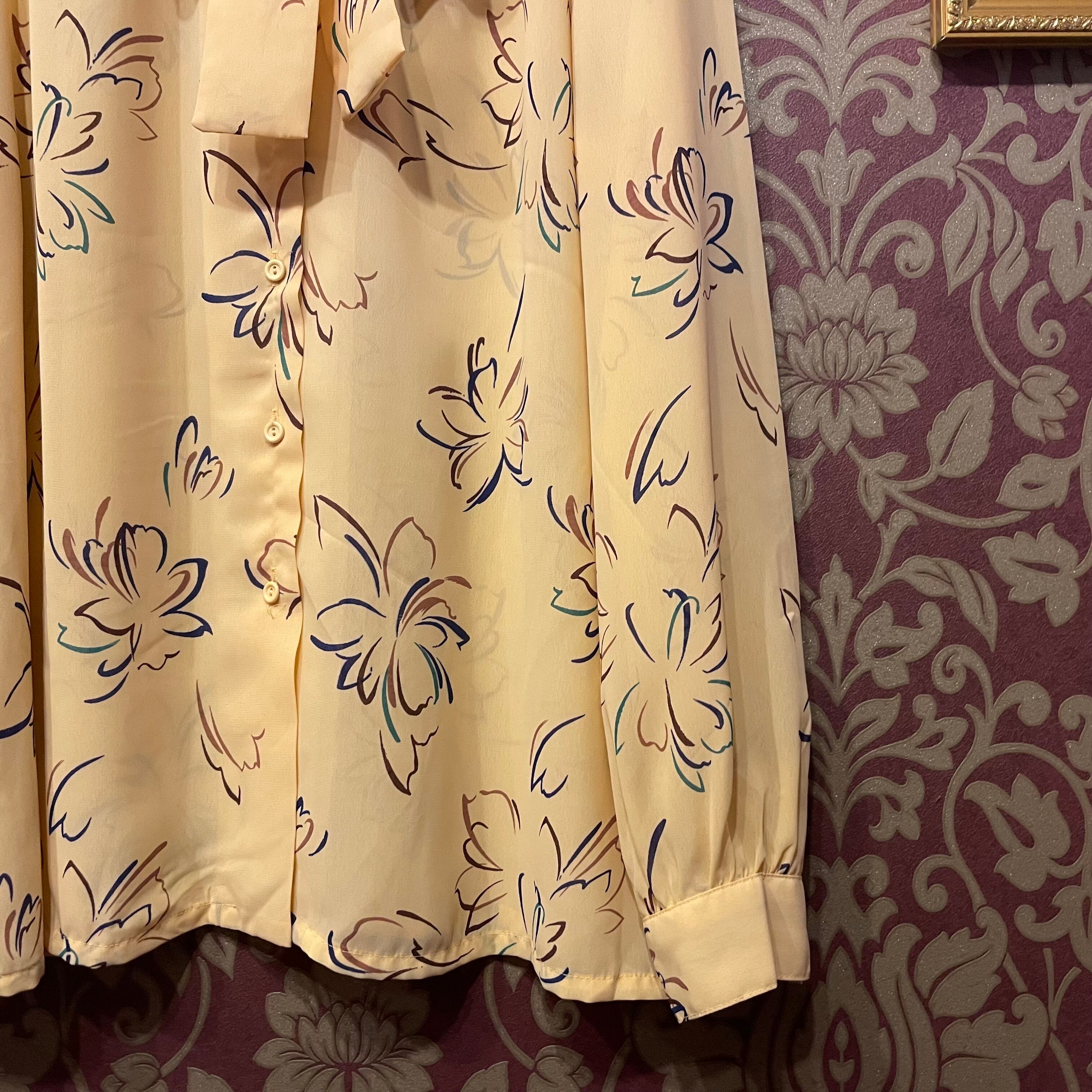イエローベージュをベースに、ラインフラワーのブラウスです。