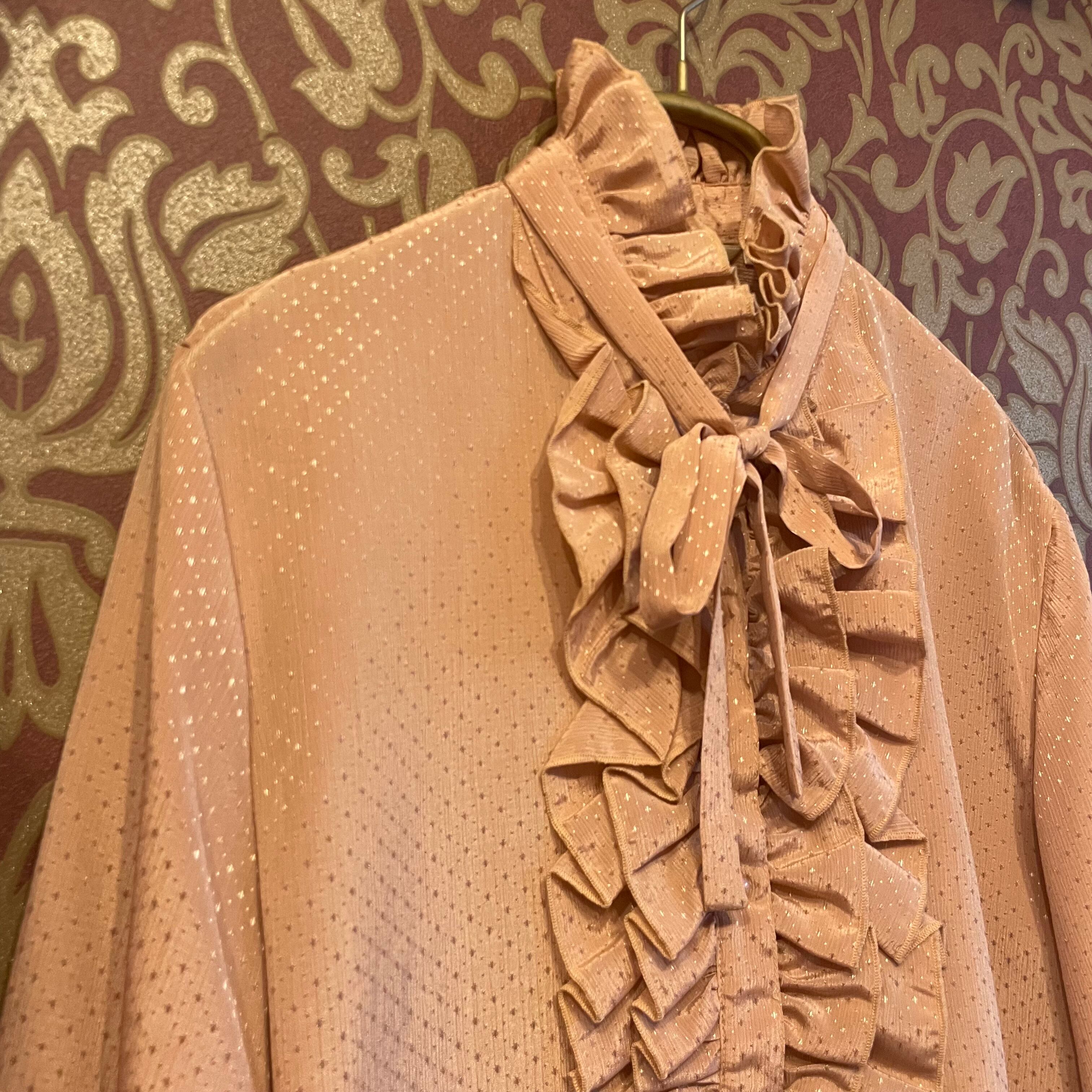 キラキラ柄が織り込まれたジャガードで作られたレトロなブラウスです。