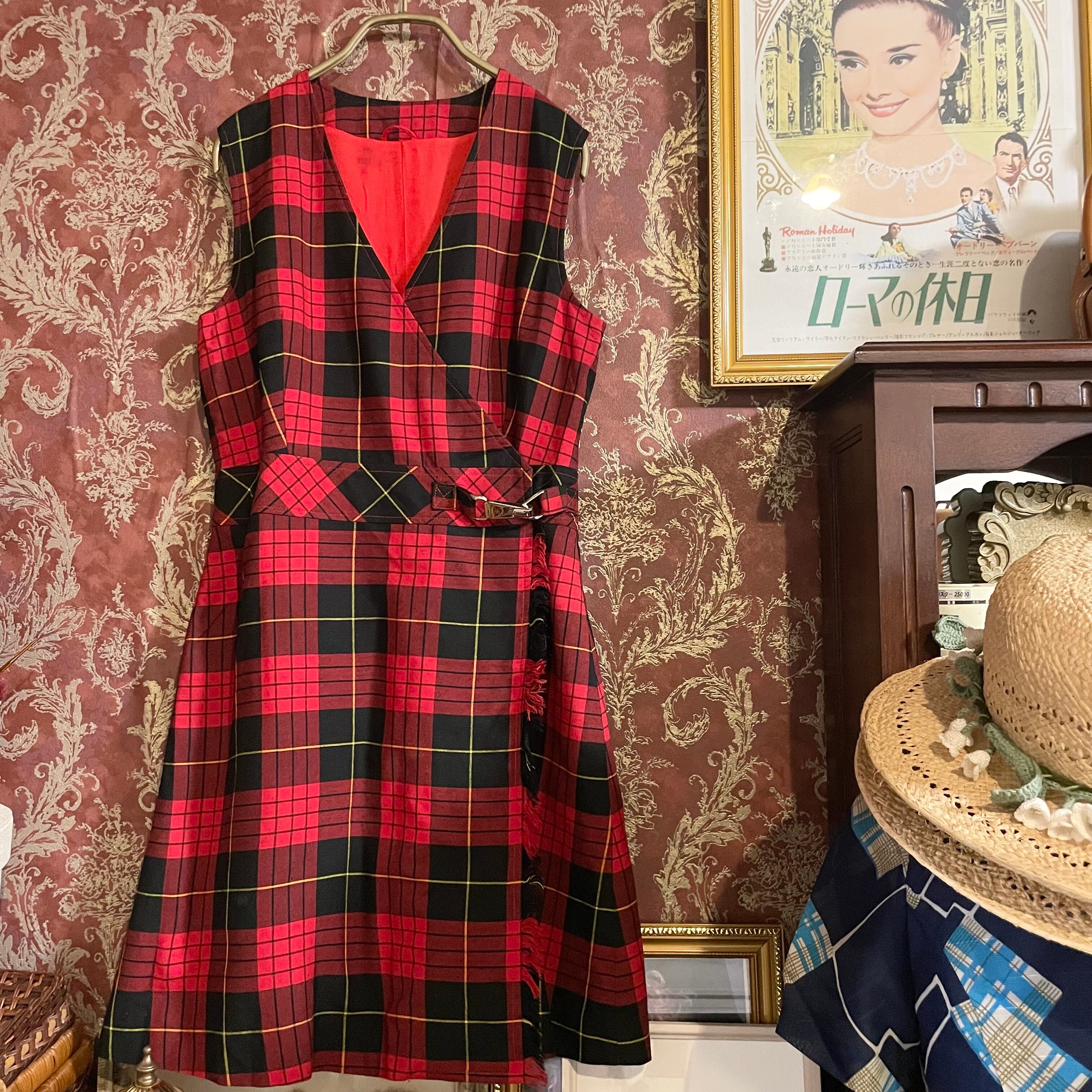 チェック柄のヴィンテージワンピースです。